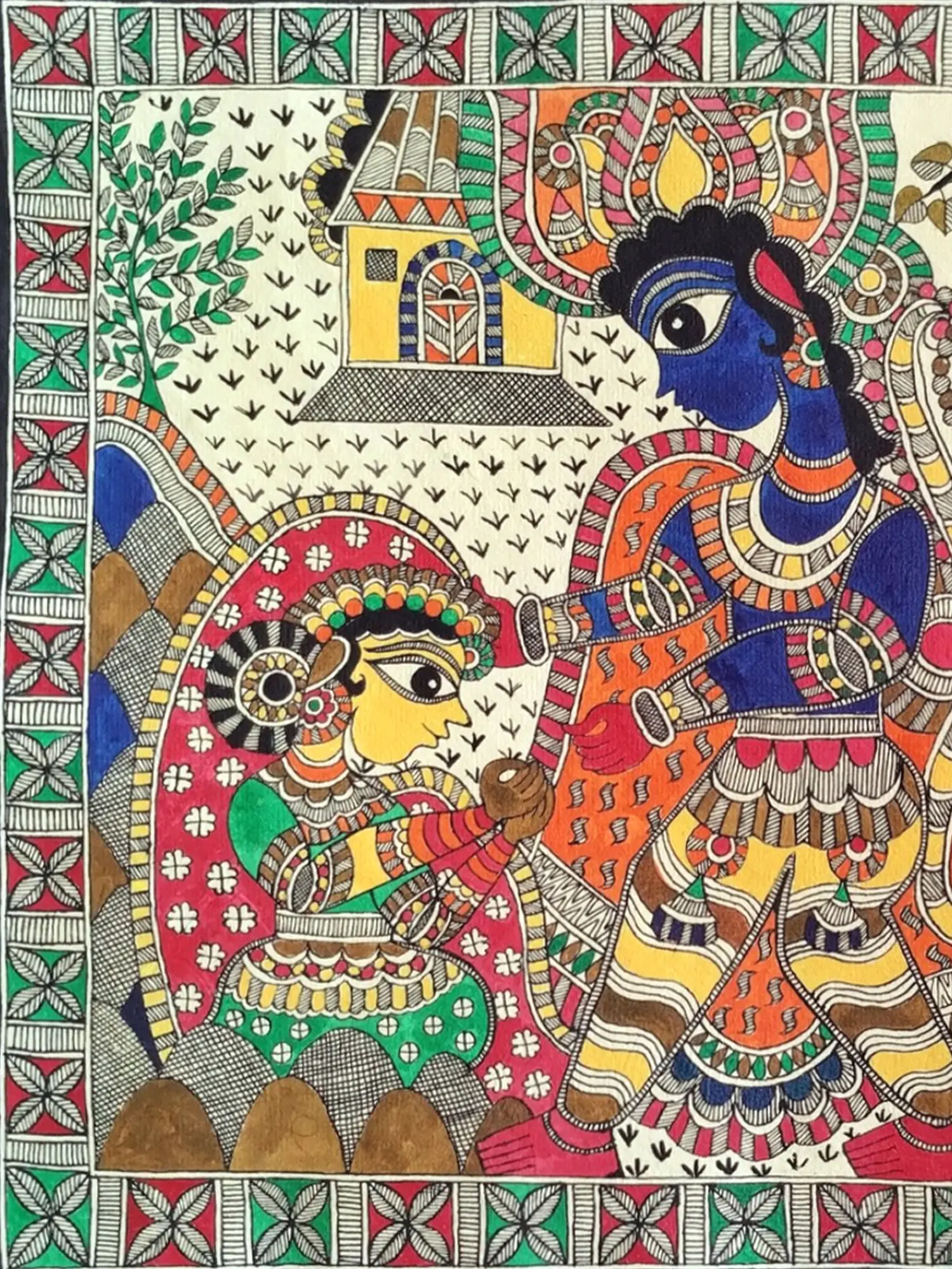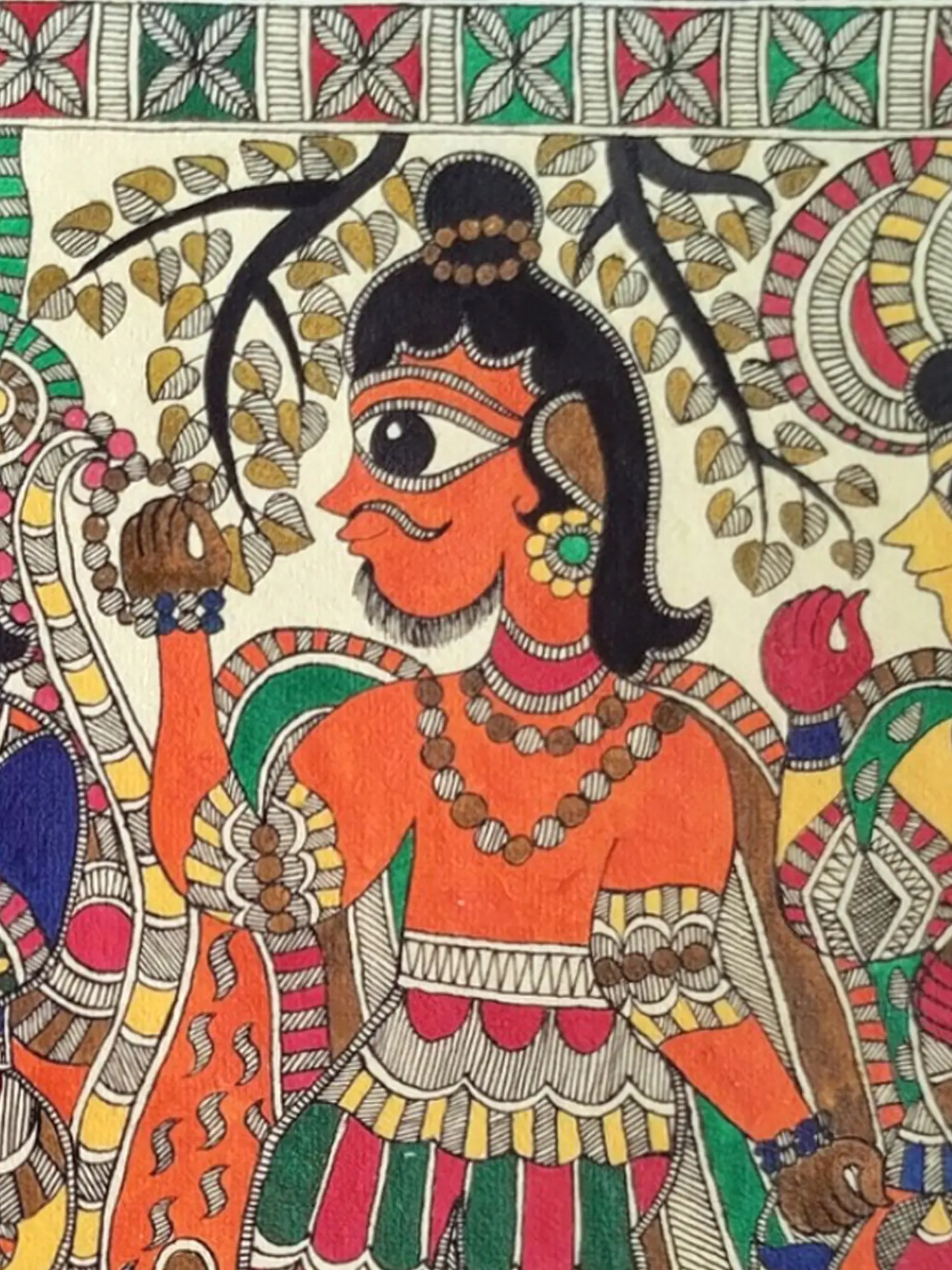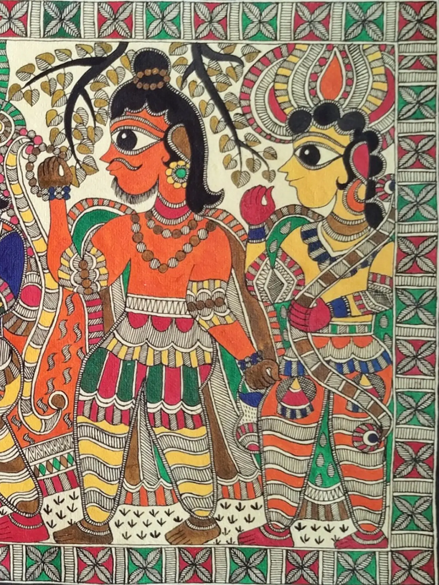 Devotthan Aripan - Waking God from Sleep | Acrylic on Handmade Sheet | By Urwashi Nirala