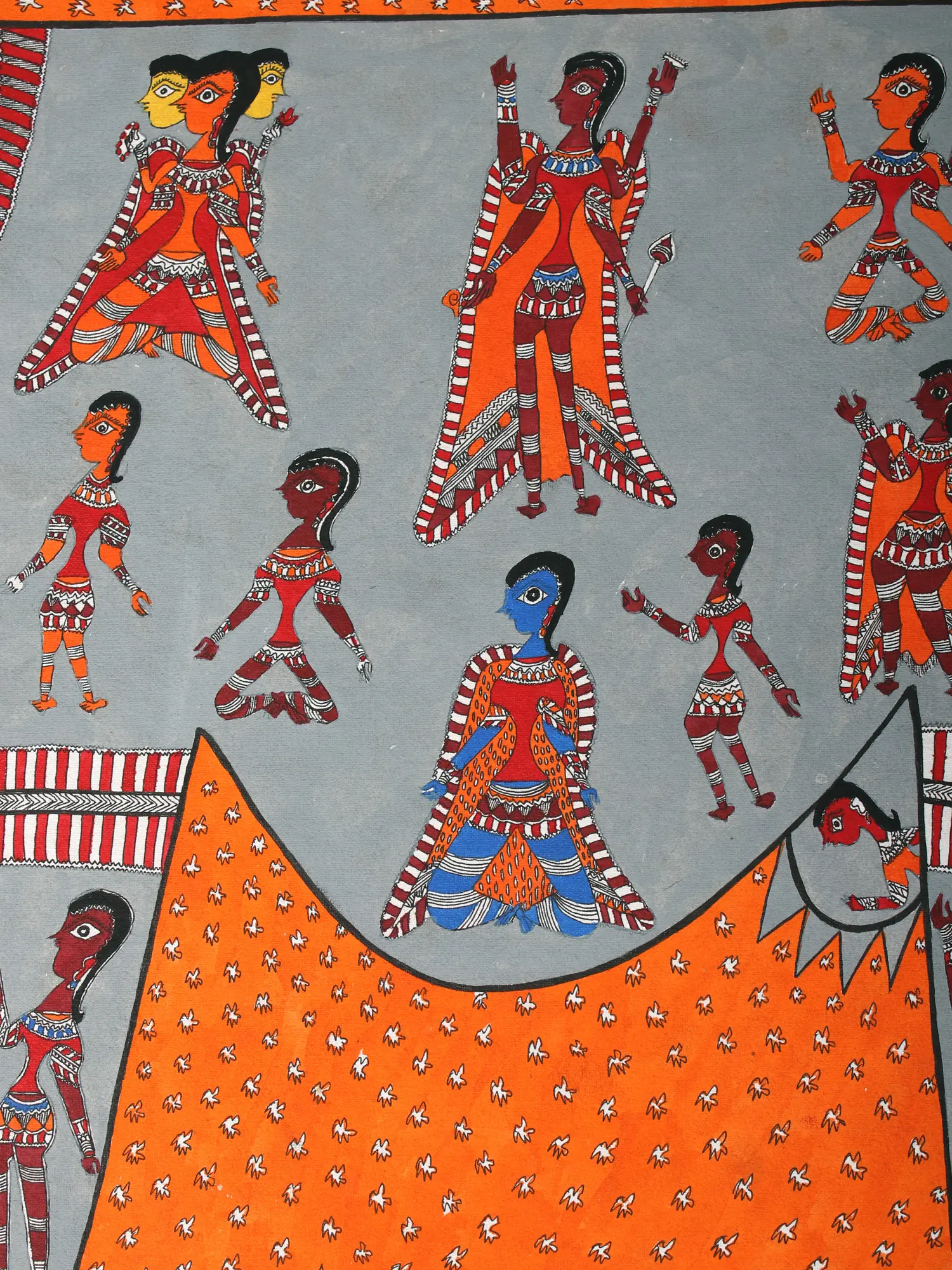 Devi Saraswati Seated on Lotus Playing Veena | Pattachitra Painting from Odisha