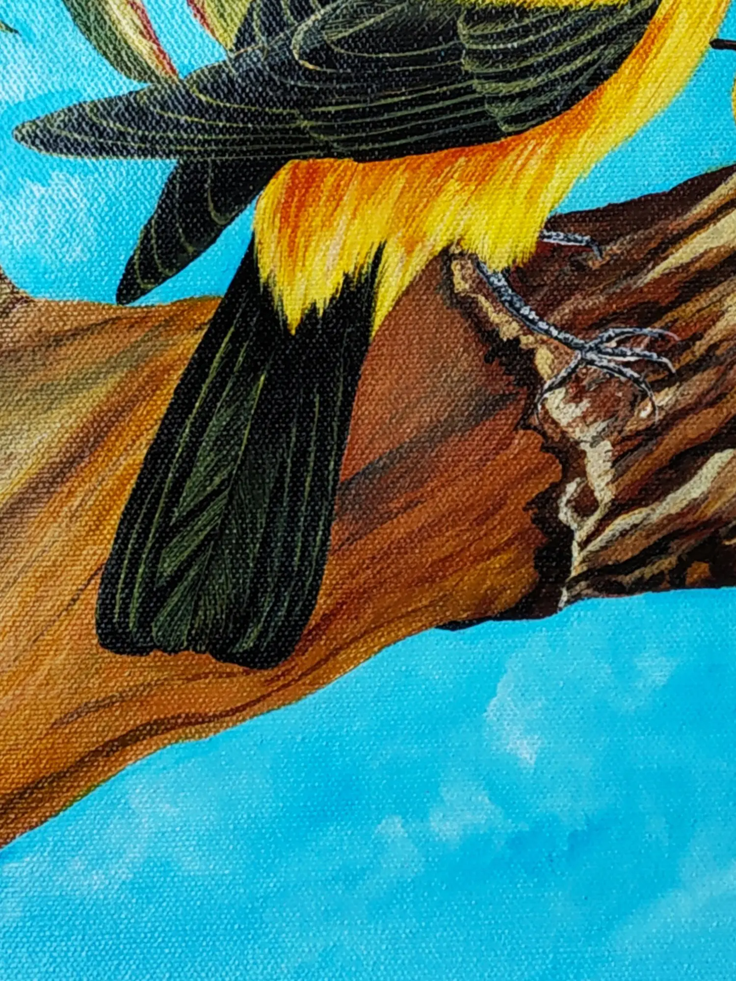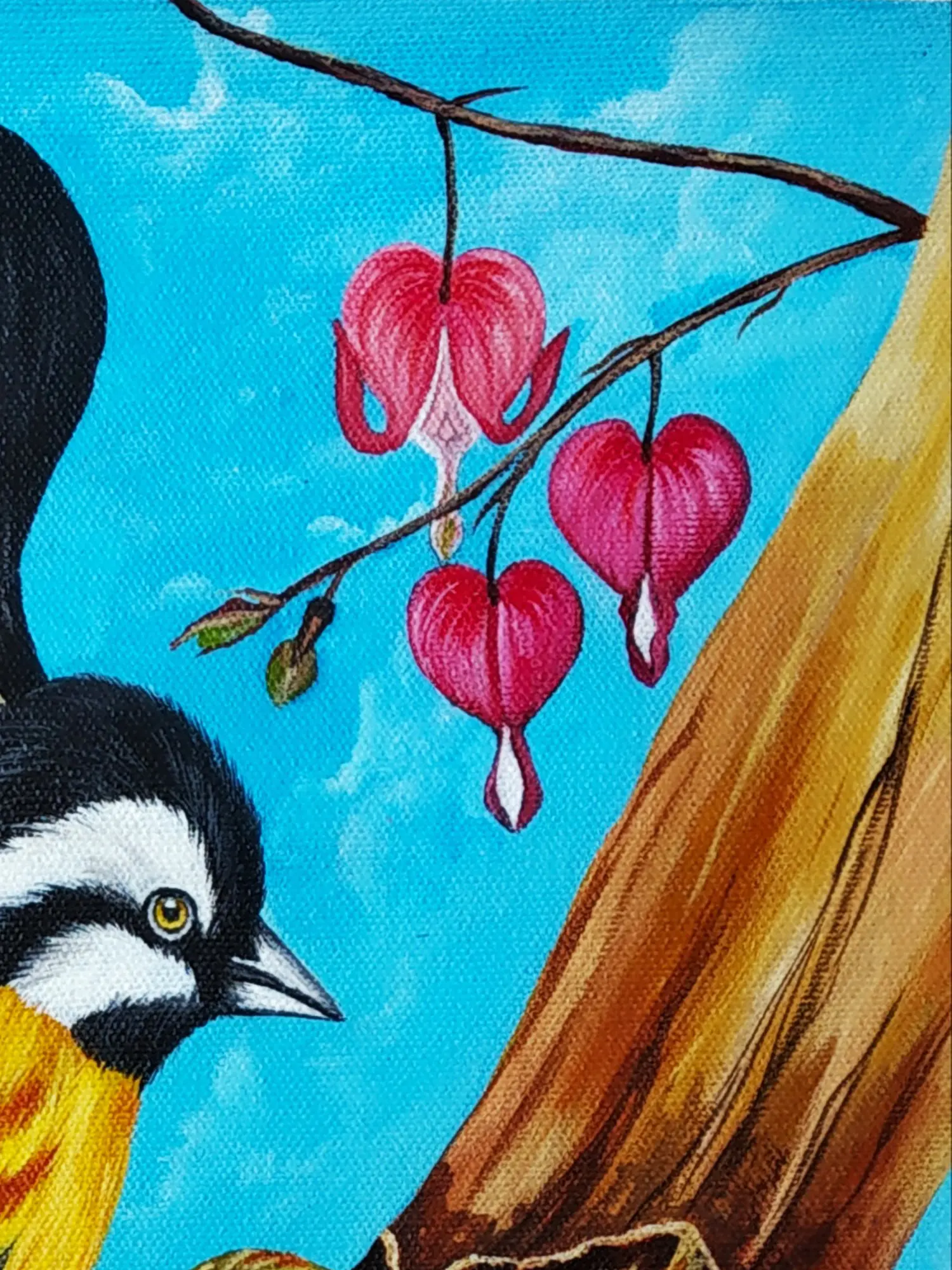 Each stroke of acrylic paint on canvas is a testament to the artist's dedication and skill. The rich pigments have been meticulously applied, creating a vibrant and textured surface that speaks of careful craftsmanship. You'll appreciate the depth and character achieved through this traditional medium, reflecting a passion for creating enduring beauty.