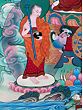 In the final step, pure gold is coated over some parts of the thangka to increase its beauty. Due to this beautification, thangkas are much more expensive and also stand out from other ordinary paintings.
