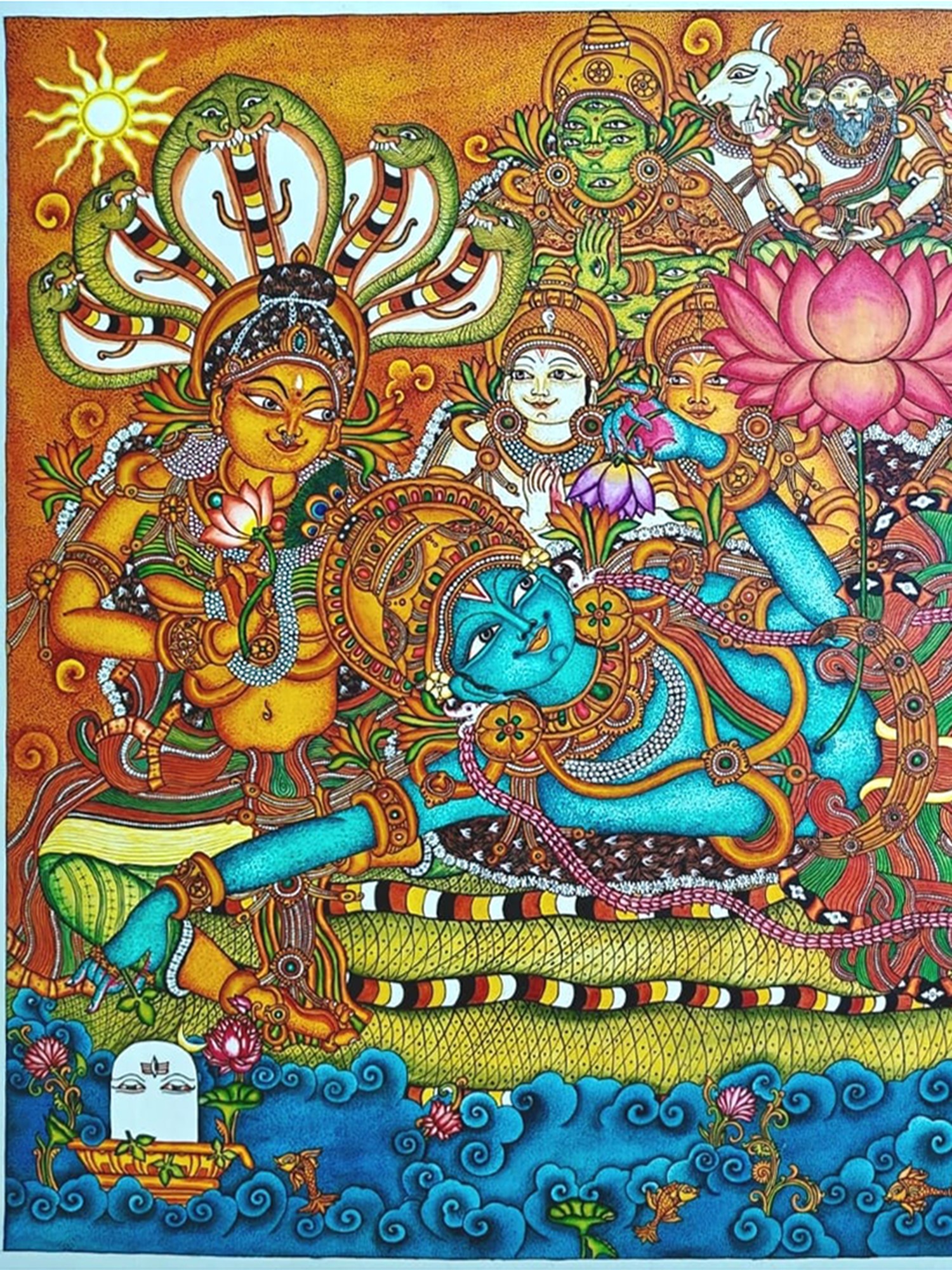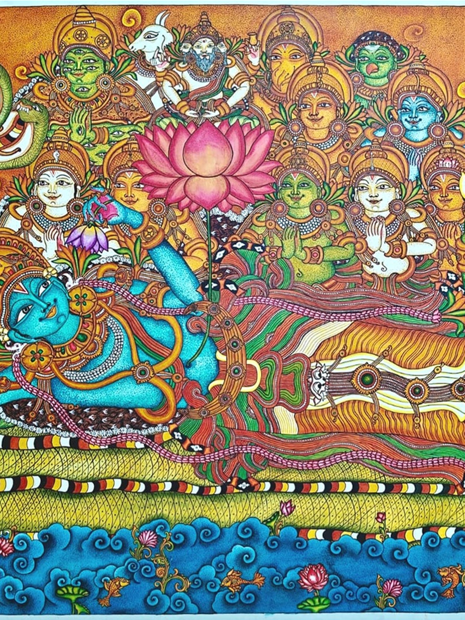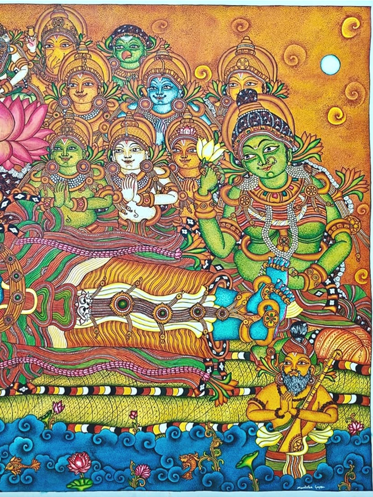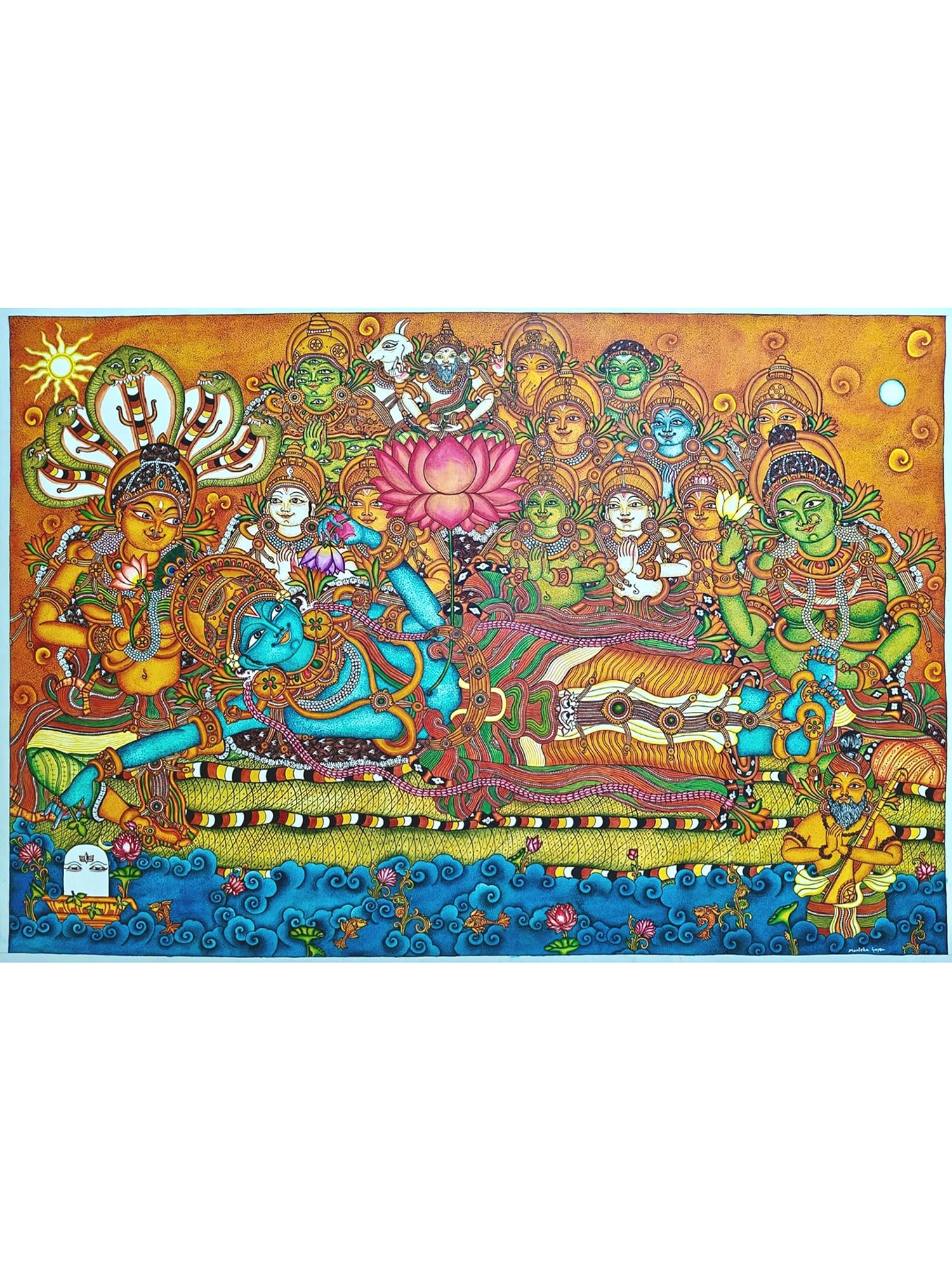 Ananthasayanam - Lord Vishnu with Deities | Acrylic Painting on Canvas | by Monisha Gayen