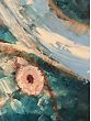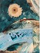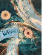 This captivating acrylic on canvas painting, "Angry Birds," by Mohammad Yusuf, transports the viewer to a world of swirling energy and vibrant hues. The deep teal canvas serves as a backdrop for a dynamic interplay of light blues and creamy whites, reminiscent of cascading waterfalls or perhaps the churning currents of a mystical ocean. The artist's bold brushstrokes evoke a sense of movement and power, mirroring the chaotic yet beautiful forces of nature. Two delicate, almost ethereal, floral forms punctuate the scene, adding a touch of serenity amidst the dynamic energy. These blooms might be interpreted as lotus flowers, symbols of purity and enlightenment in many Eastern cultures, suggesting a journey towards inner peace amidst the turbulent flow.