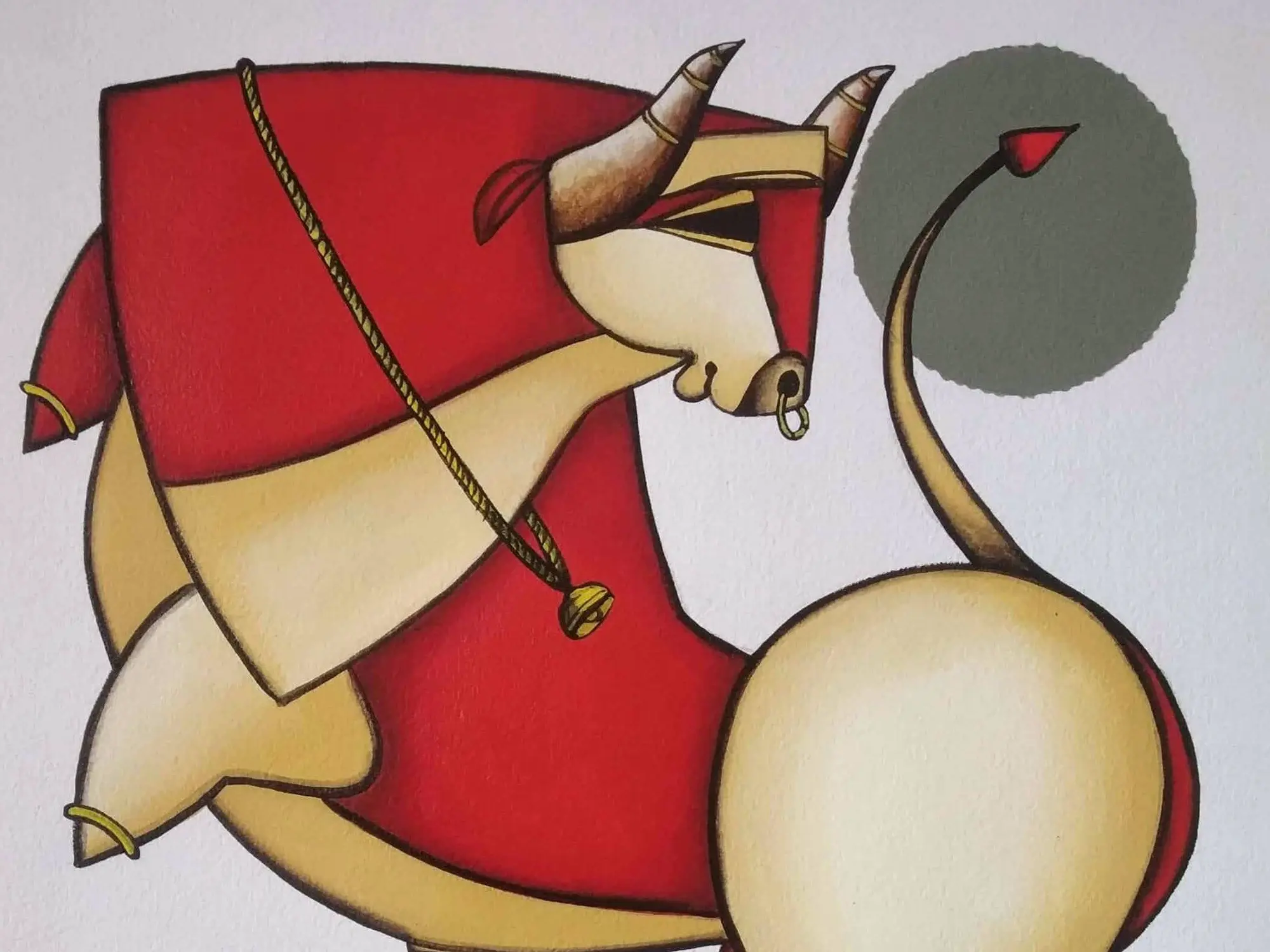 Shiva's Companions: Nandi and the Moon | Acrylic On Paper | By Arvind Mahajan
