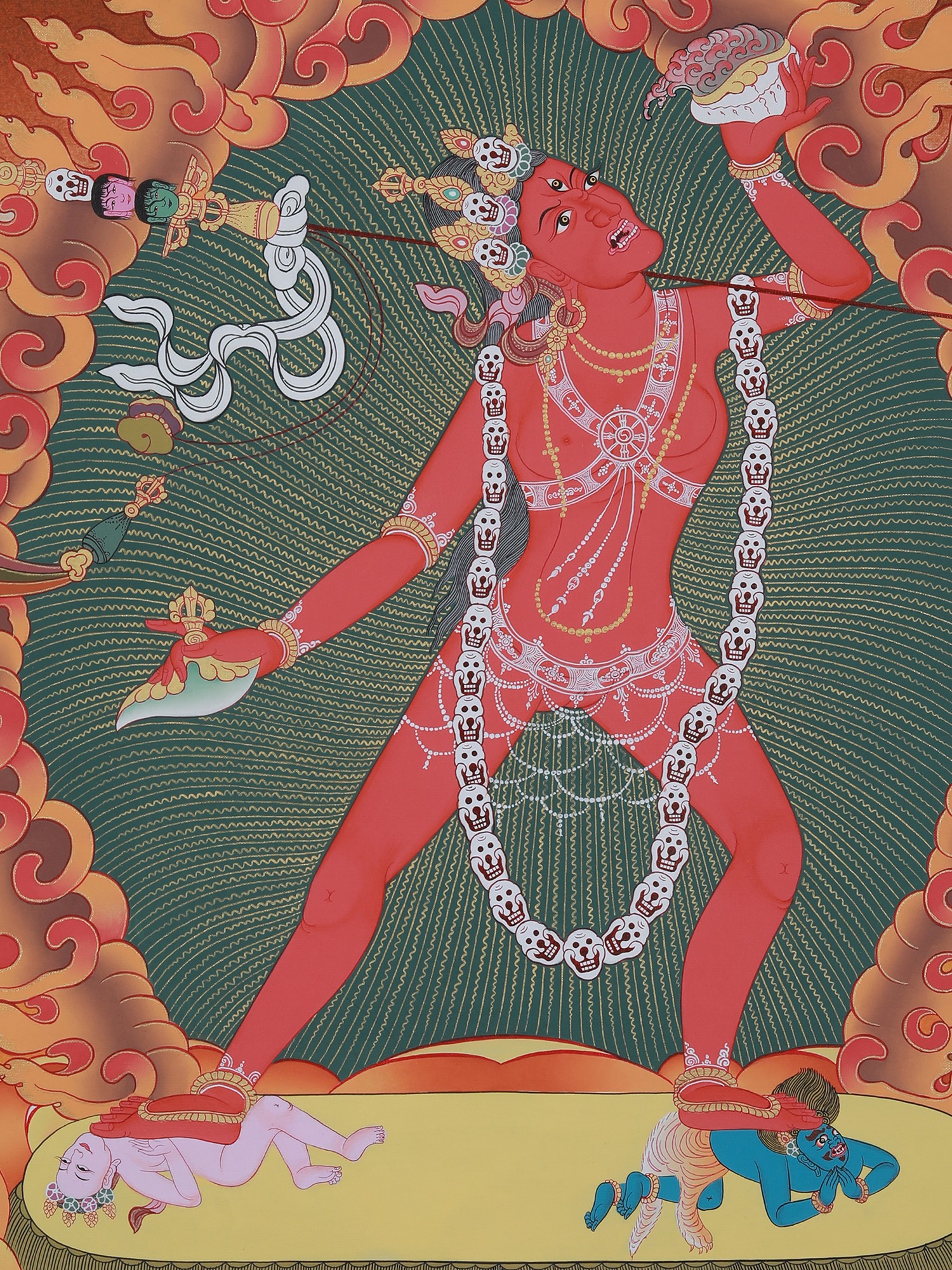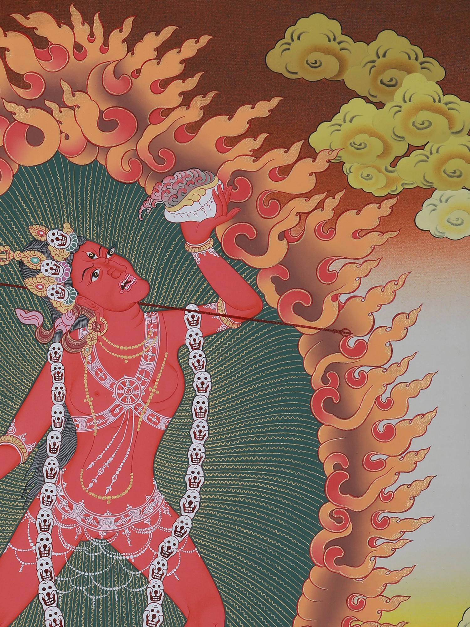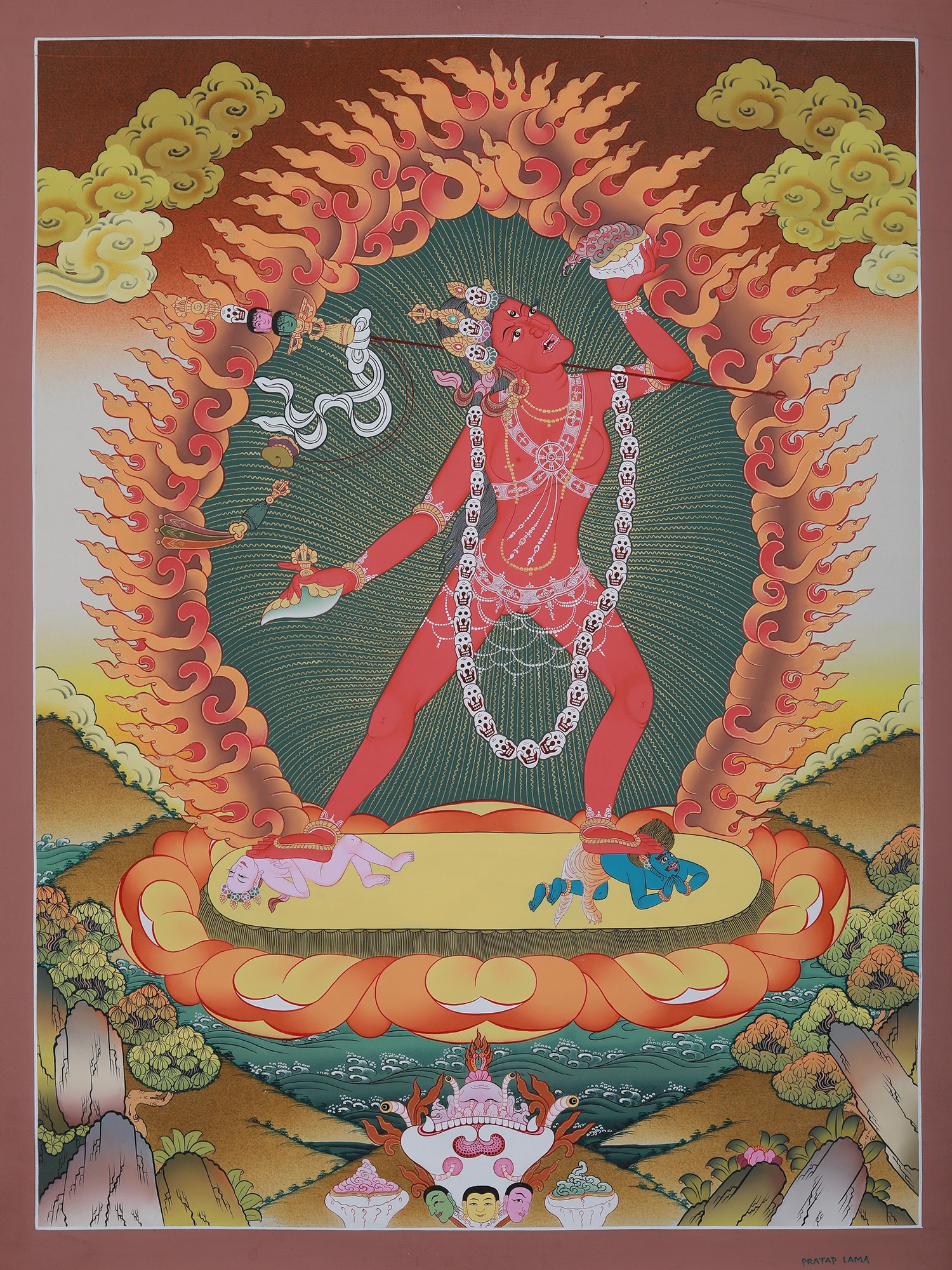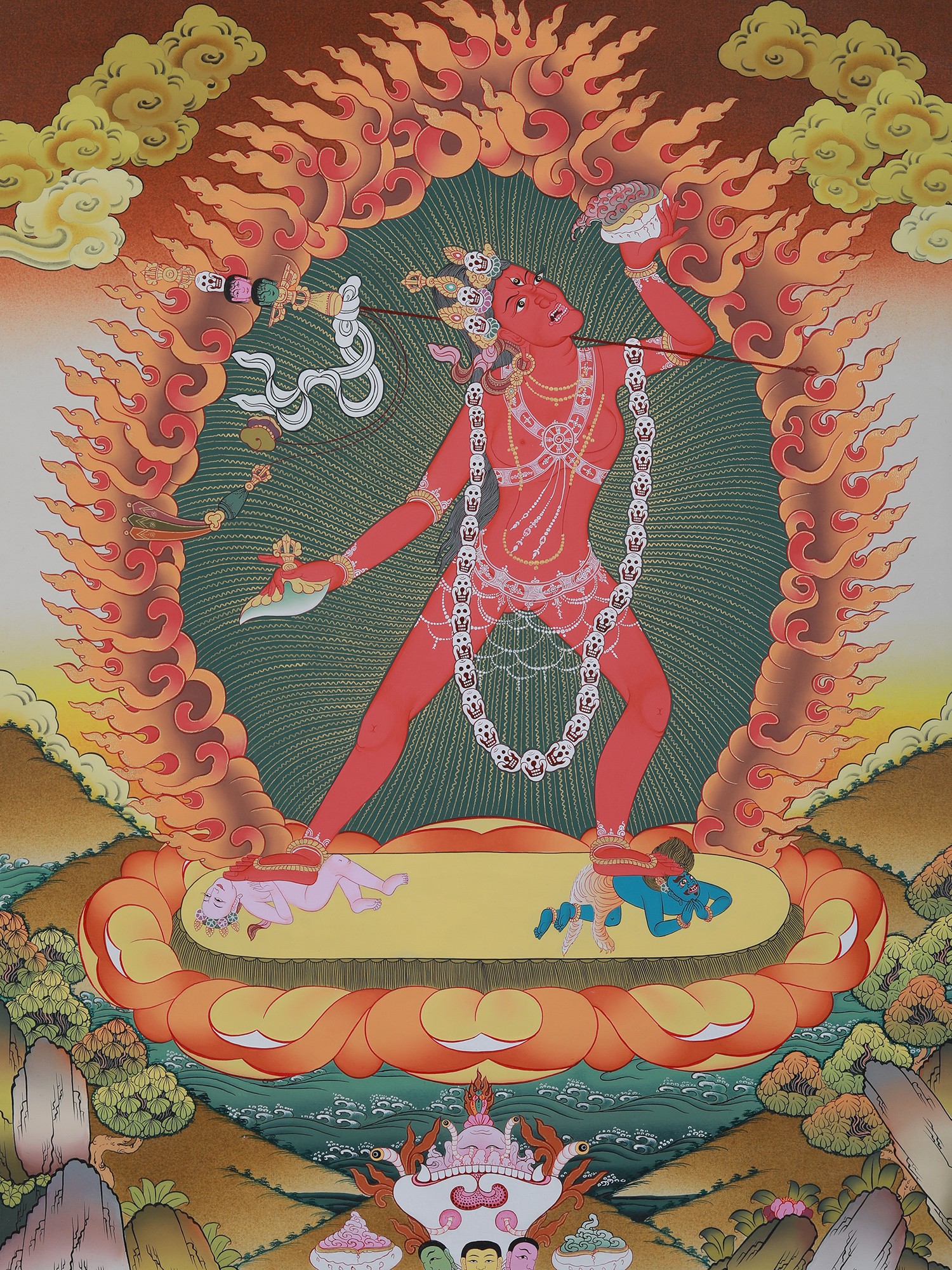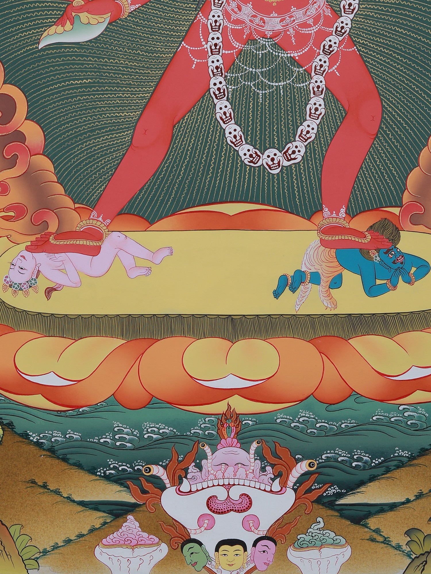 The Tibetan Buddhist God of Wealth - Kubera (Brocadeless Thangka)