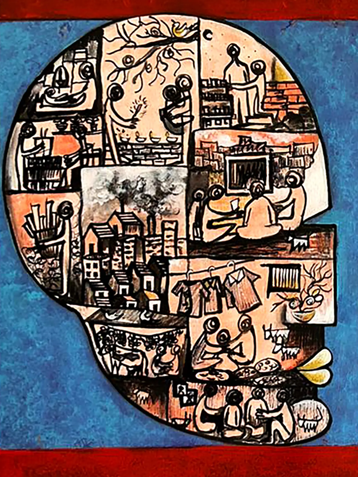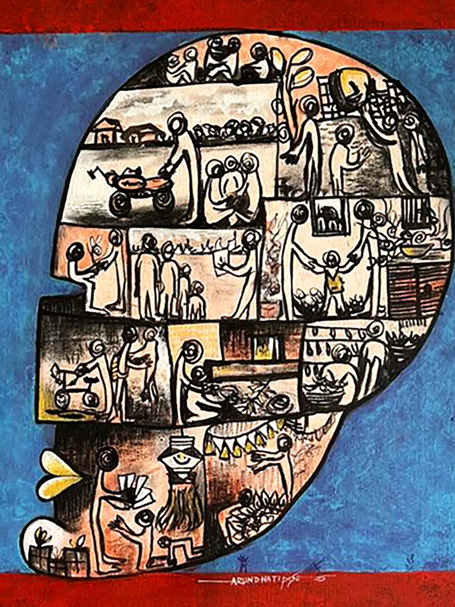 This artwork resonates with themes that echo throughout human history and diverse cultures, touching upon universal aspects of existence. It speaks to the shared human journey, the tapestry of relationships, and the internal worlds we inhabit. The stylized figures and narrative elements evoke a sense of timeless storytelling, inviting personal interpretation and connection.