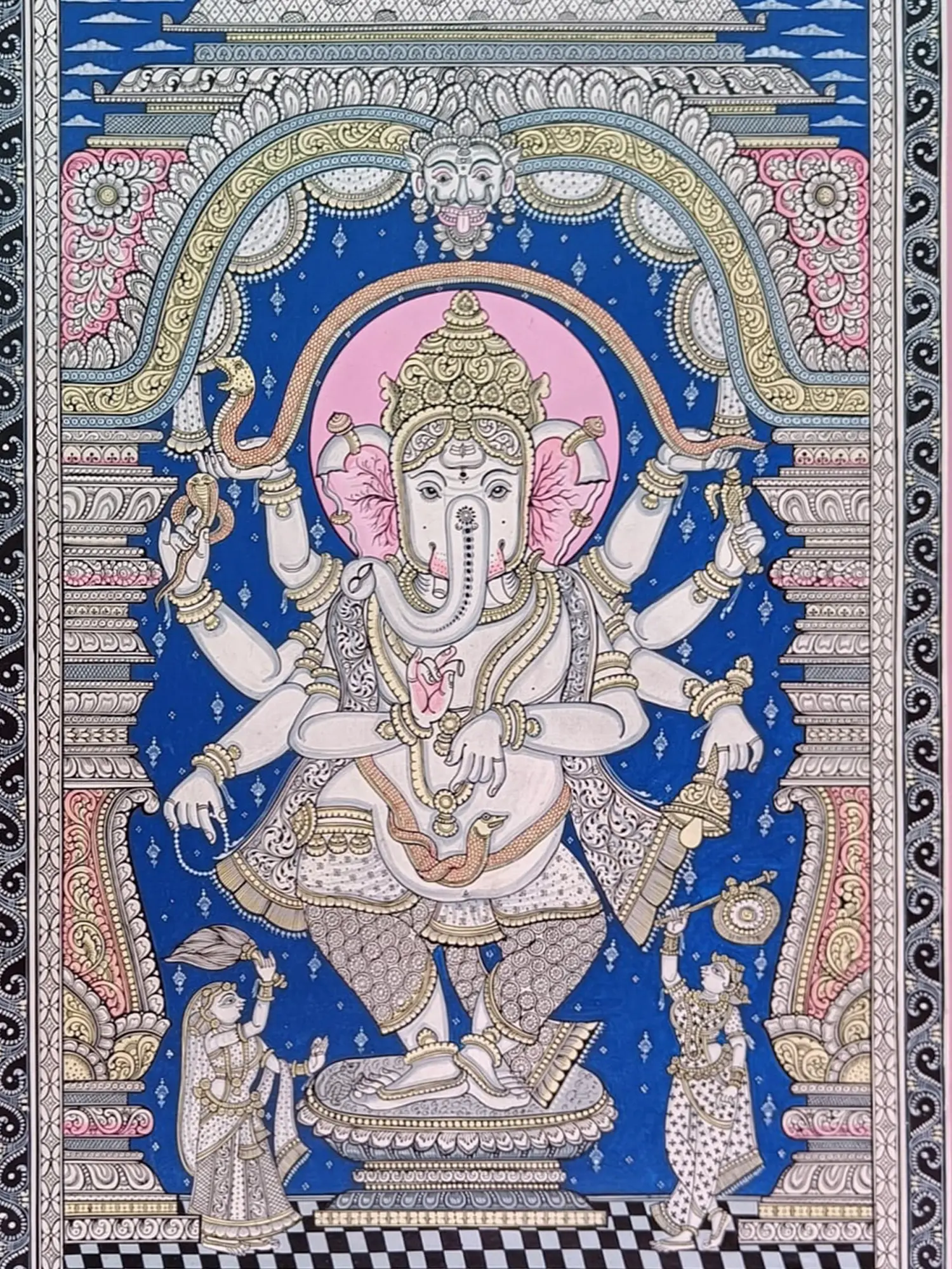 Dancing Lord Ganesha | Acrylic On Canvas | Traditional Kerala Mural Art
