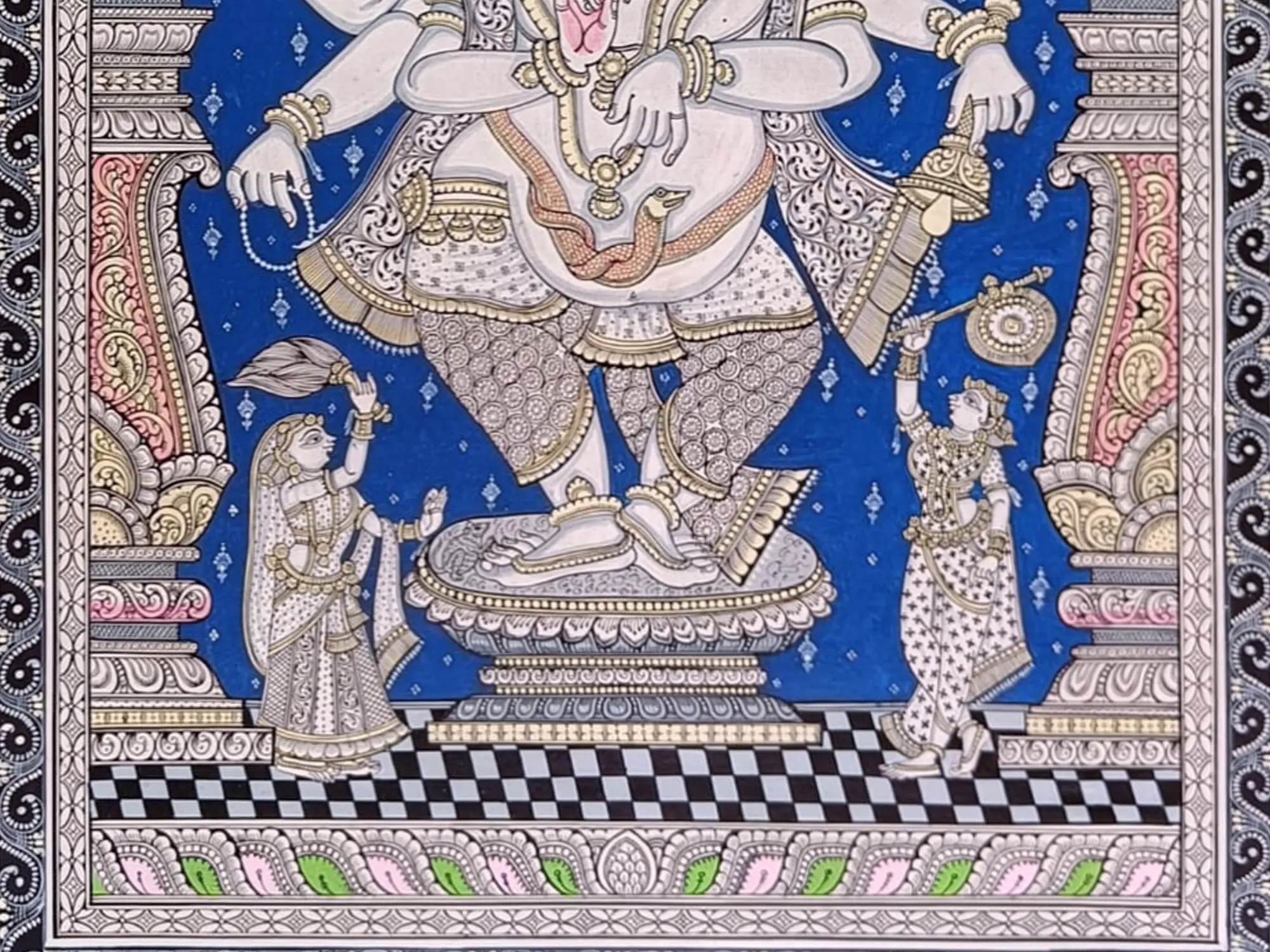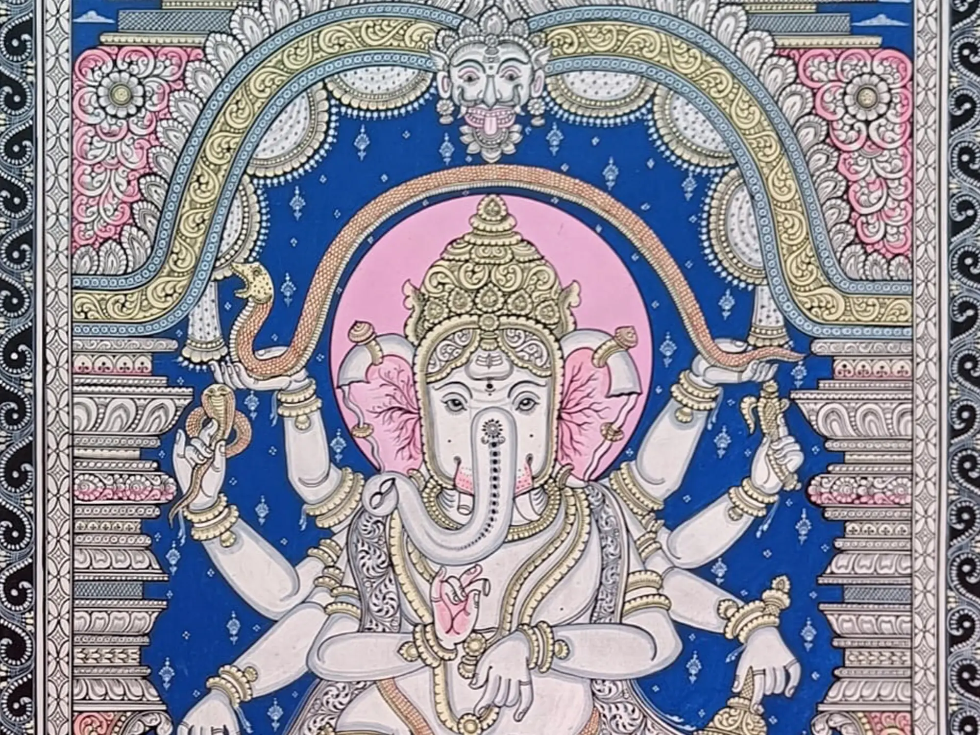 Invite auspiciousness and a sense of sacred grandeur into your space with this captivating portrayal of the divine remover of obstacles. This magnificent artwork serves as a powerful focal point, inspiring contemplation and bestowing blessings upon all who behold it. Its presence promises to transform your surroundings into a sanctuary of peace and spiritual resonance.