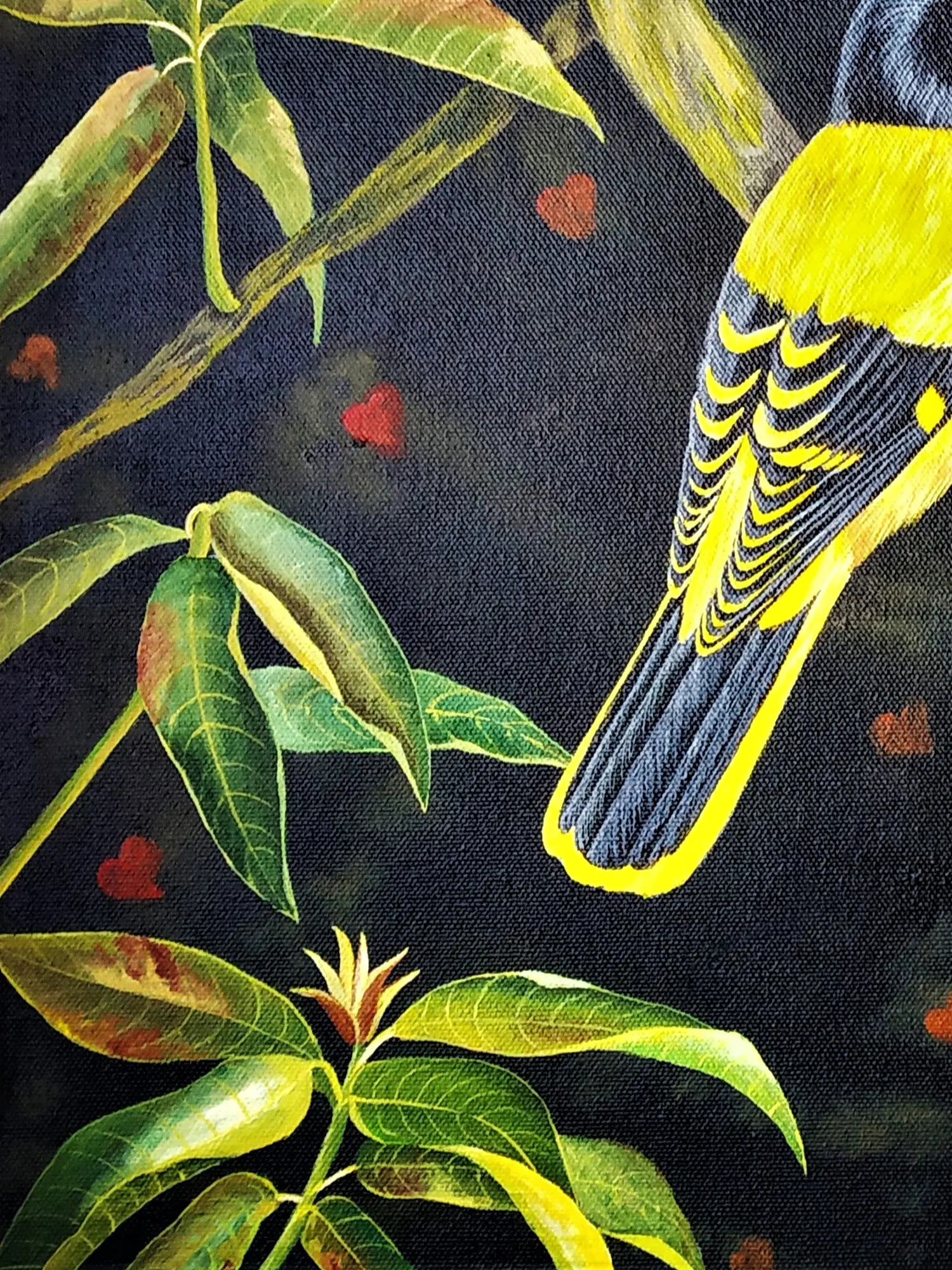 To ensure the longevity of this exquisite piece, we recommend avoiding direct sunlight and maintaining a stable indoor climate. Dust gently with a soft, dry cloth, taking care not to press on the painted surface. With proper care, the vibrant acrylics and intricate details will remain as captivating for generations as they are today, a testament to its enduring artistic value.