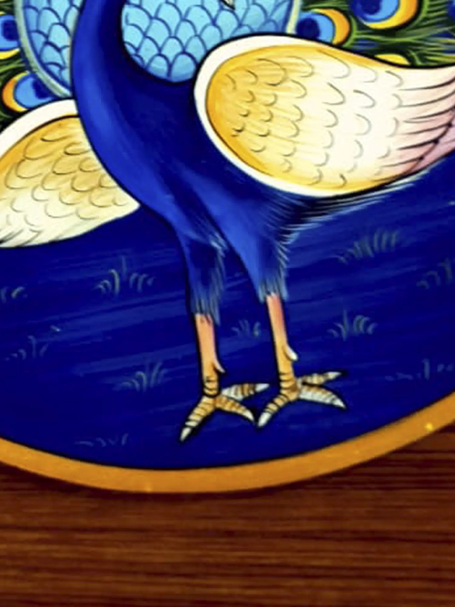 This circular-shaped painting depicting the dancing peacock captures the movement and moment when the bird is at the peak of its beauty. The dancing peacock, a symphony of colors in motion, stands as a sublime testament to the splendor woven into the fabric of the natural world.