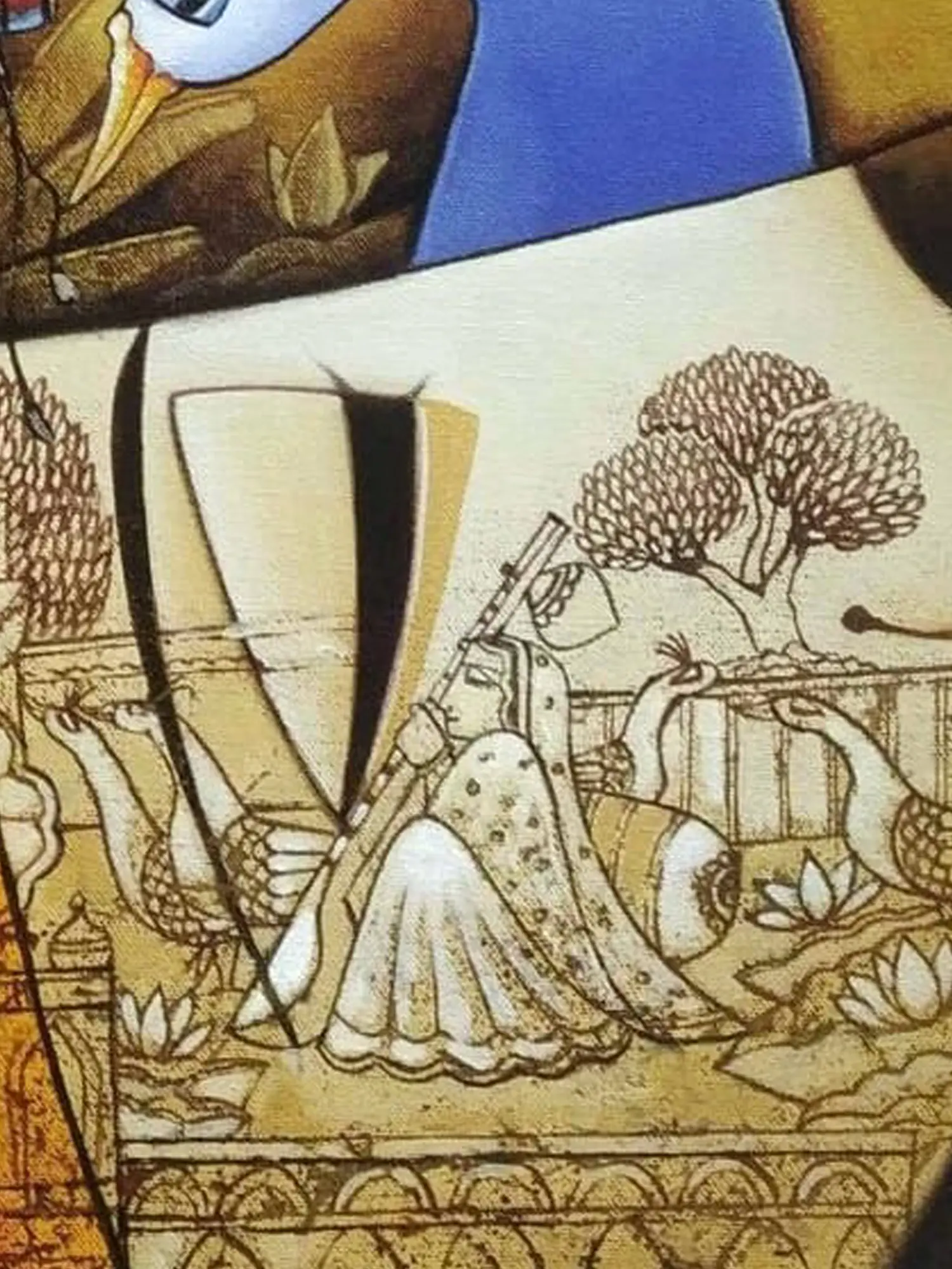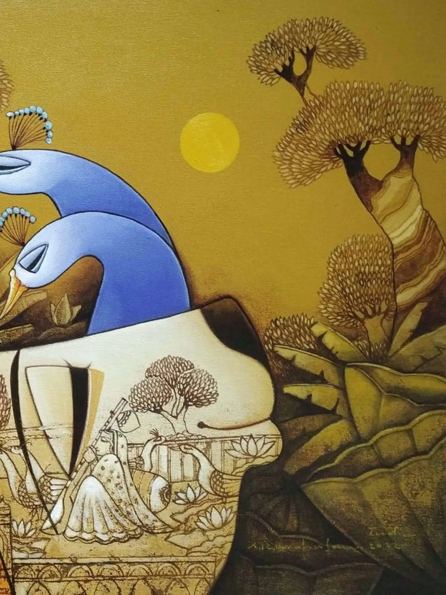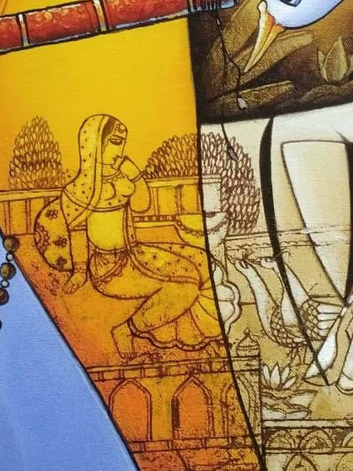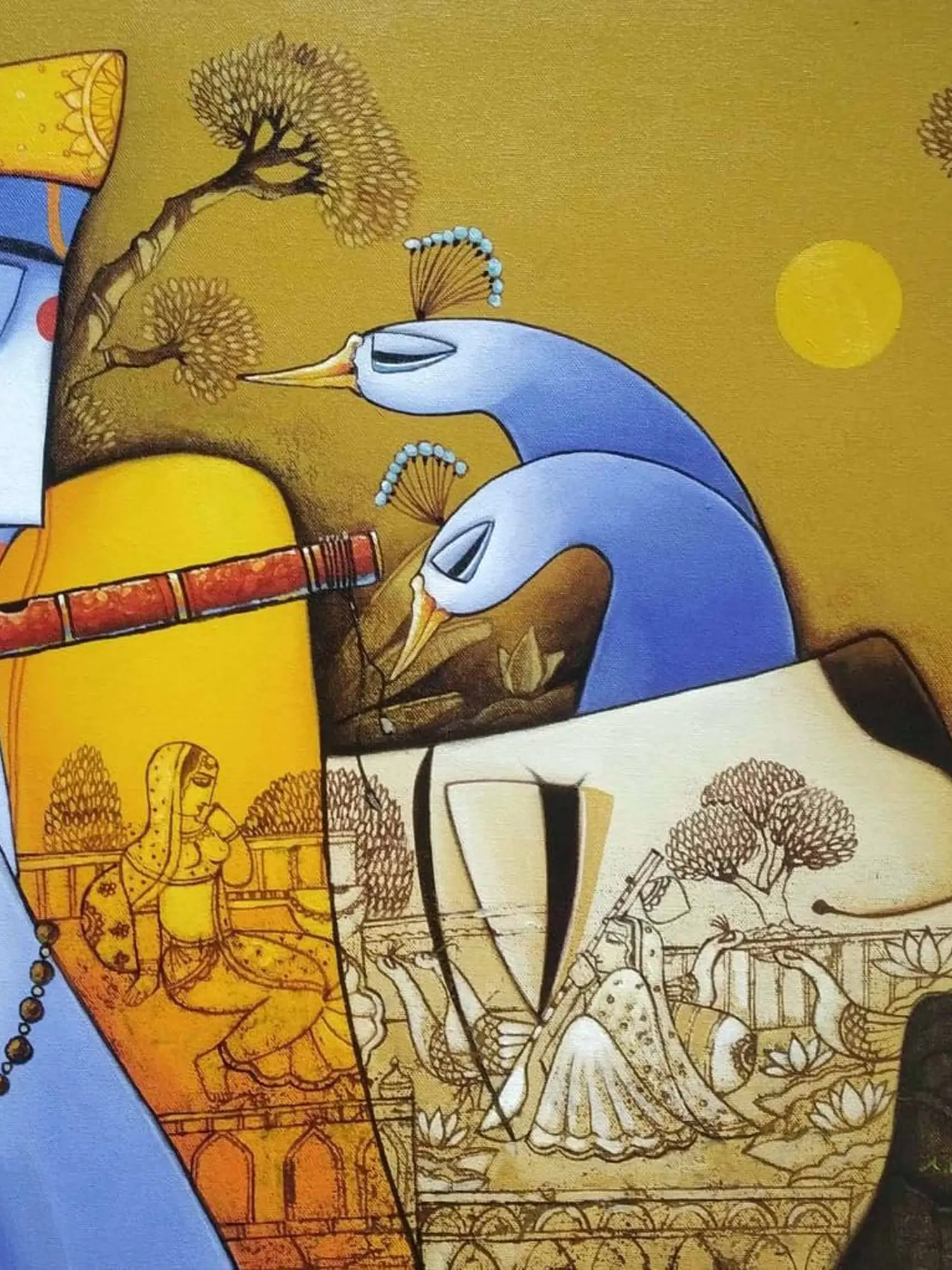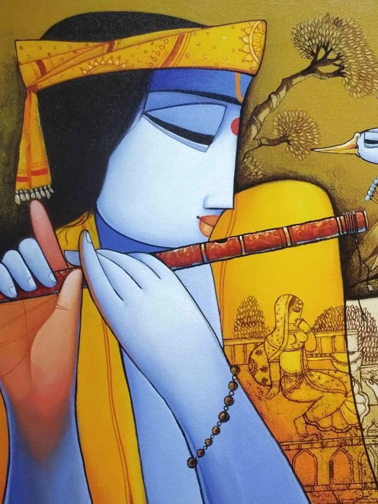 An "Attractive Painting of Divine Krishna" mesmerises with acrylic brilliance on canvas. The artist captures the allure of Lord Krishna, using vibrant hues to showcase divine charm. Each stroke narrates the enchanting tales of Krishna's exploits, creating a narrative of charisma. Immerse yourself in the allure of this acrylic piece, where the divine presence of Krishna radiates through every stroke.