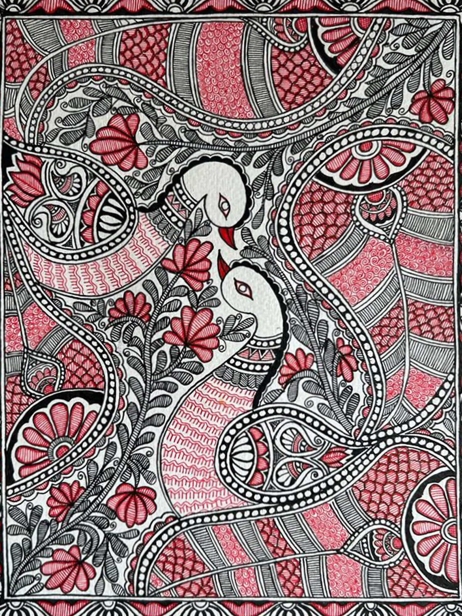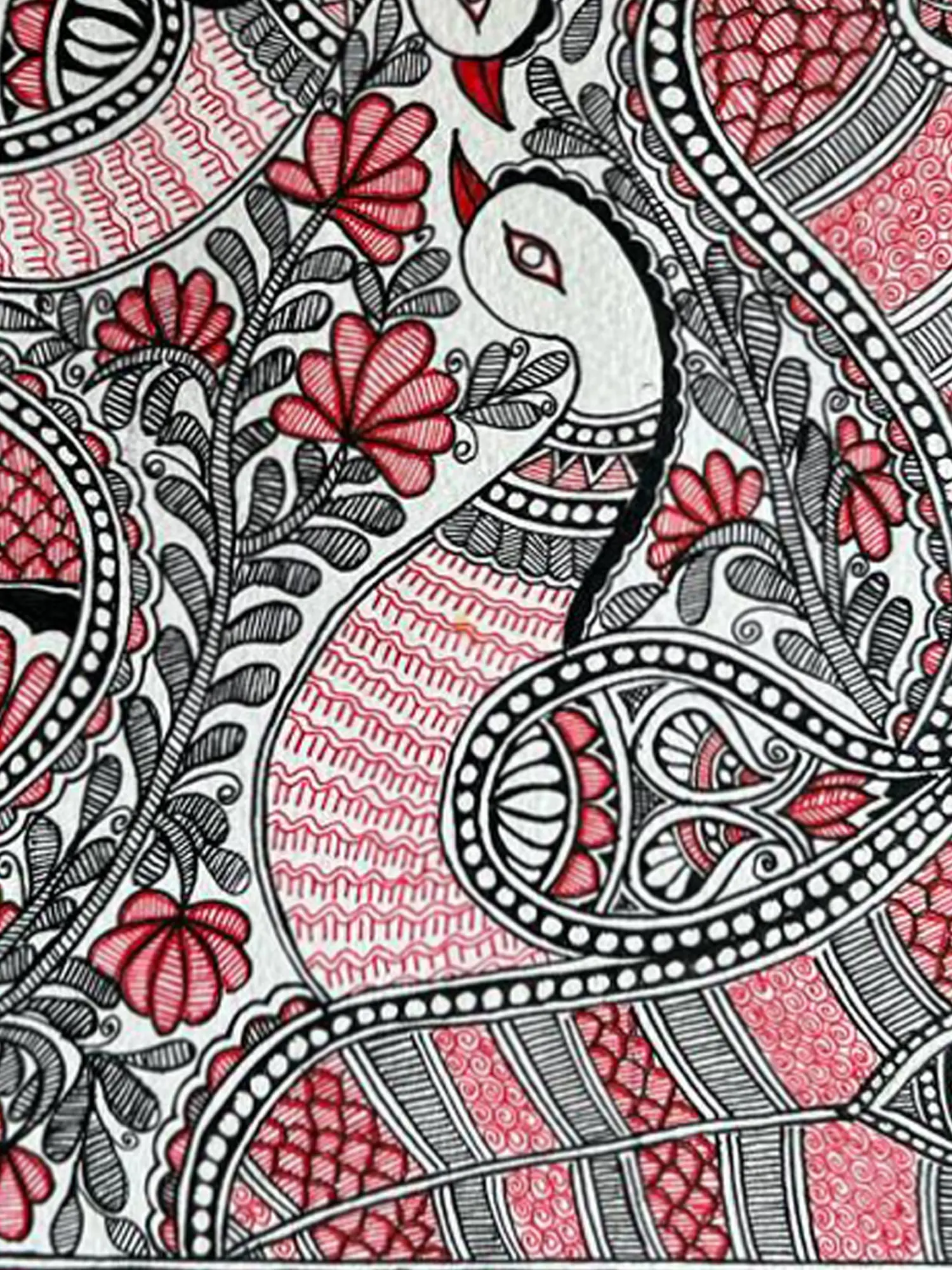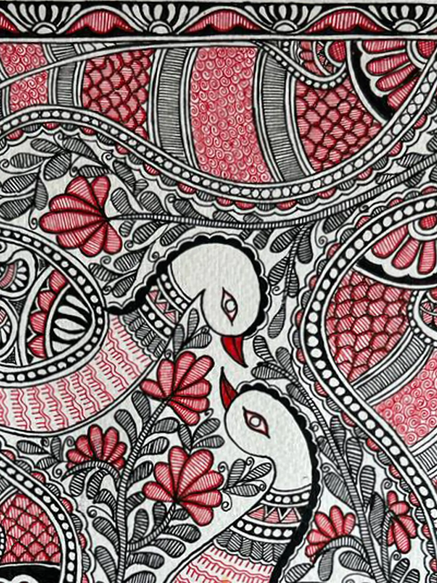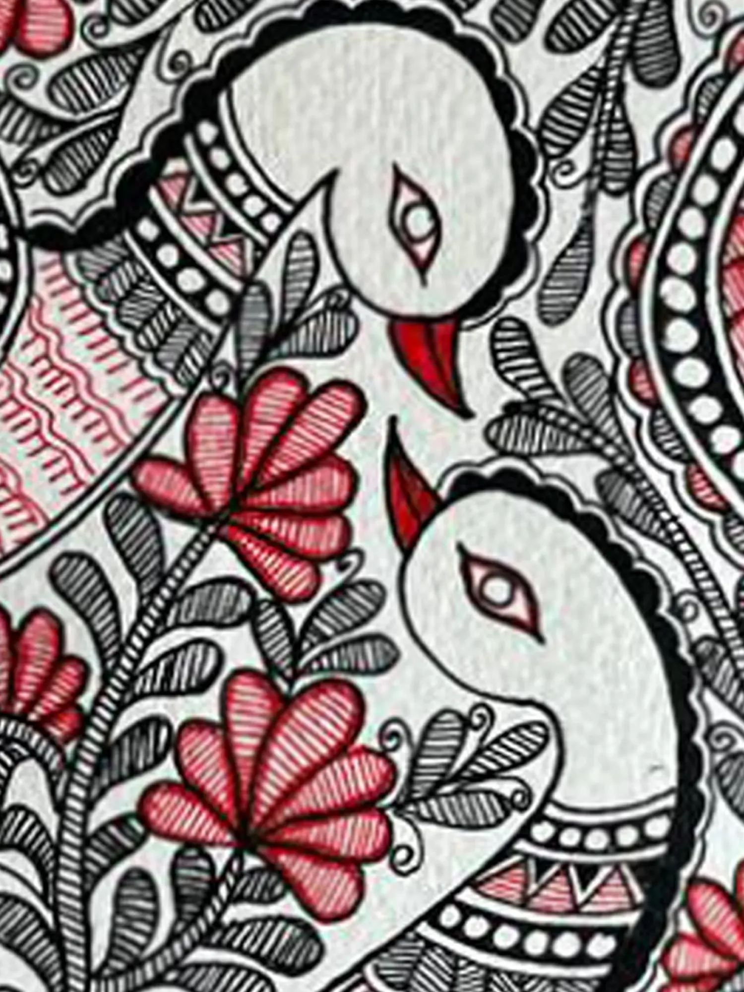 Madhubani Peacock And Fish Painting | Acrylic On Handmade Paper | With Frame | By Mrunamayee Chandurkar Bakal