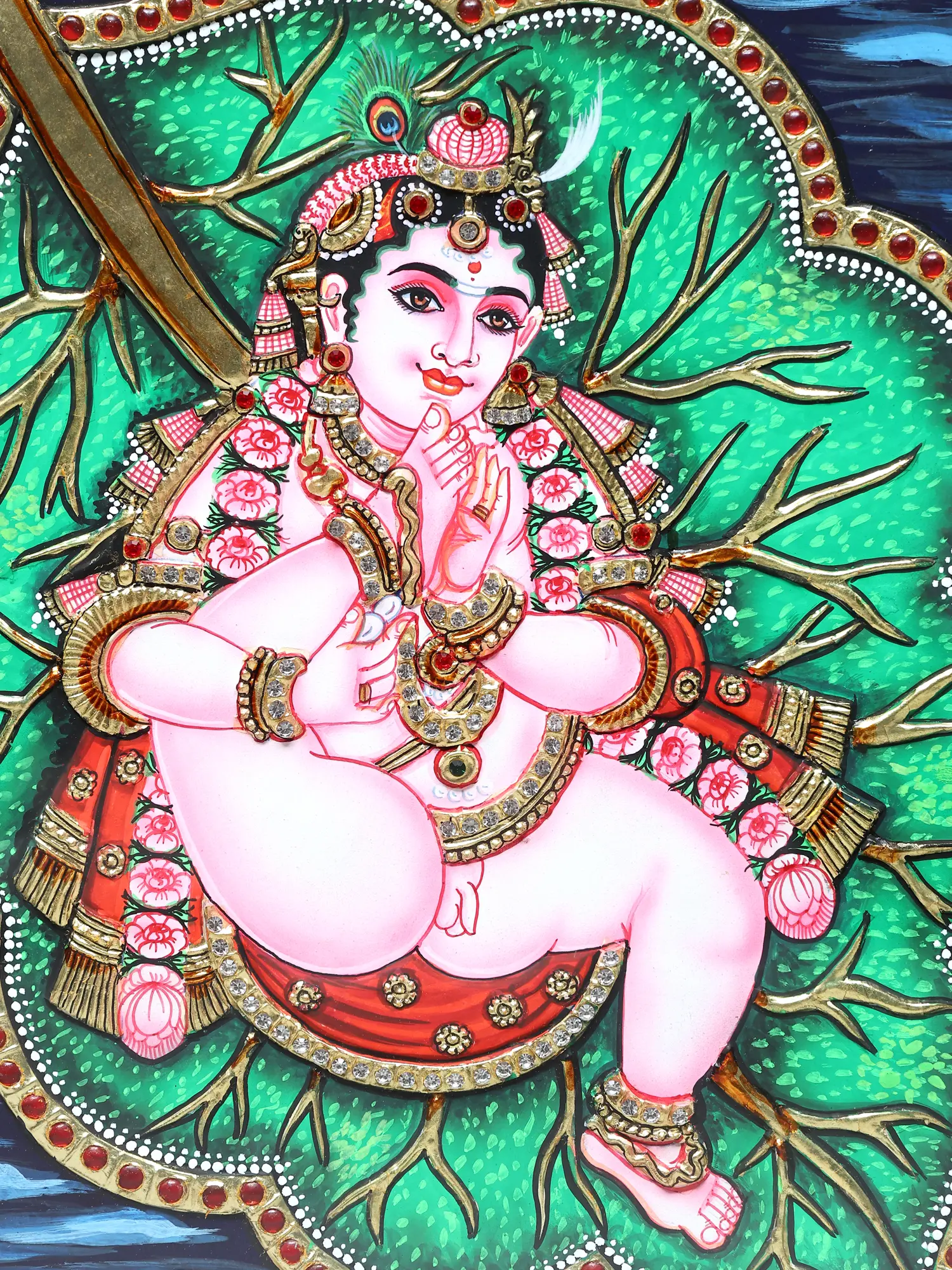 Bal Lila of Little Krishna | Traditional Colors with 24 Karat Gold | Tanjore Painting with Frame