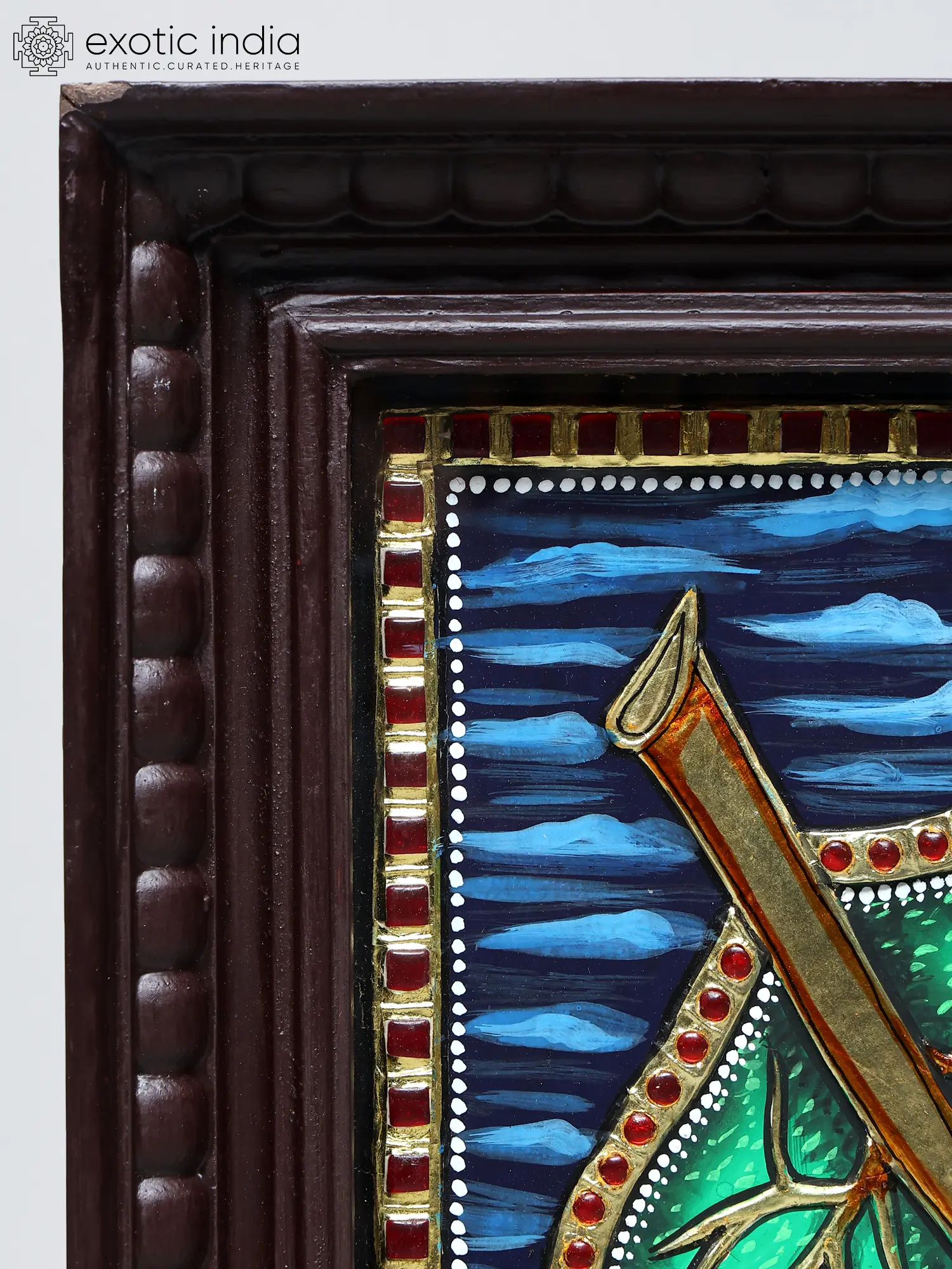 Lord Krishna and Rukmini - Handmade Tanjore Painting | Traditional Colors with 24 Karat Gold | With Frame