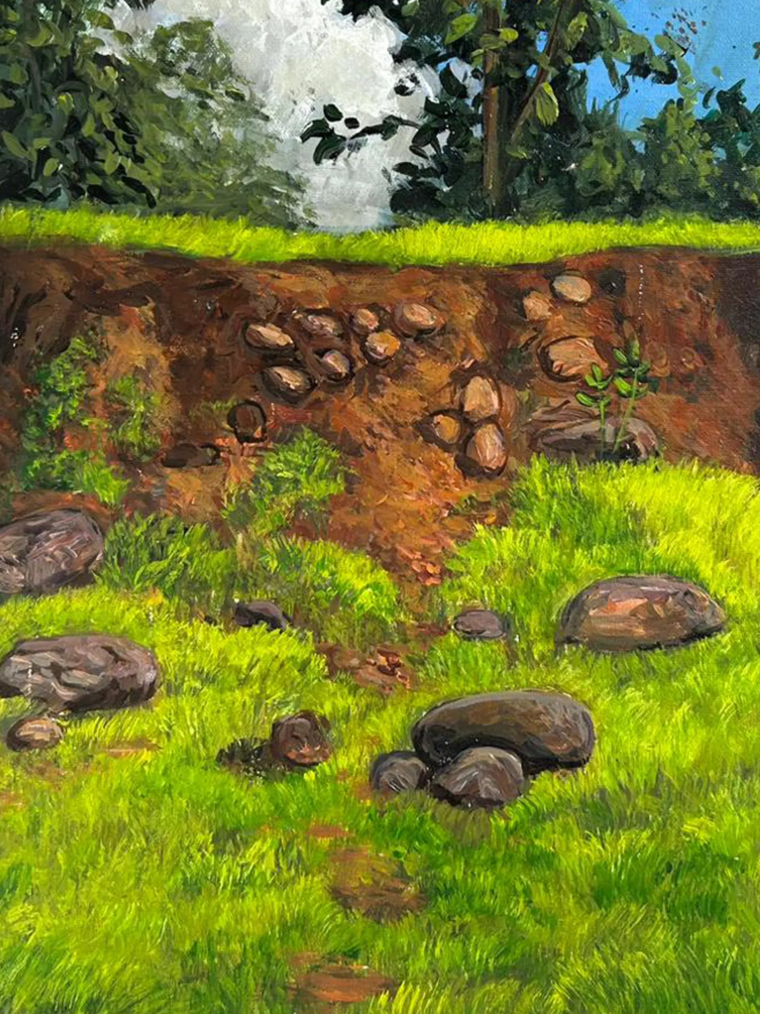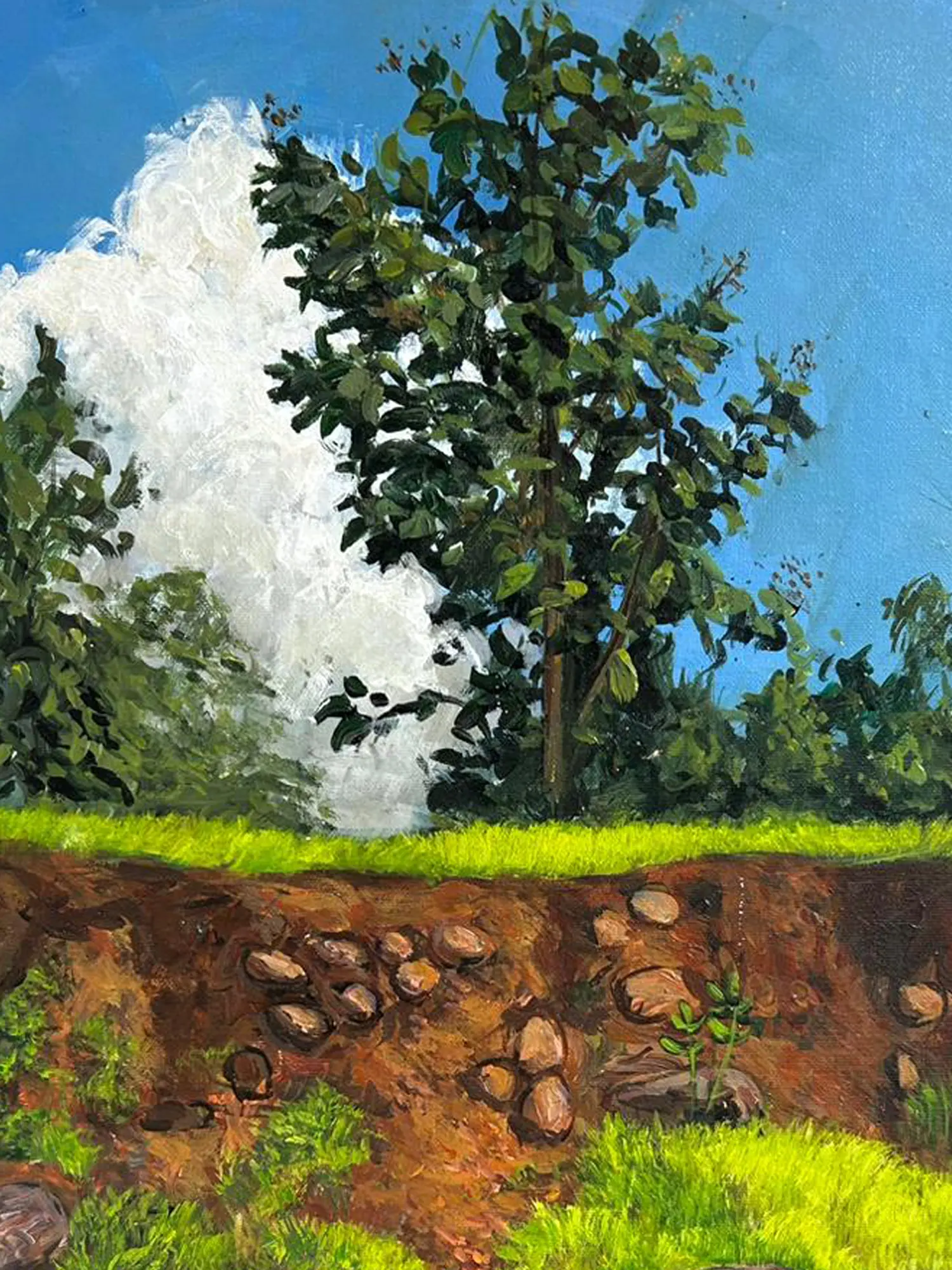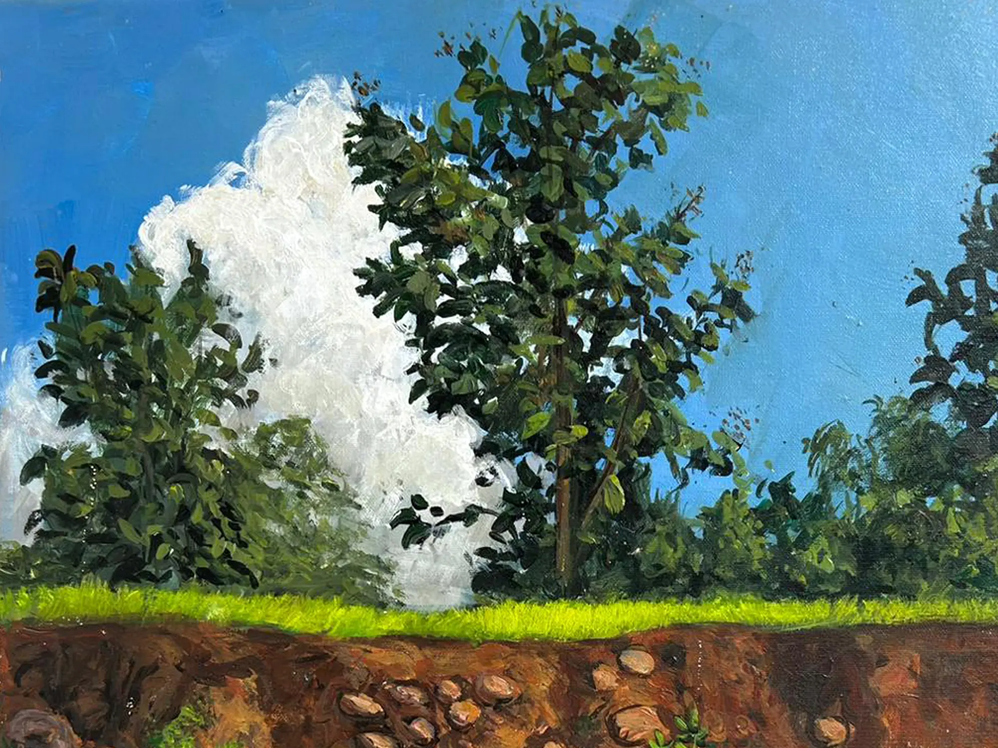 This Acrylic Painting by Somnath Harne titled Backyard, unveils the beauty within the familiar. The canvas transforms into an intimate portrayal of a backyard, alive with vivid hues and subtle details. Harne's brush dances with acrylics, capturing the essence of everyday scenes. The play of light on foliage and the meticulous rendering of textures evoke a sense of nostalgia and warmth. The artist skillfully balances realism with a touch of abstraction, offering a contemporary perspective on the ordinary. "Backyard" becomes a portal to cherished moments, where the ordinary transforms into a visual symphony, inviting viewers to rediscover the beauty nestled within the simplicity of their surroundings.