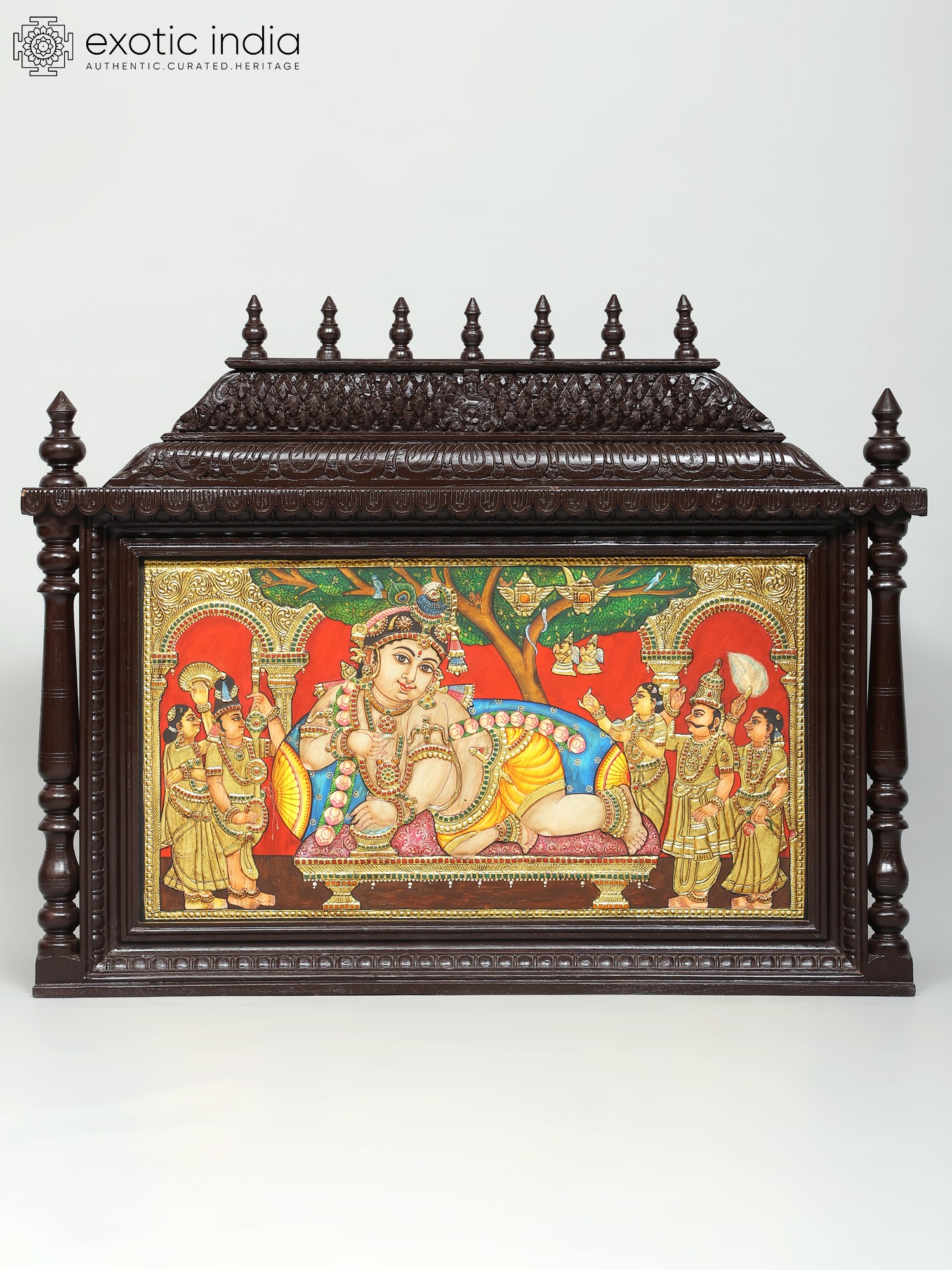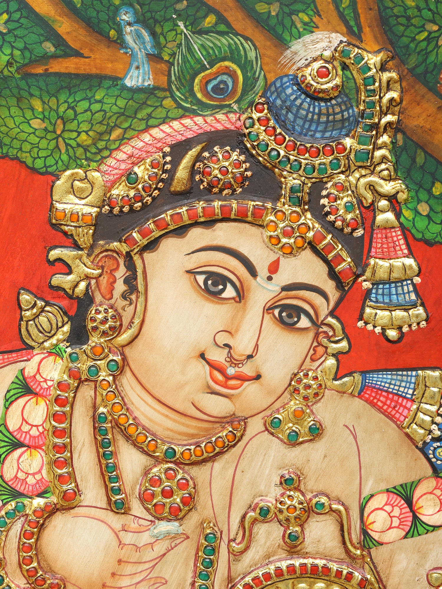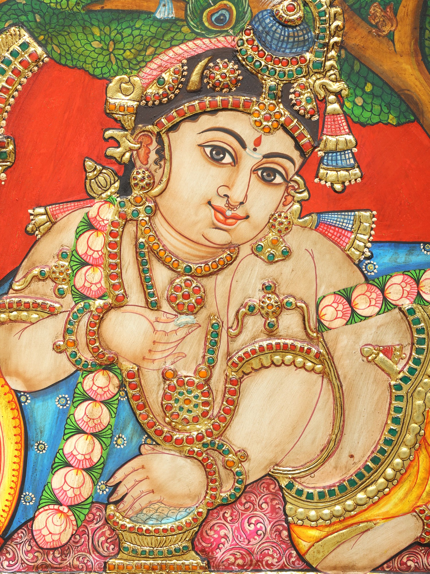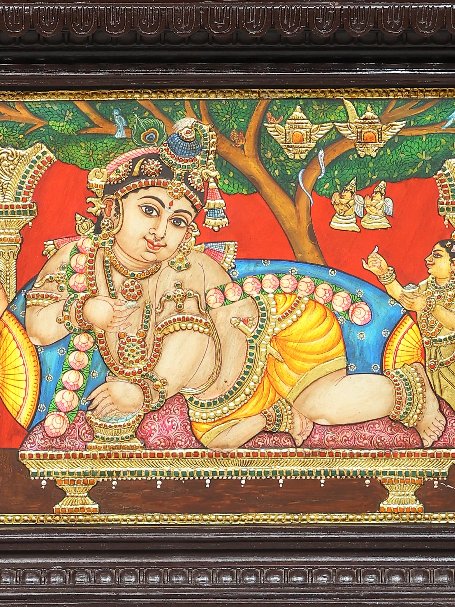 Butter Krishna Tanjore Painting | Traditional Colors With 24K Gold | Teakwood Frame | Gold & Wood | Handmade | Made In India