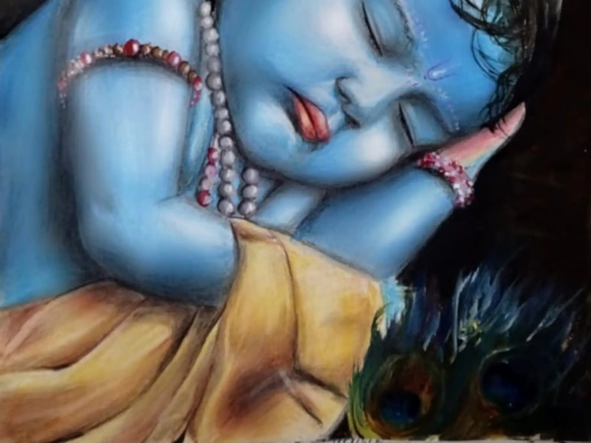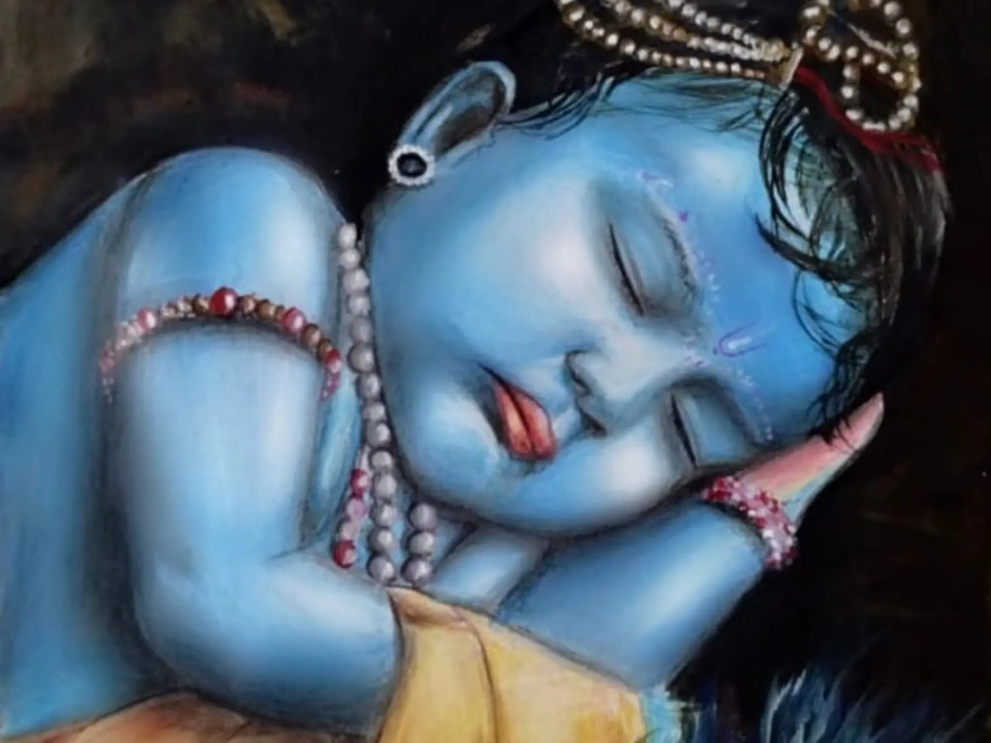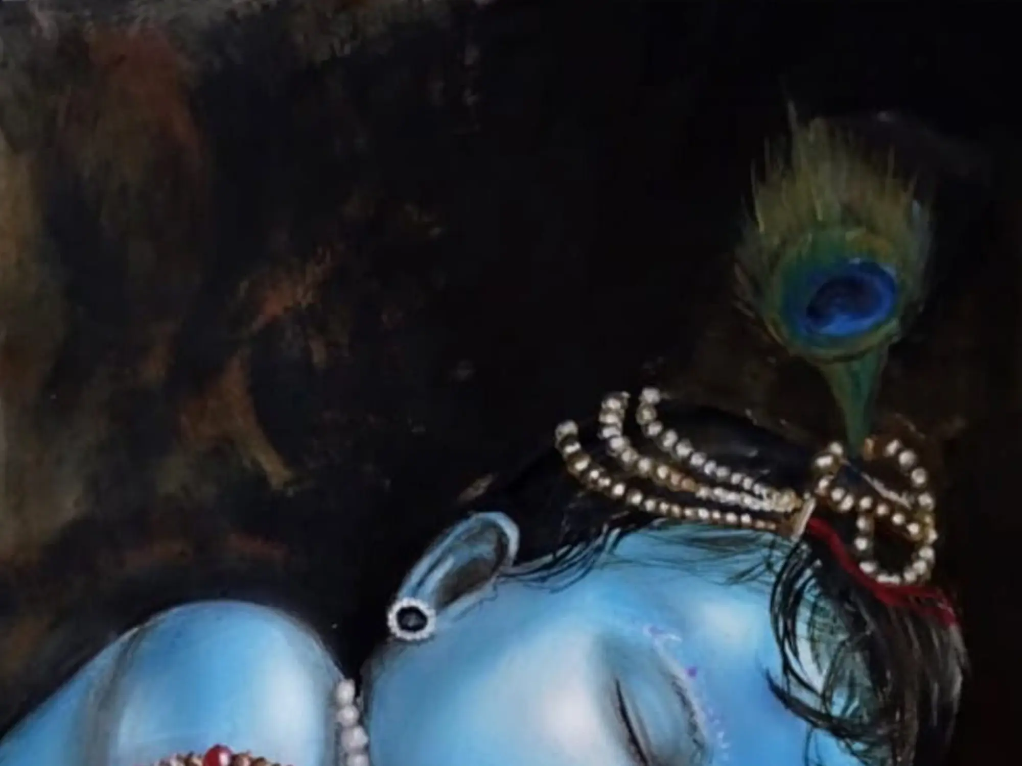 symphony of hues melded with strokes, speaks of Krishna's divine playfulness,