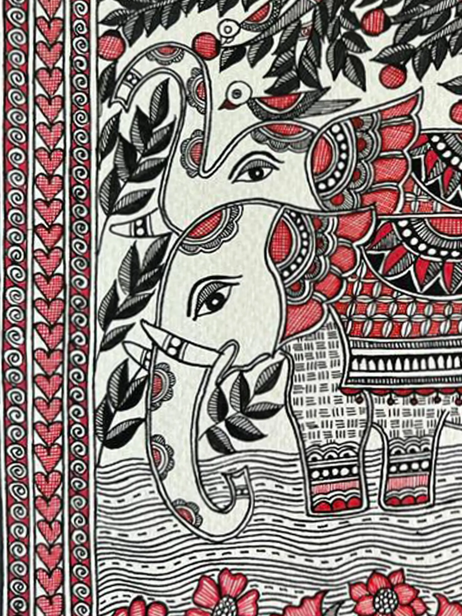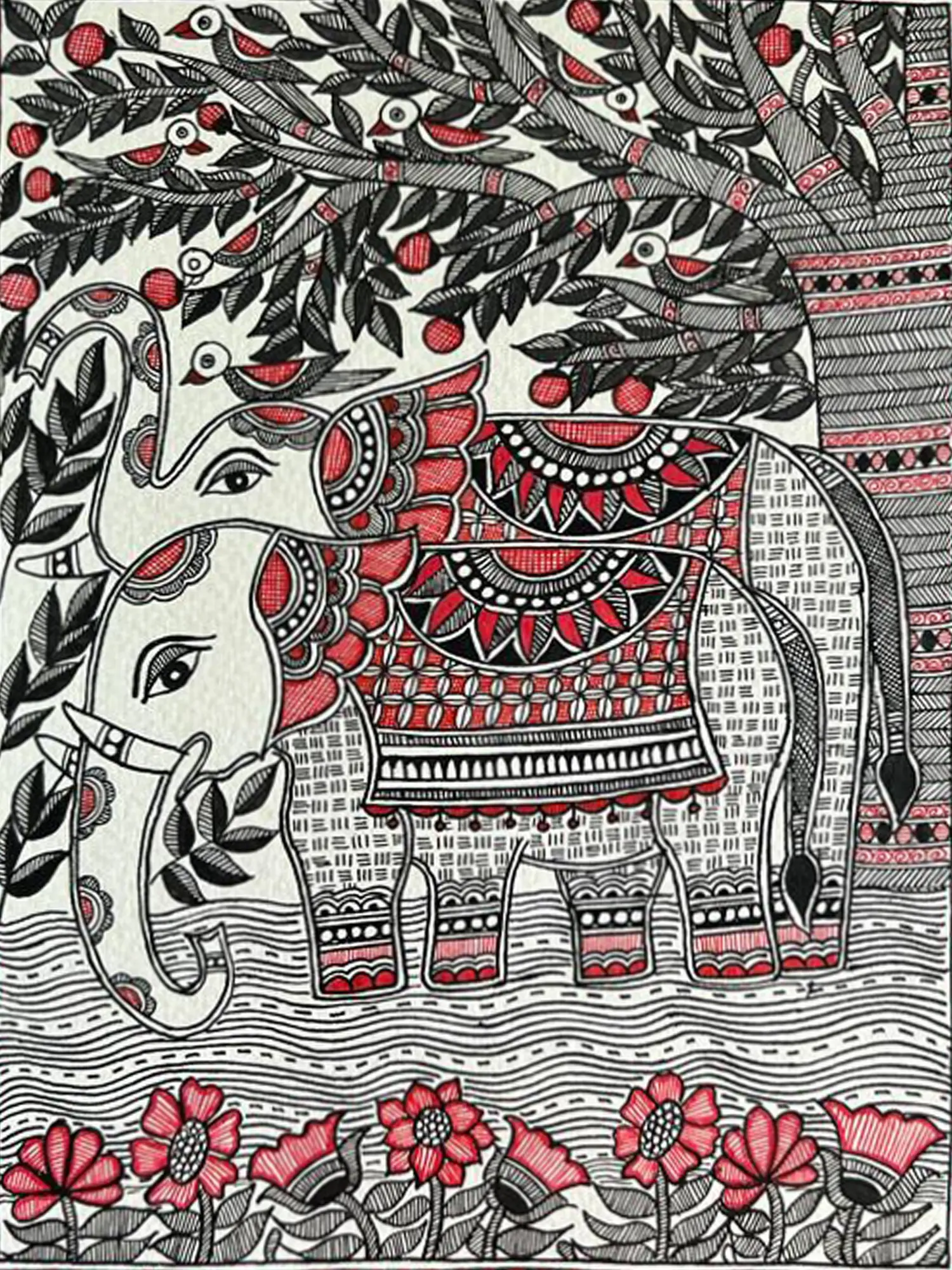 Attractive Pair Of Elephant | Madhubani Painting | Acrylic On Canvas | By Rina Patwa