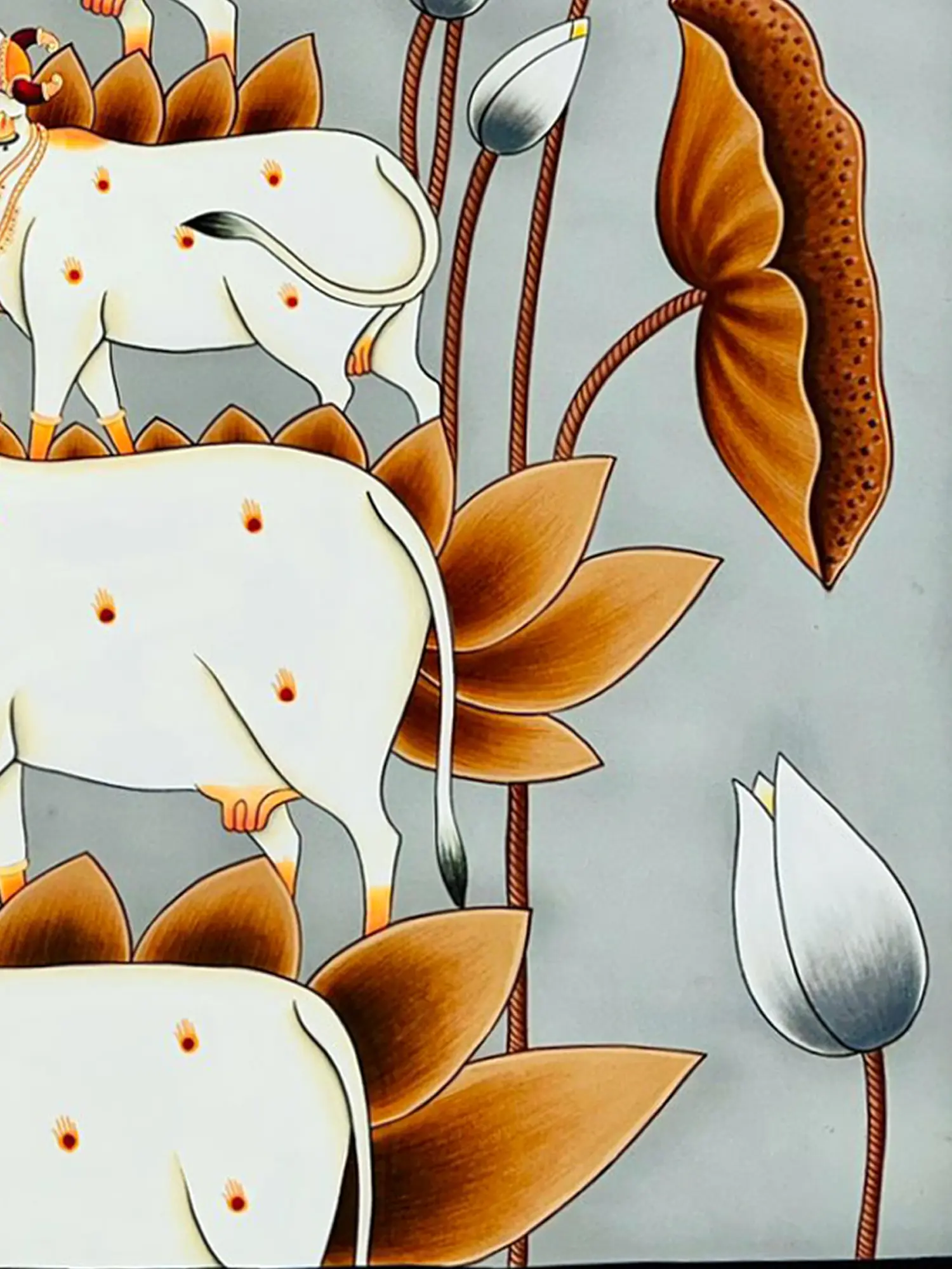 Krishna’s Melody : Cow And Lotus | Acrylic On Canvas | By Arjun Das