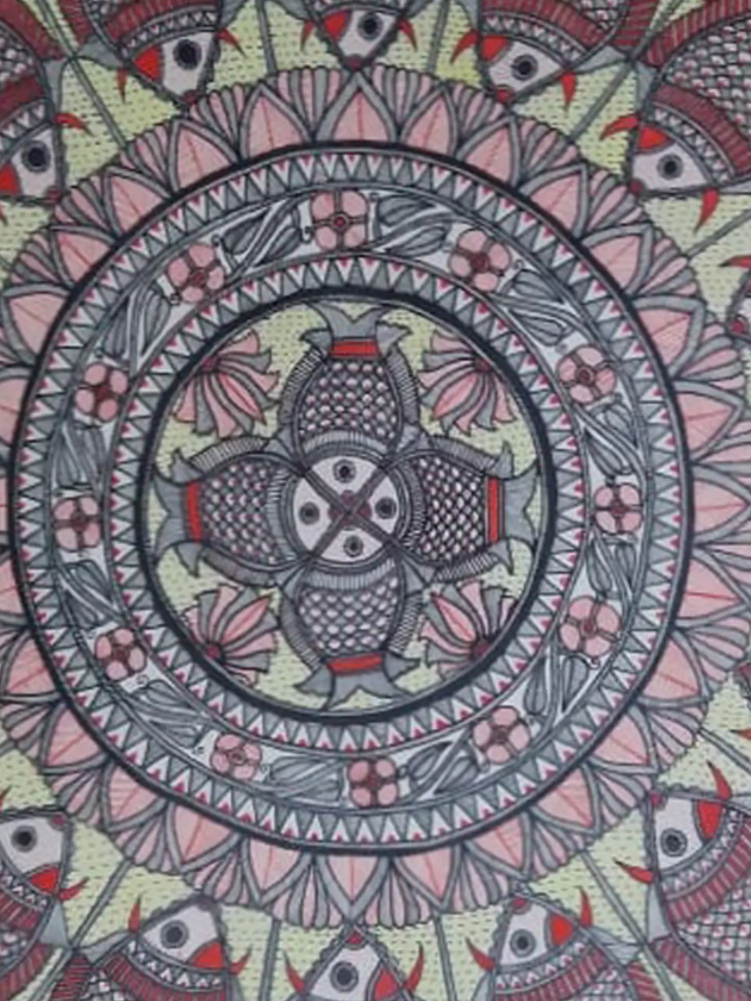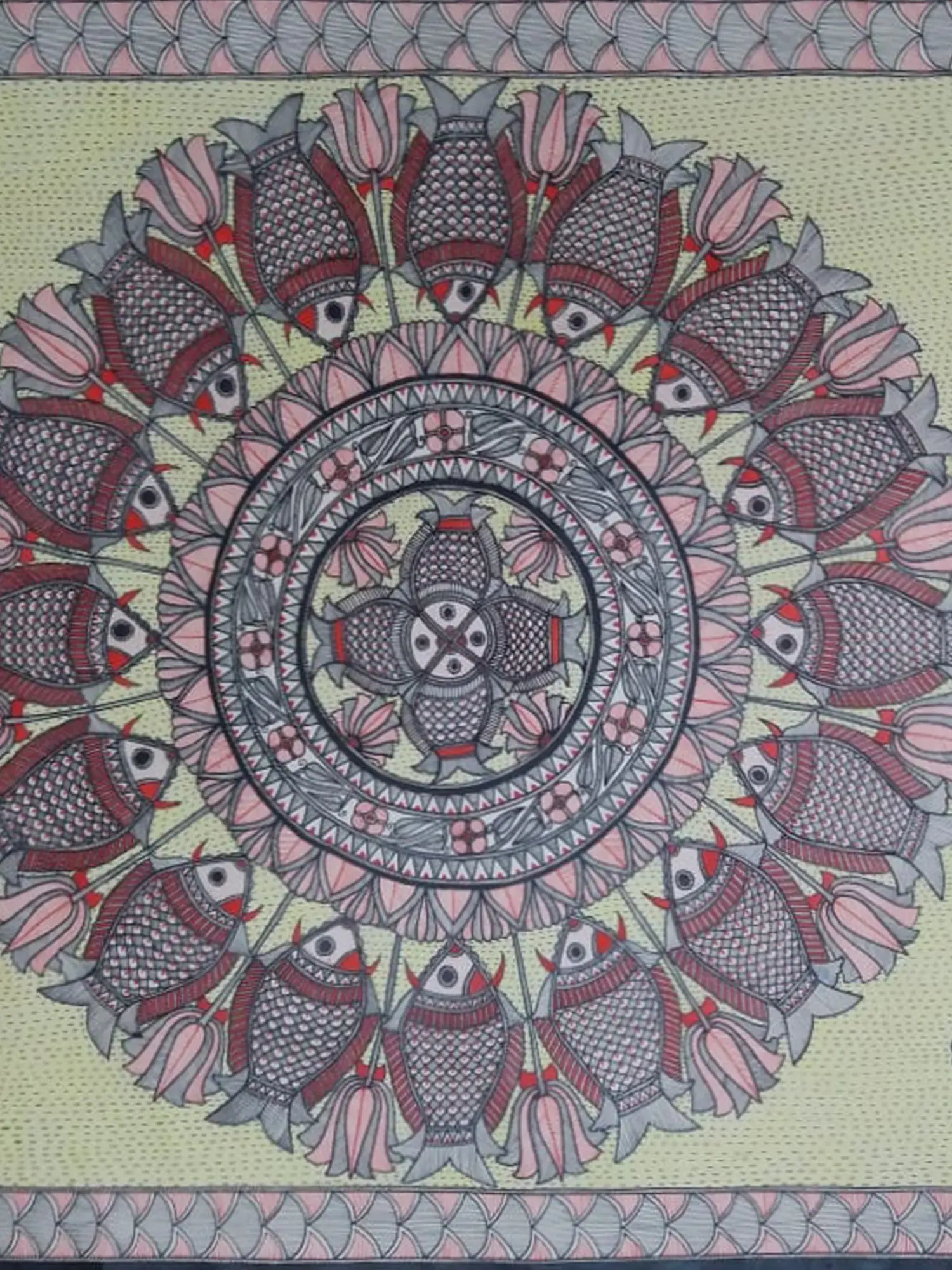 Floral Kohbar Madhubani Painting | Natural Colors On Handmade Paper | By Priti Karn
