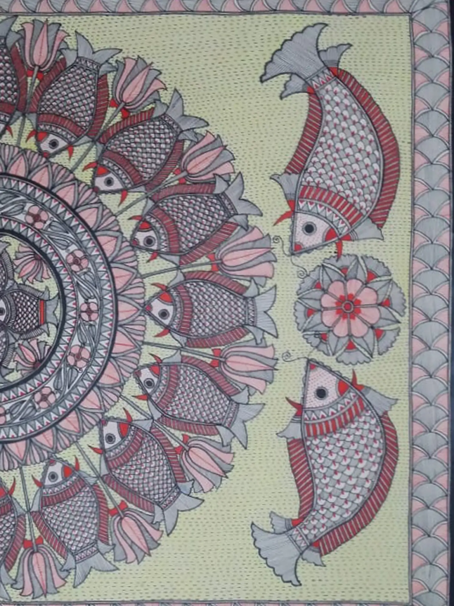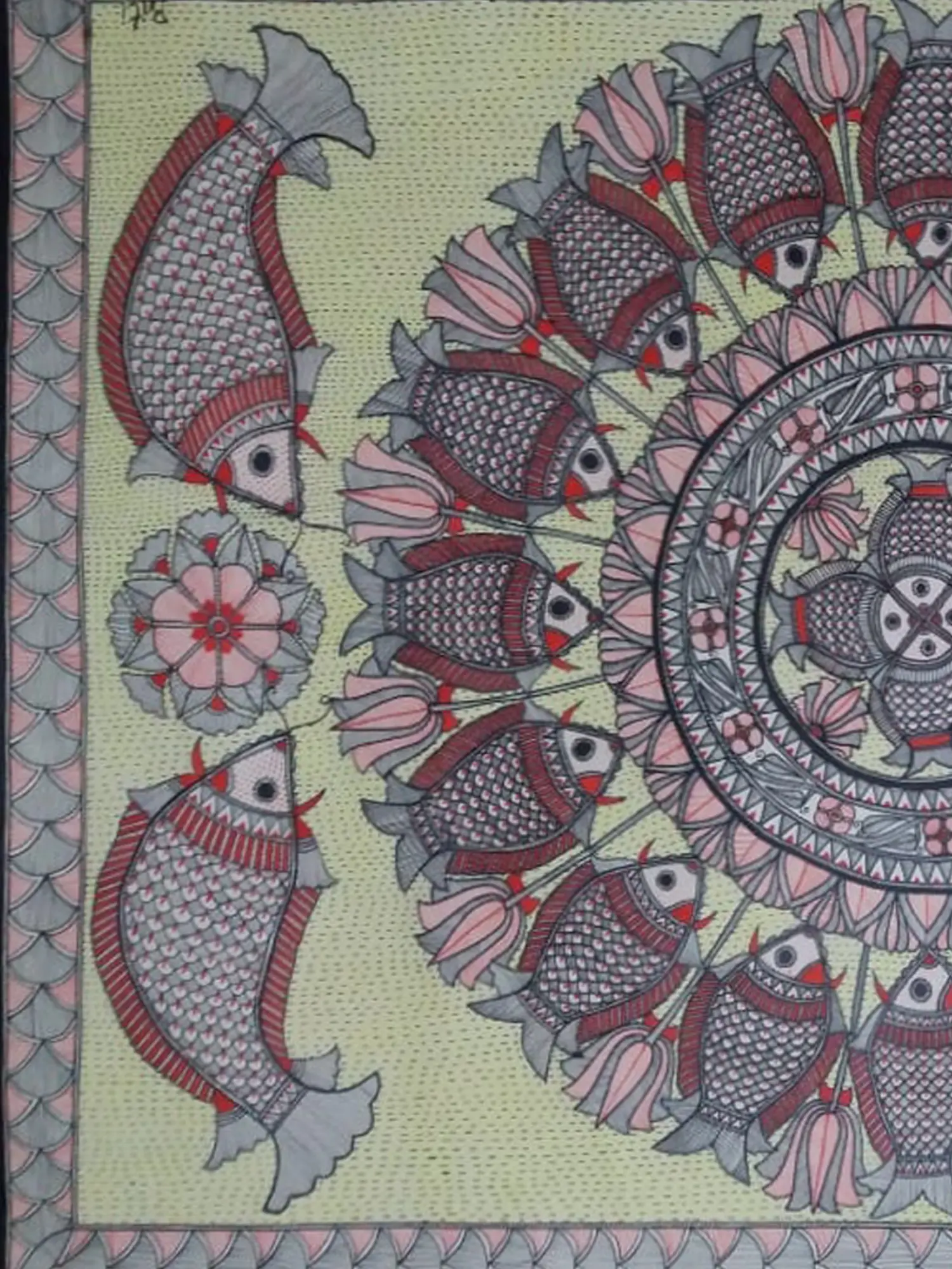 Matsya - Group Of Fishes | Natural Colors On Handmade Paper | By Priti Karn
