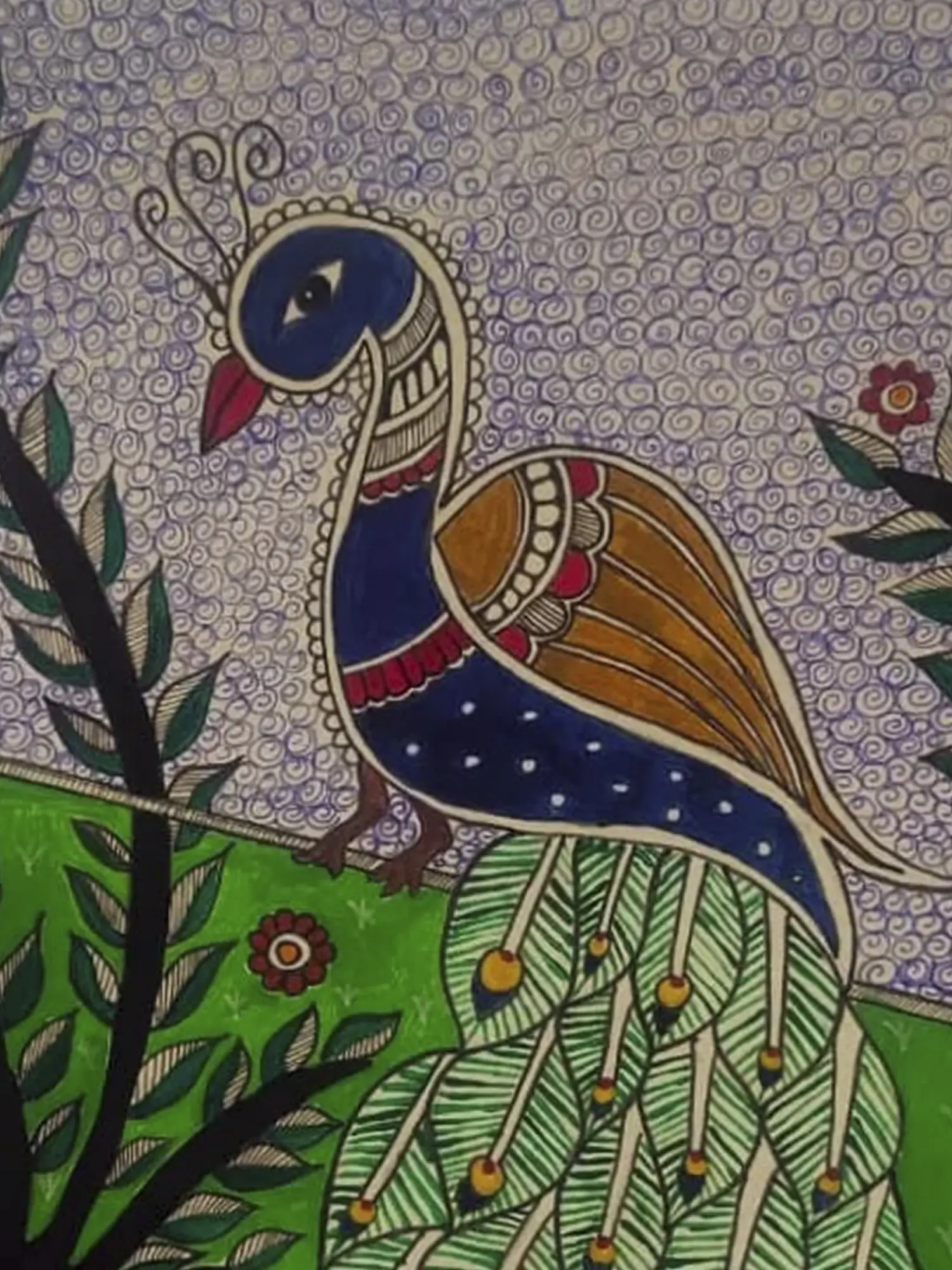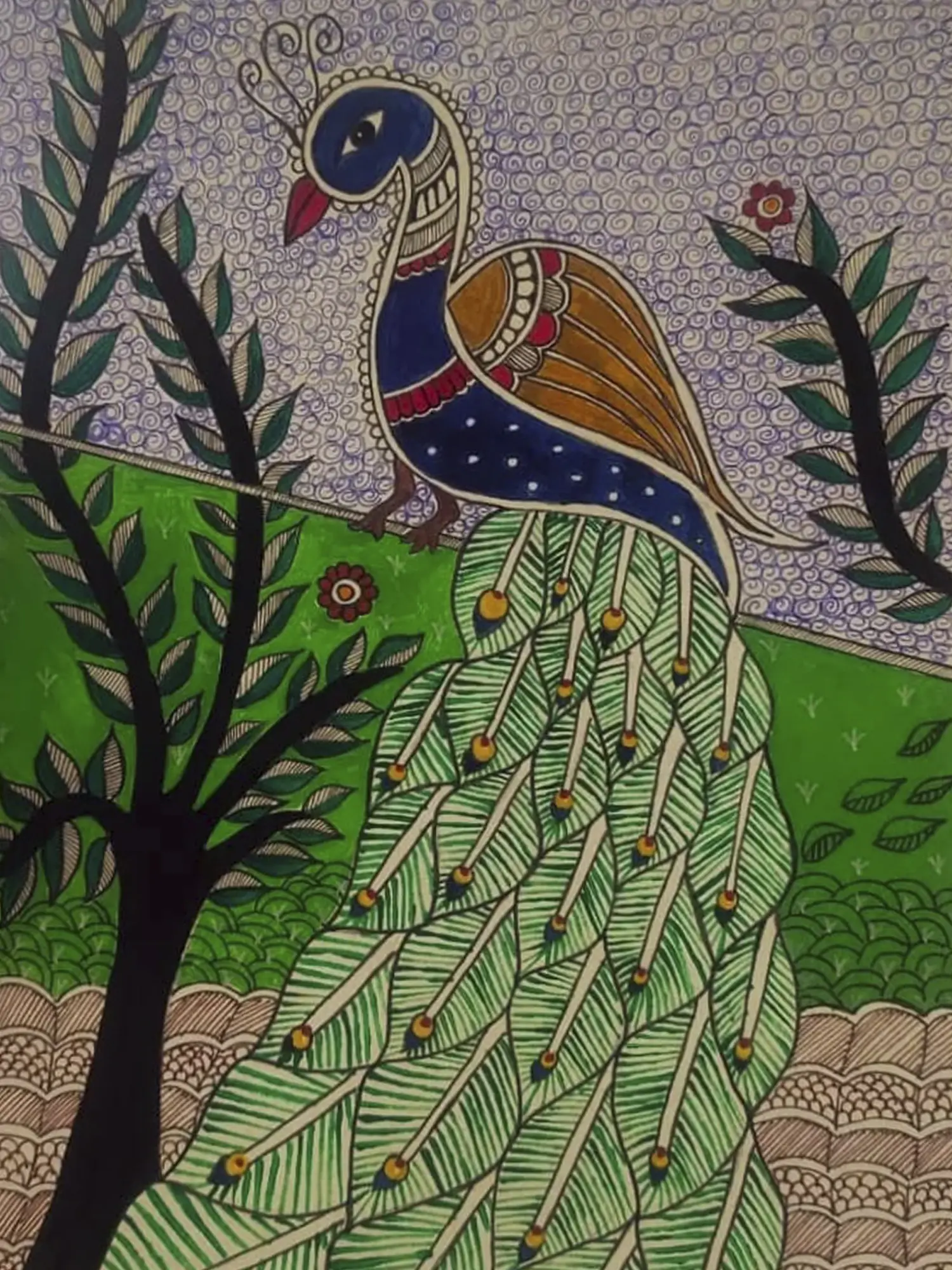 Painting of Colorful Flowers | Madhubani Art on Handmade Paper | By Ajay Kumar Jha