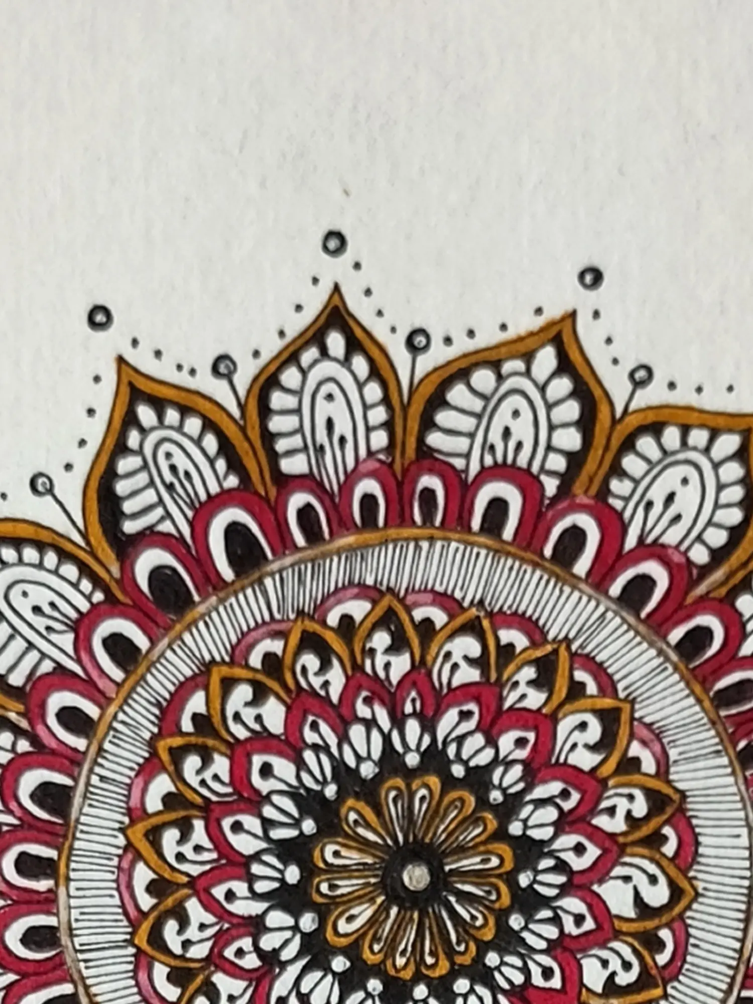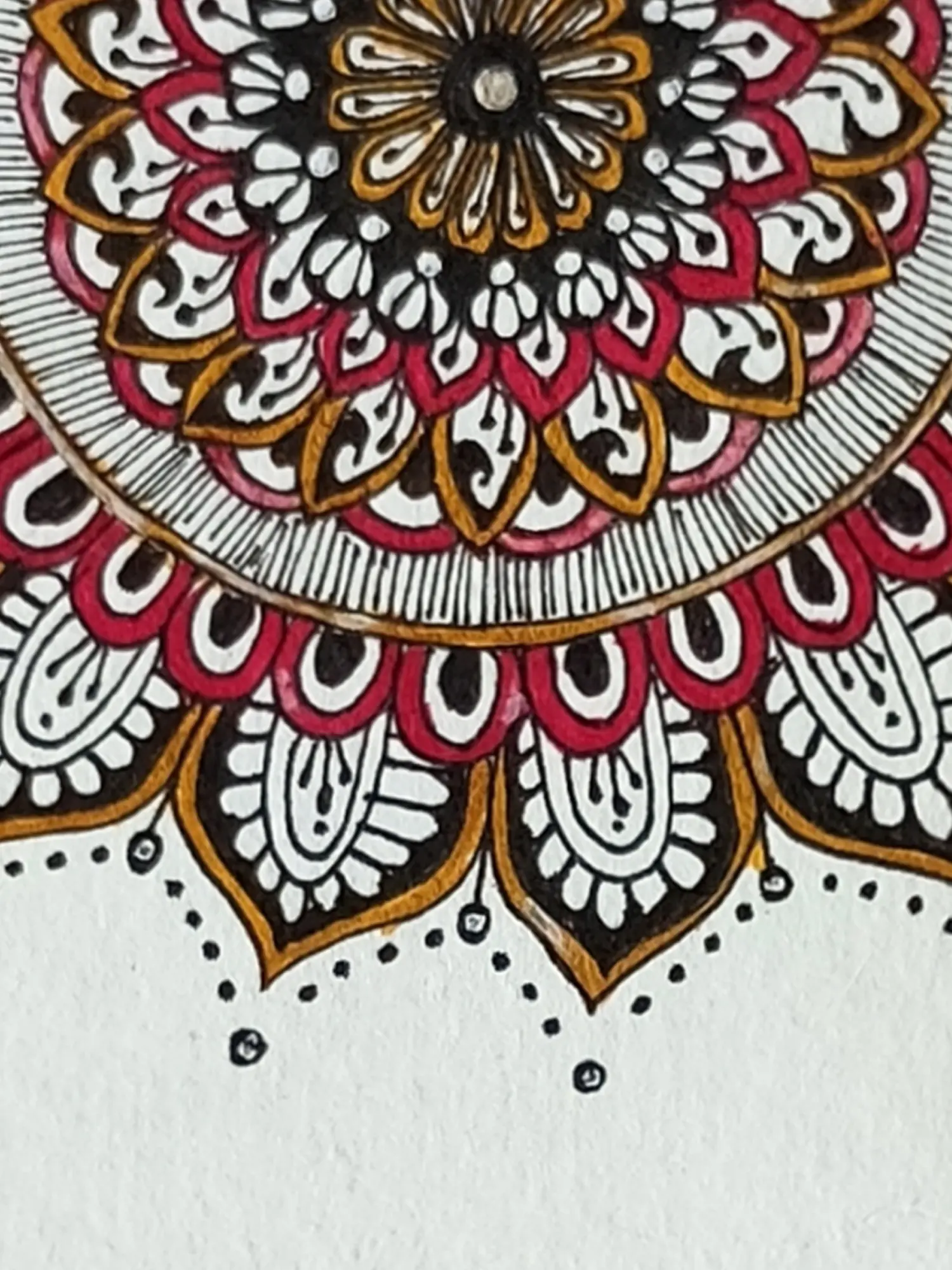 Embark on a journey inward with this captivating mandala. Created entirely with pigment ink pen, its details unfold like a blooming flower, symbolising the interconnectedness of the universe. The artist invites you to contemplate the perfect balance and rhythm within the artwork, reflecting the philosophy of wholeness and the cyclical nature of life.