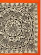In this captivating Beautiful Mandala with Various Creatures Madhubani art piece, black lines intricately etched on a white canvas weave a narrative of jubilant celebration. At its heart, majestic peacocks dance gracefully, their vibrant plumage depicted with elegant swirls and intricate patterns. Surrounding them, a circle of other creatures joins in the revelry, their forms depicted with rhythmic fluidity and dynamic energy.