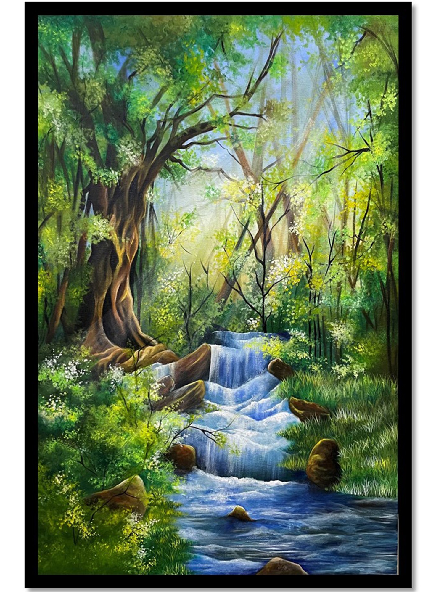 A Boy Near the Waterfall | Acrylic on Canvas | By Jyoti Rathore