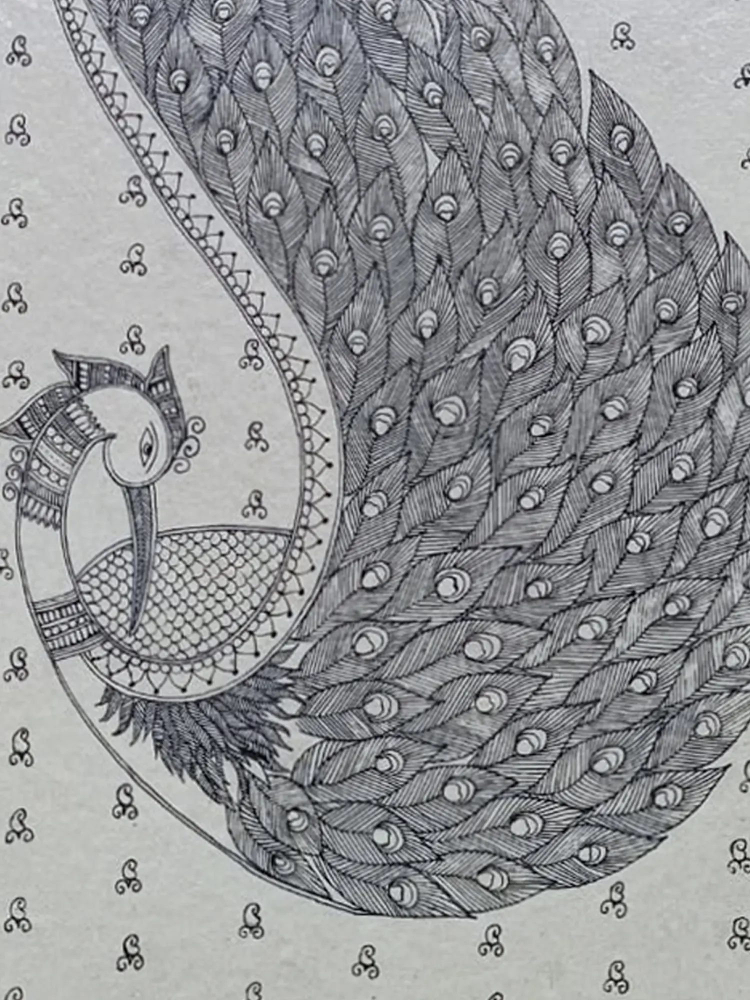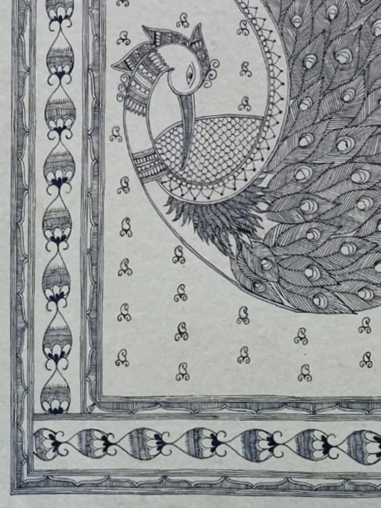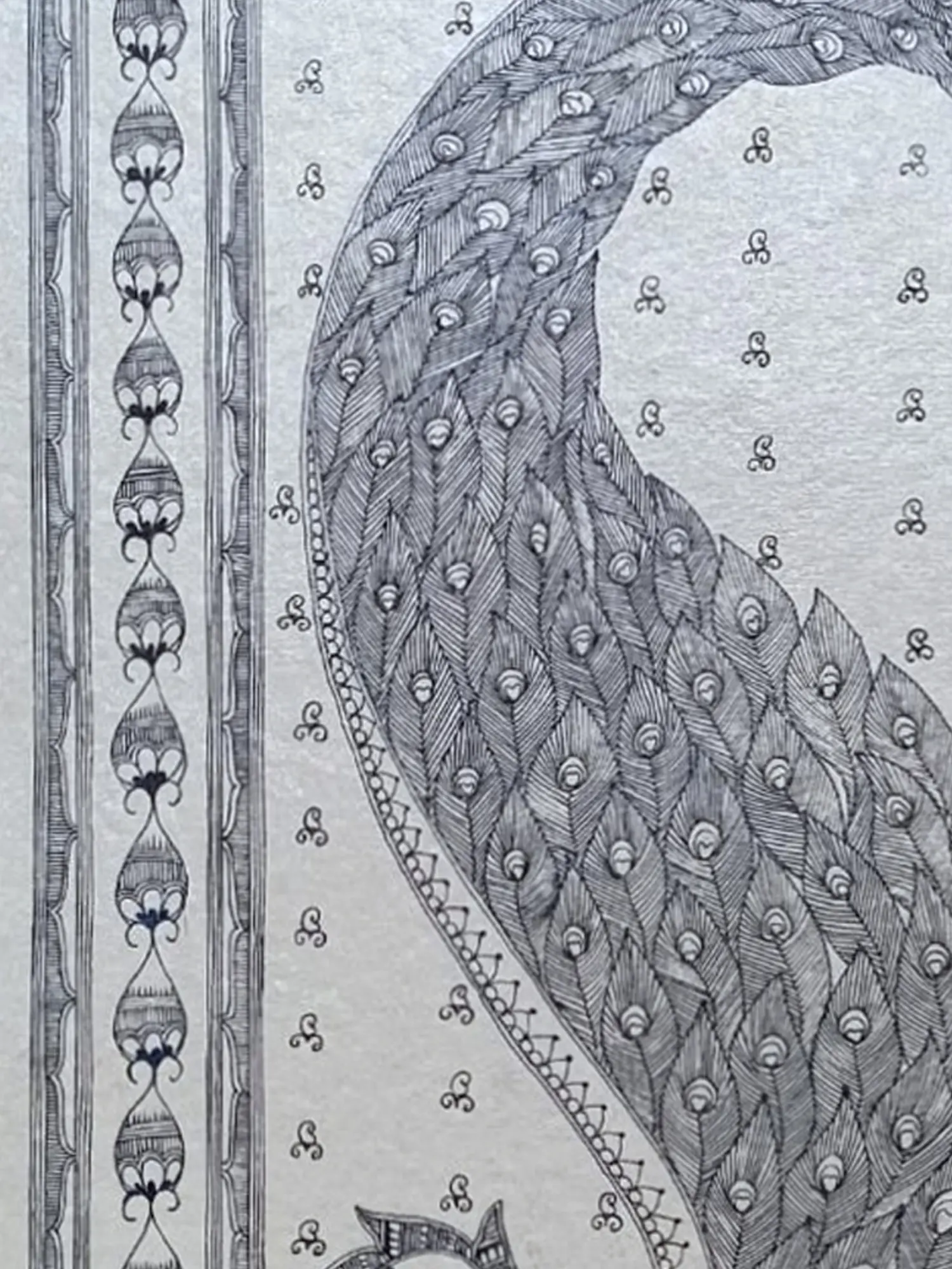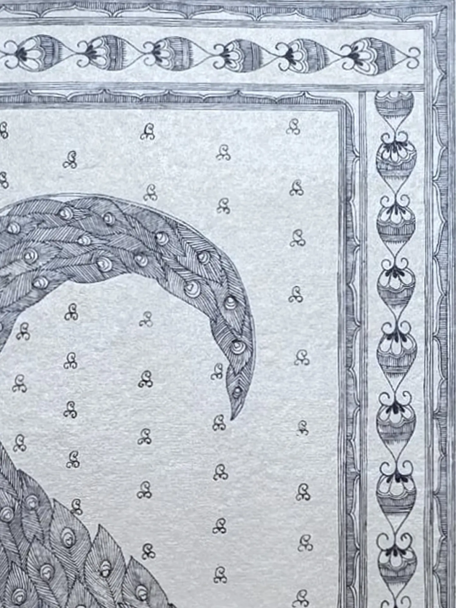 Behold the intricate beauty of this stunning peacock where meticulous detail breathes life into the majestic bird of paradise. With each line and curve, the peacock comes to life on the canvas, its iridescent plumage a testament to the artist's skill and imagination. Against a backdrop of pristine paper, the vibrant colors of the peacock leap off the page, capturing the eye and stirring the soul. As you admire the pen art piece.