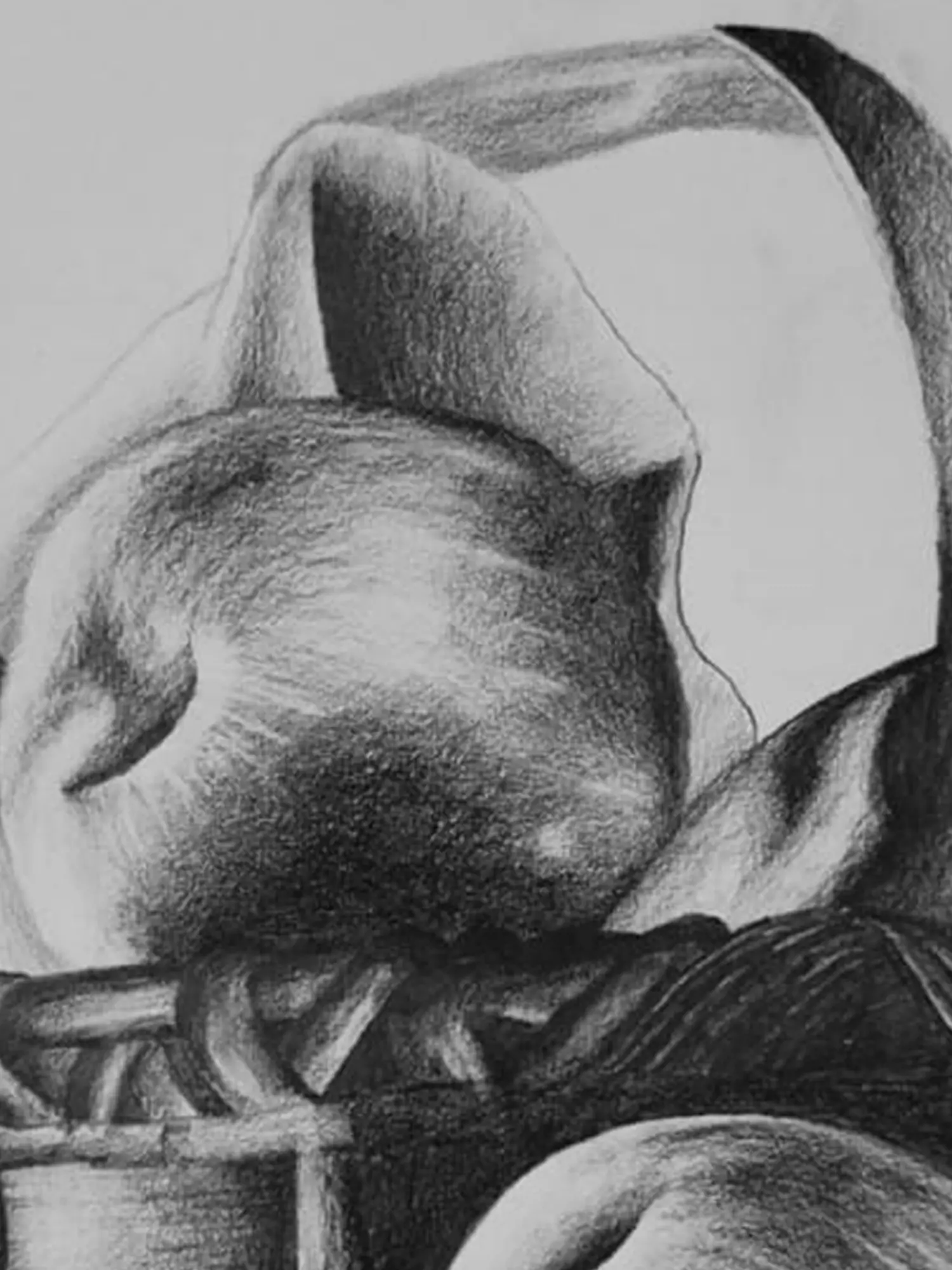 This artwork, rendered with graphite on paper, measures 23.4 inches in height and 16.5 inches in width. The size makes it suitable for a variety of spaces, from a cozy study to a living room gallery wall. Graphite, as a medium, is revered for its versatility, allowing artists to achieve a wide range of tonal values and textures. The piece can become a focal point that provides a moment of reflection. The monochrome aesthetic makes it adaptable to various interior design styles.