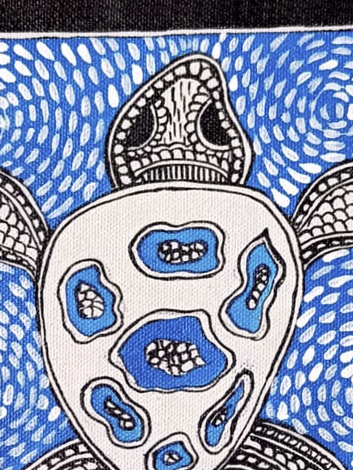 The painting carries the traditional Madhubani motifs and displays the tortoise of Kurma as the central character. The water is displayed in a gorgeous blue color with small dots of white symbolizing water ripples. The tortoise floats on the water and creates a symphony of natural beauty that hypnotizes the beholder.