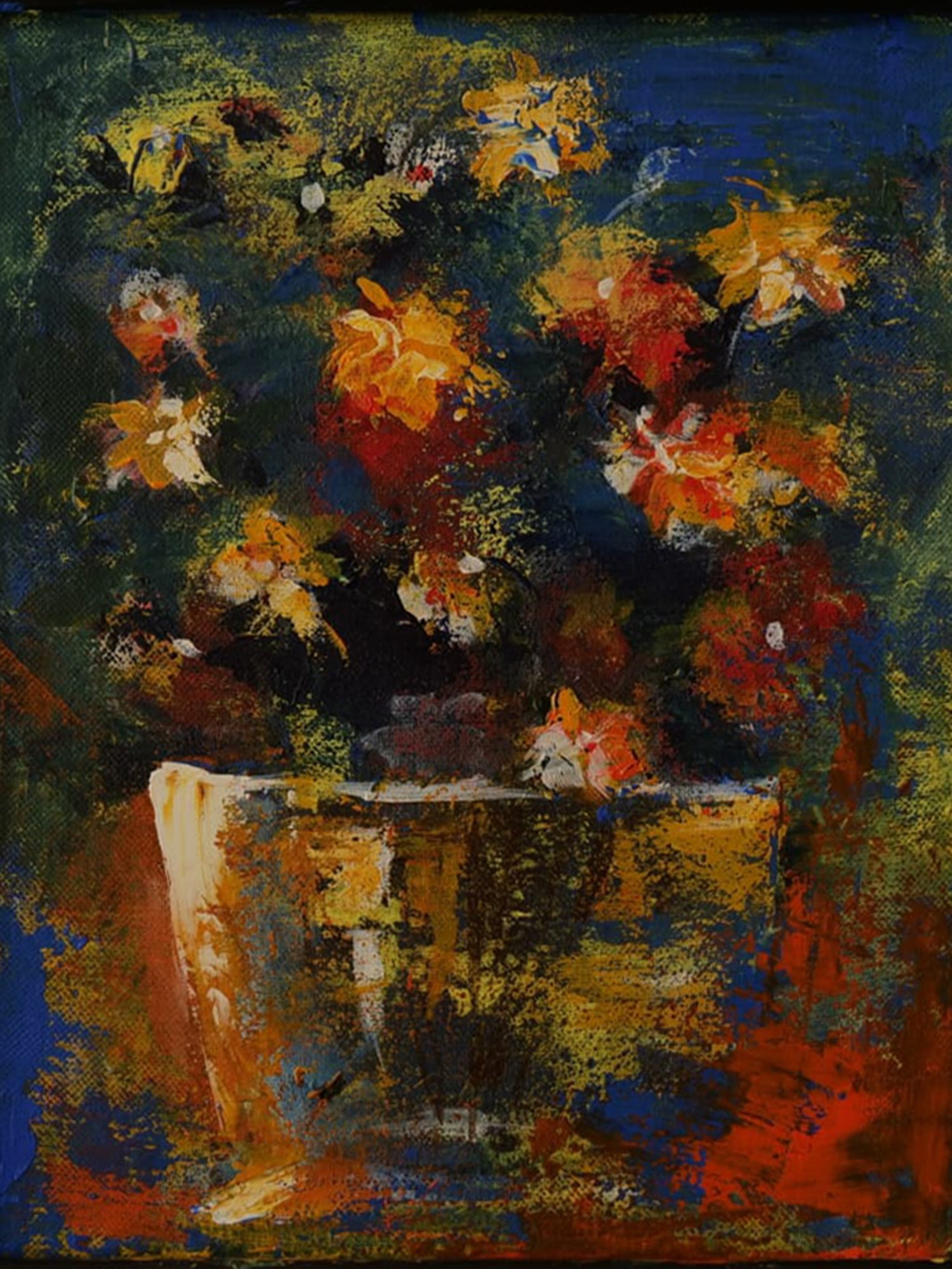While modern in its execution, the subject matter of flowers in a vase often draws inspiration from centuries of still-life painting, a genre that has celebrated the ephemeral beauty of nature. This piece can be seen as a contemporary echo of those artistic traditions, bringing a familiar yet fresh perspective to a beloved theme. It represents the enduring appeal of capturing transient moments of beauty.