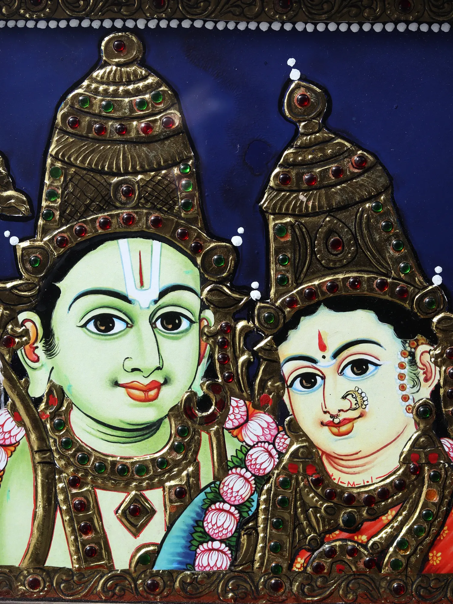 this lovely Tanjore mural - Both Rama and Sita make their eyes meet with the