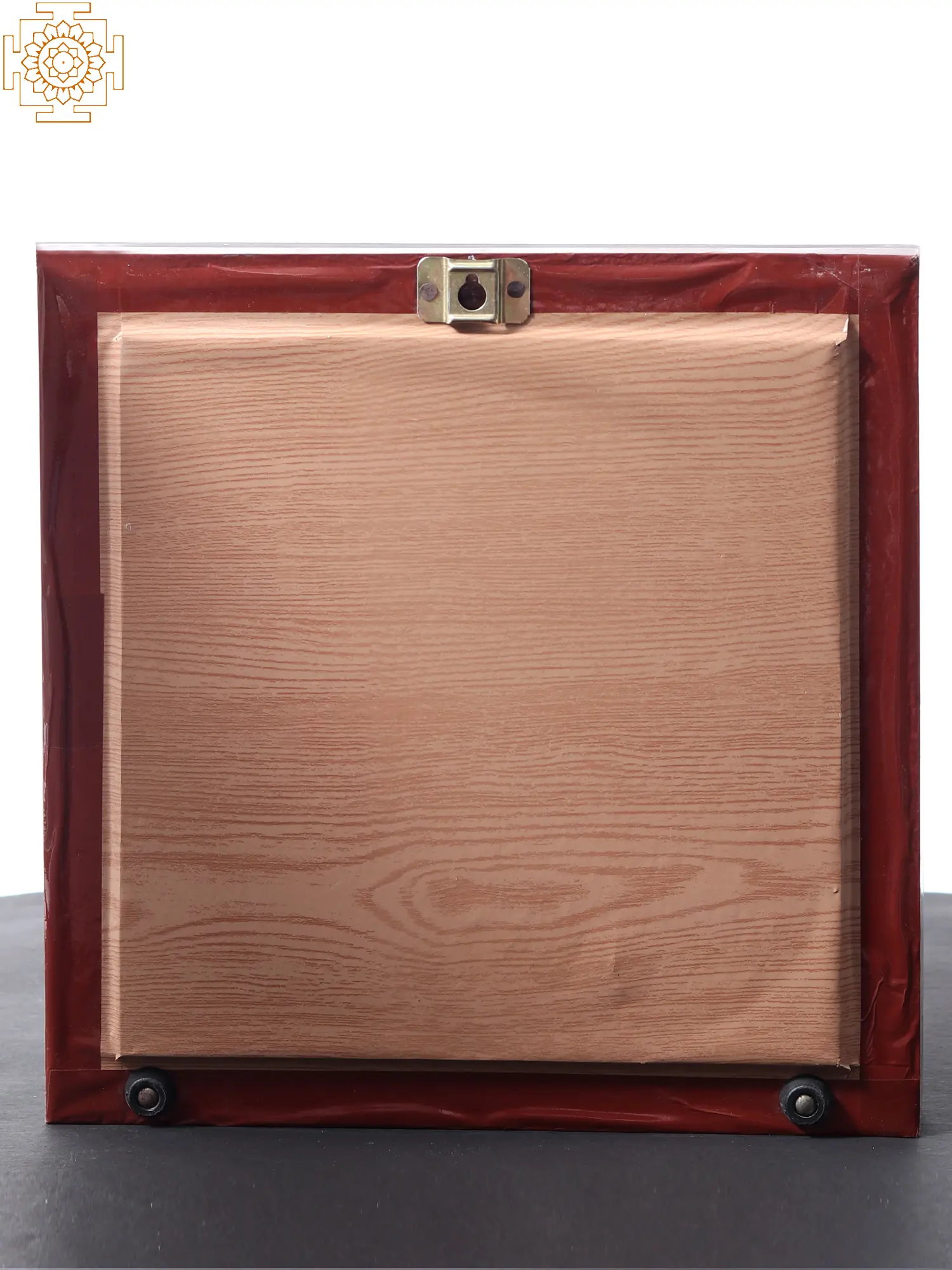 You’ll be captivated by the richness of the colors and the meticulous detailing that defines this artwork. The serene expressions of the divine figures are rendered with delicate brushstrokes, conveying a sense of tranquil wisdom. Gilded embellishments, including vibrant gemstones and intricate patterns, surround and adorn the figures, enhancing their regal presence. Encased within a robust teakwood frame, the entire composition measures approximately 11 inches in height and width, with a depth of 1.40 inches, creating a substantial and impactful presence.