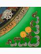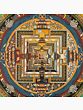 This Thangka has transformed the diagram of Kalachakra traditionally done on the ground into a meticulously delineated, stimulating meditation device. The circle is symbolic of the eternal movement of Kala or time, within which the different levels of the Universe are encased, the freedom from which is at the heart of the Kalachakra- realizing one’s inner wisdom.