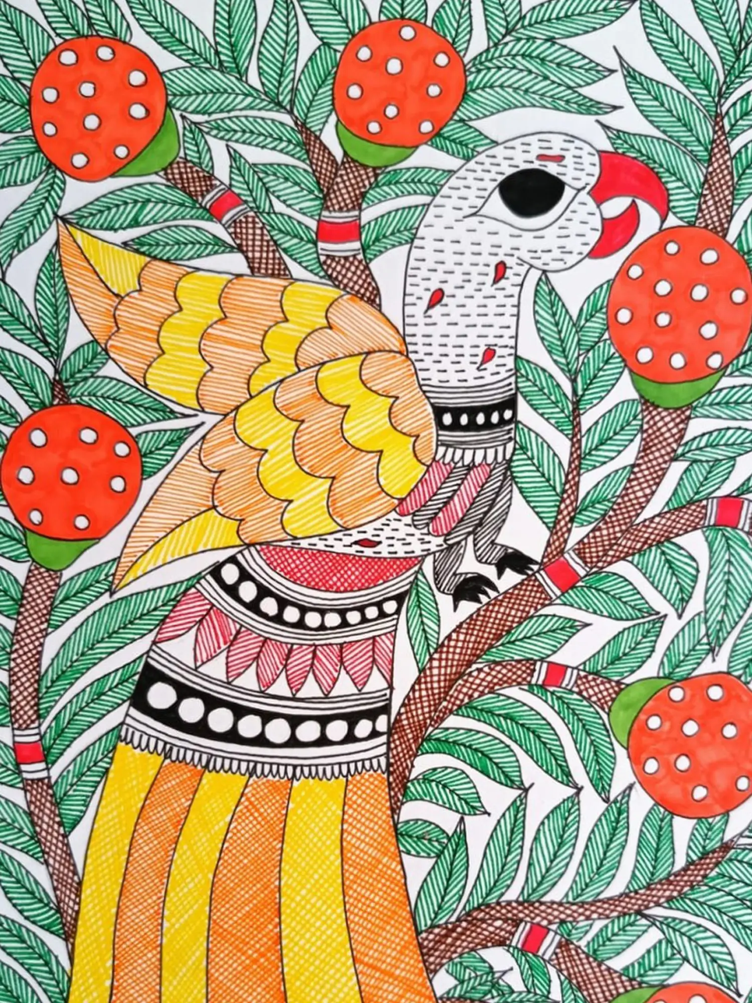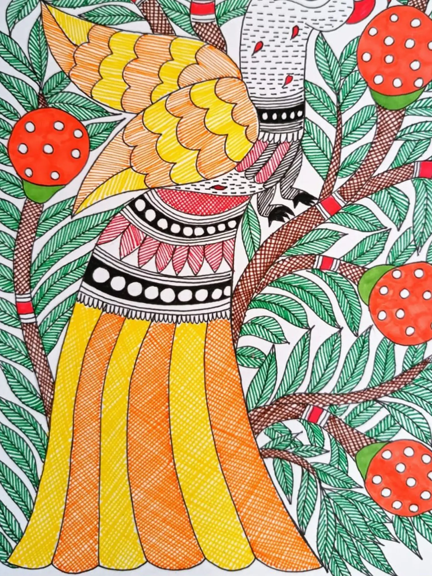 Pattern of Birds and Fishes | Handmade Paper | By Ajay Kumar Jha