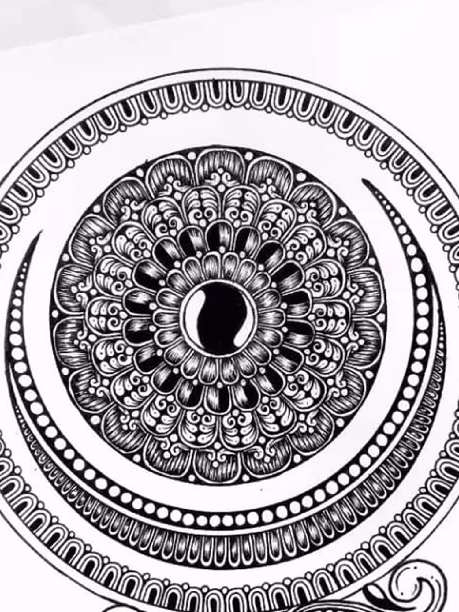 In this rendition, the artistic mastery of Shivani Patra will take you to a gorgeous realm of Mandala Art. Each stroke is crafted with care and love, evoking harmony and balance and encouraging you to embark on a peaceful journey. Mandalas, based on ancient spiritual traditions, represent oneness, completeness, and cosmic order. They are effective meditation techniques that lead to inner serenity and self-discovery. Shivani Patra’s delicate ink work adds depth to this traditional art style, making it an excellent statement piece for any space.