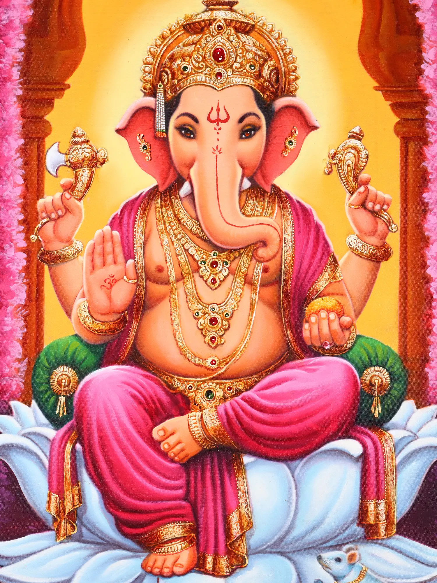 Lord Ganesha, the beloved elephant-headed deity, is revered as the remover of obstacles and the patron of arts and sciences. His presence in art has transcended centuries and cultures, embodying auspiciousness and the beginning of all ventures. This rendition thoughtfully captures the essence of his divine persona, offering a connection to ancient traditions and spiritual significance.