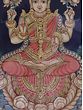 Here, Bhagyavati Lakshmi, the bestower of fortune and grace, stands resplendent, her presence an embodiment of serenity and abundance. She sits as Chaturbhujadharini on a pink lotus in Padmasana as she holds two lotuses and extends her hands in the Abhaya and Varada Mudra. The gorgeous gold employed in this piece captures the very spirit of Tanjore art, conveying spirituality with an intensity that transcends your sense of limited fortune.