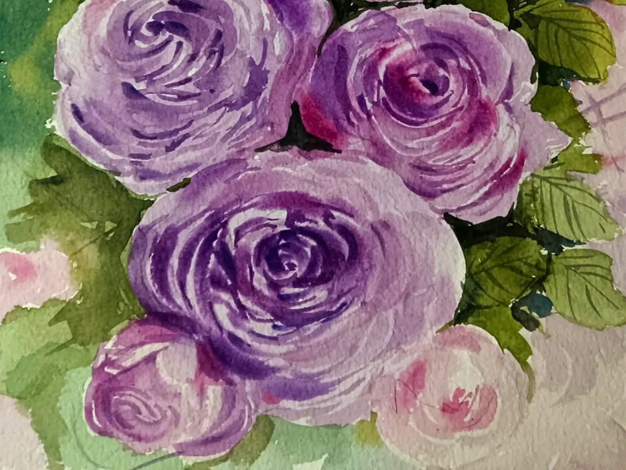 Blooming Purple Roses | Watercolor On Paper | By Jaydip