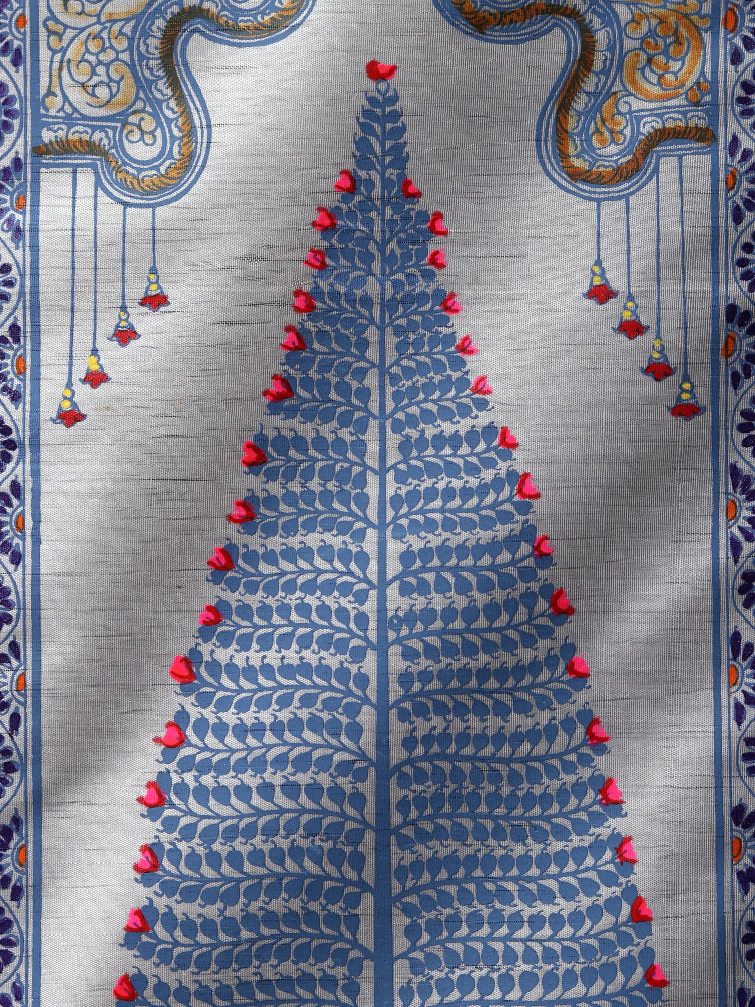 Blue Color Tree of Life | Watercolor on Silk | Pattachitra Painting