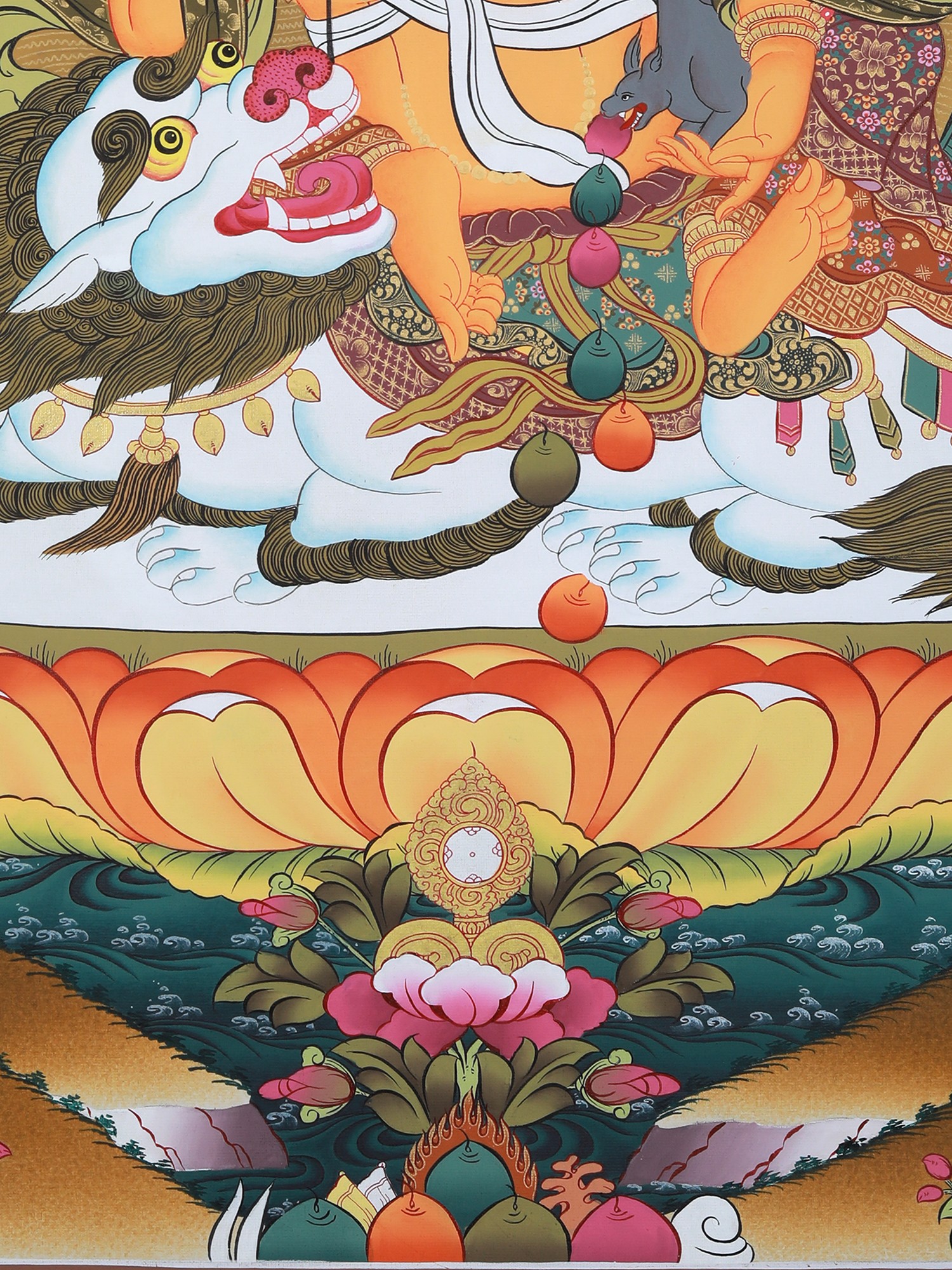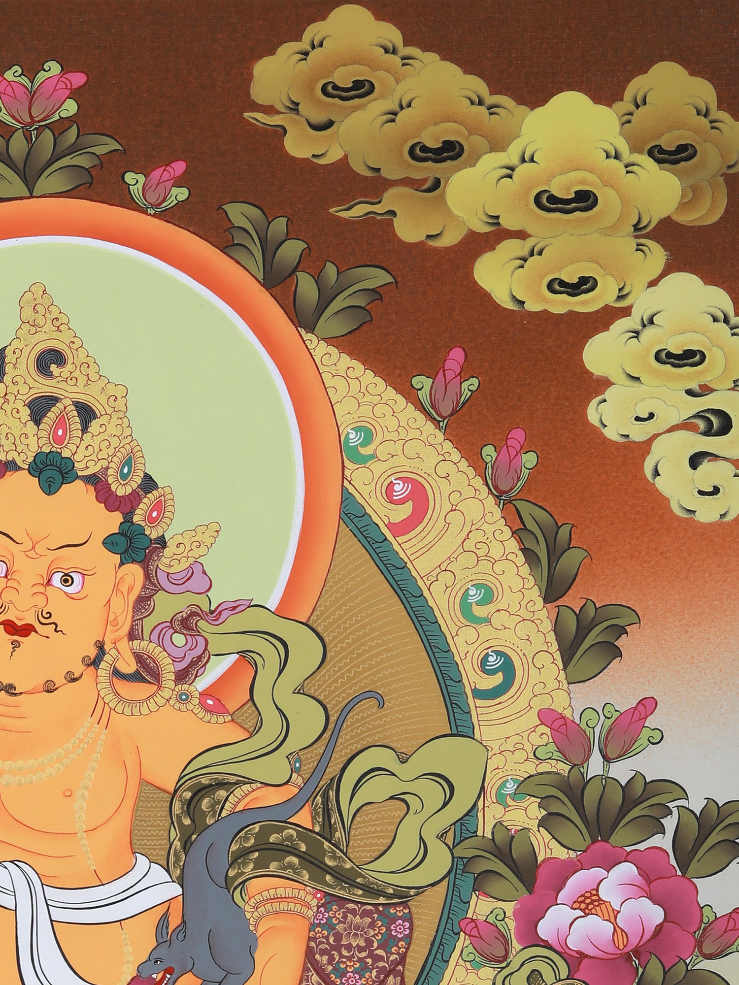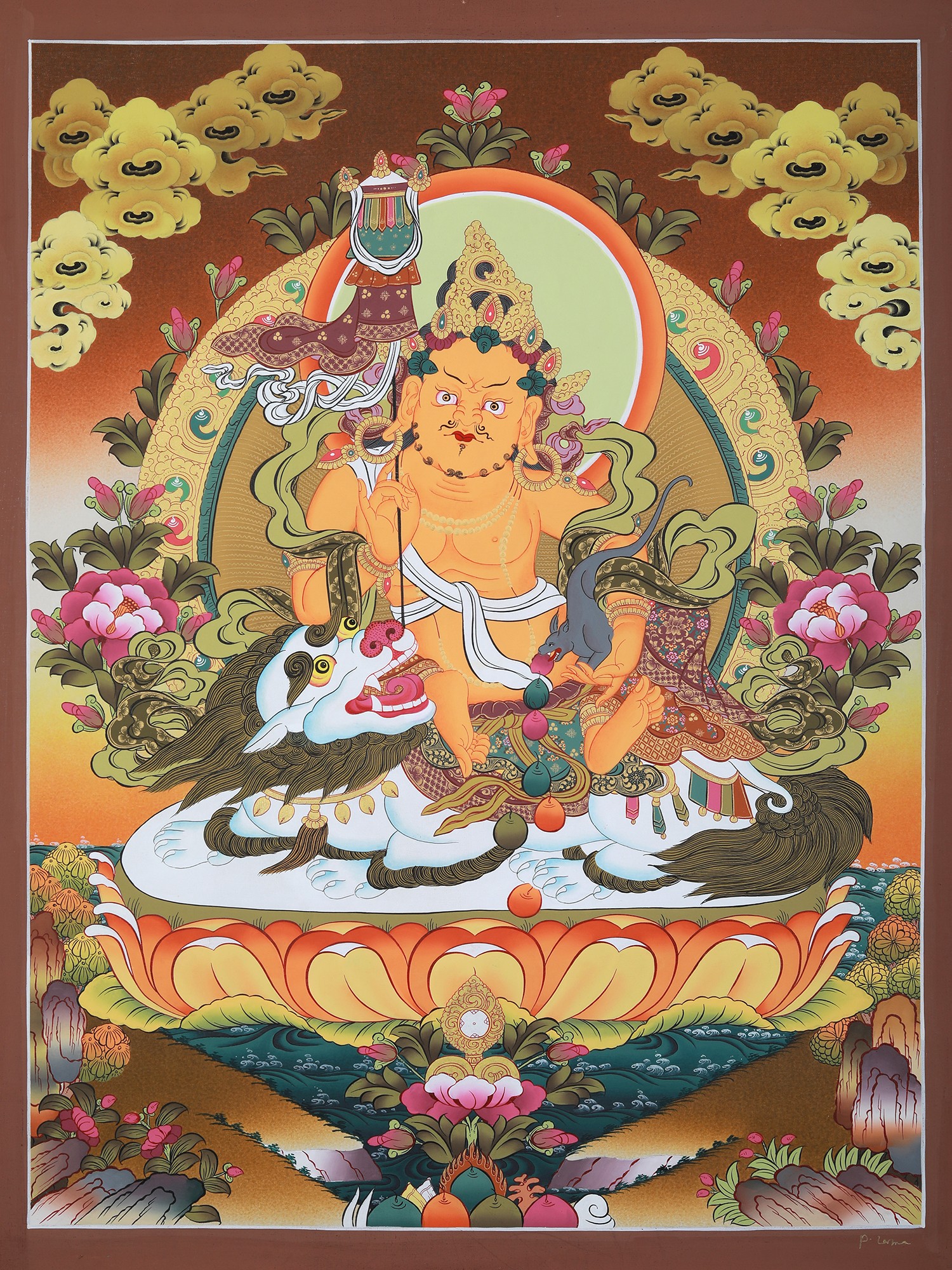 Tibetan Kubera Seated On Lotus Throne | Brocadeless Thangka Painting
