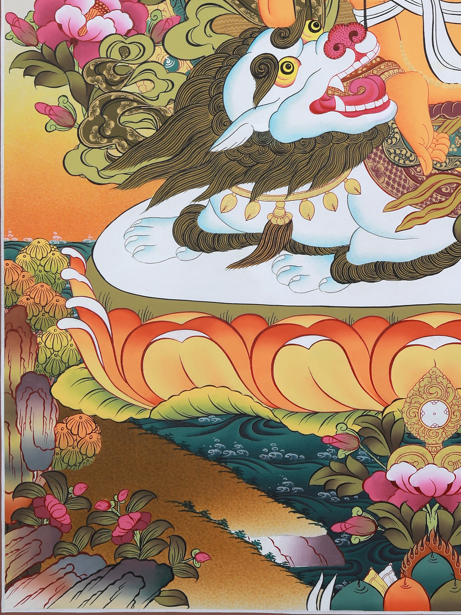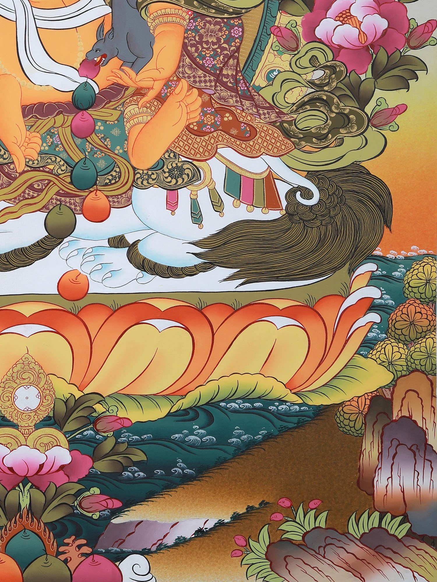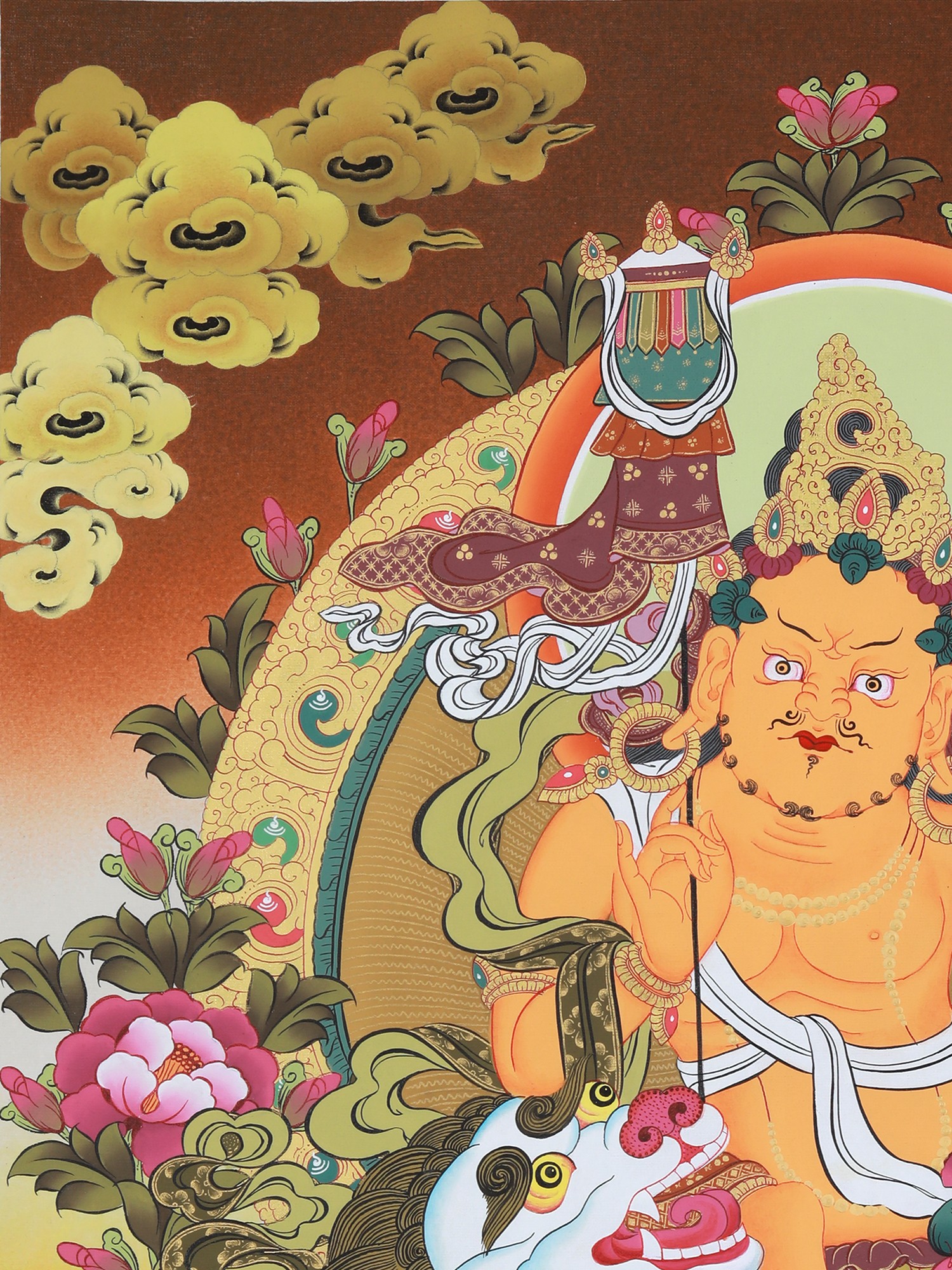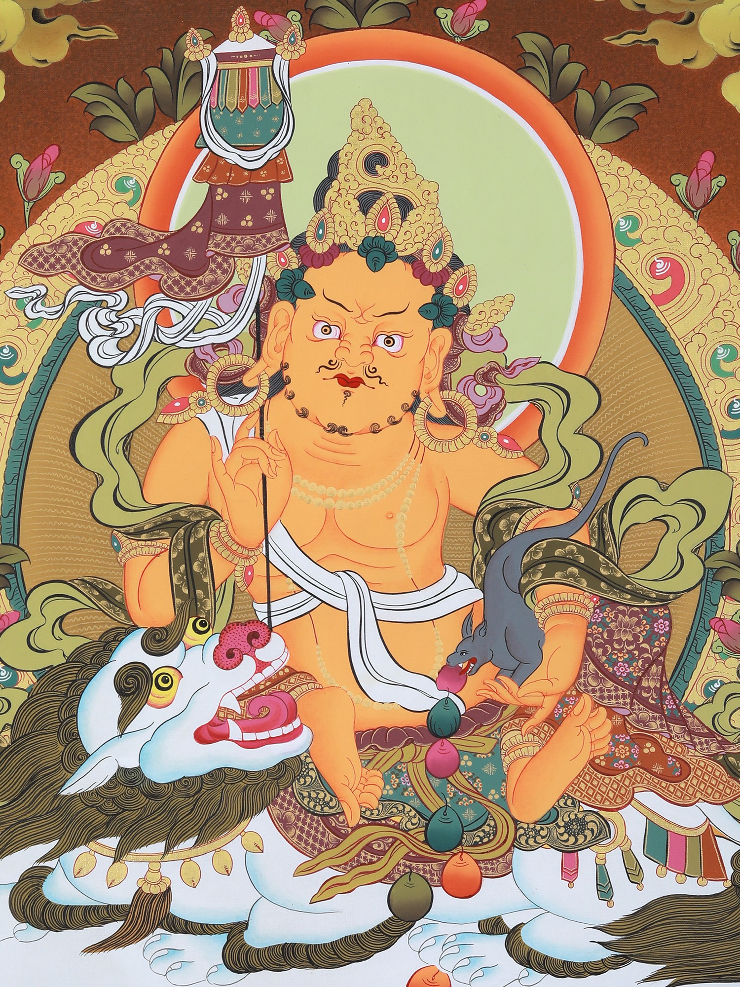 Kubera - The Buddhist Deity Of Wealth | Tibetan Brocadeless Thangka Painting