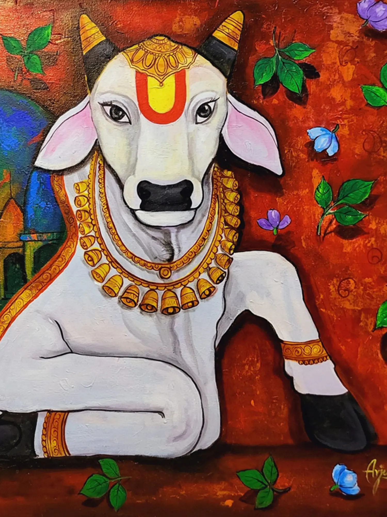 Nandi Cow (Hinduism) | Acrylic And Mixed Medium | By Niva