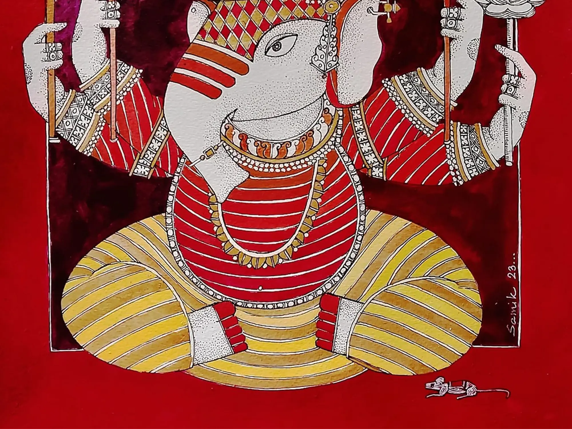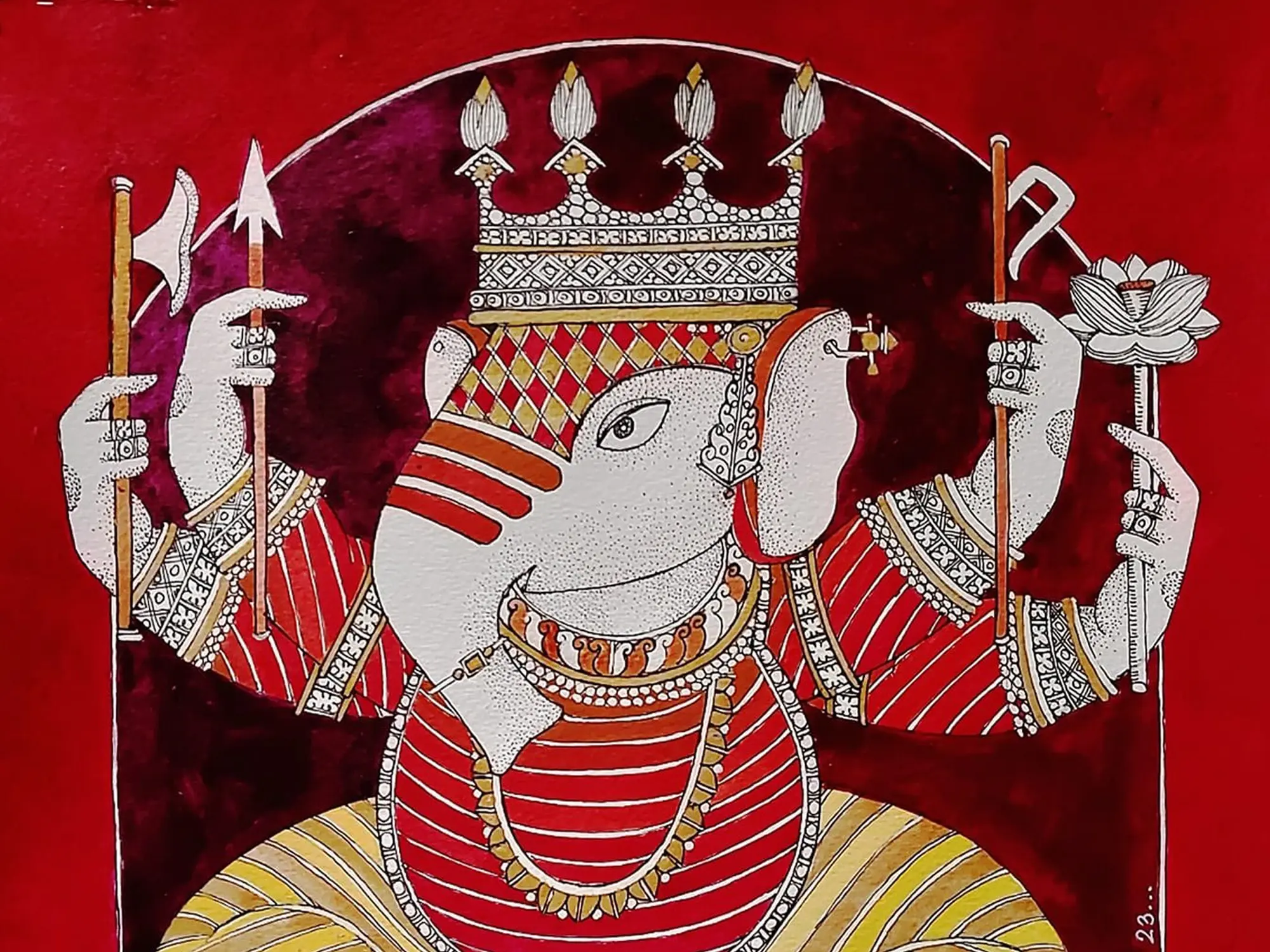 Chaturbhuja Lord Ganesha | Painting By Bhuban Mohanty