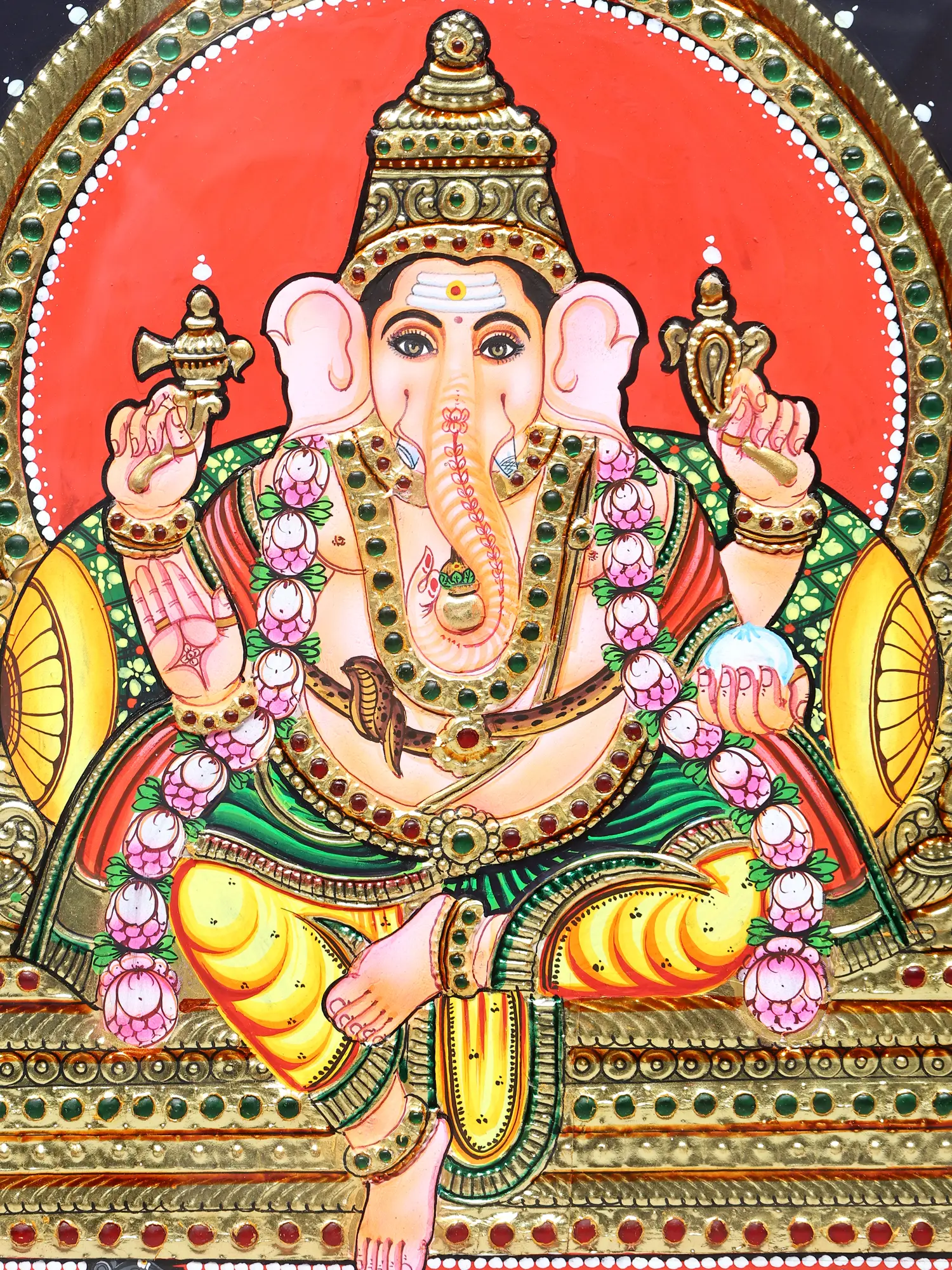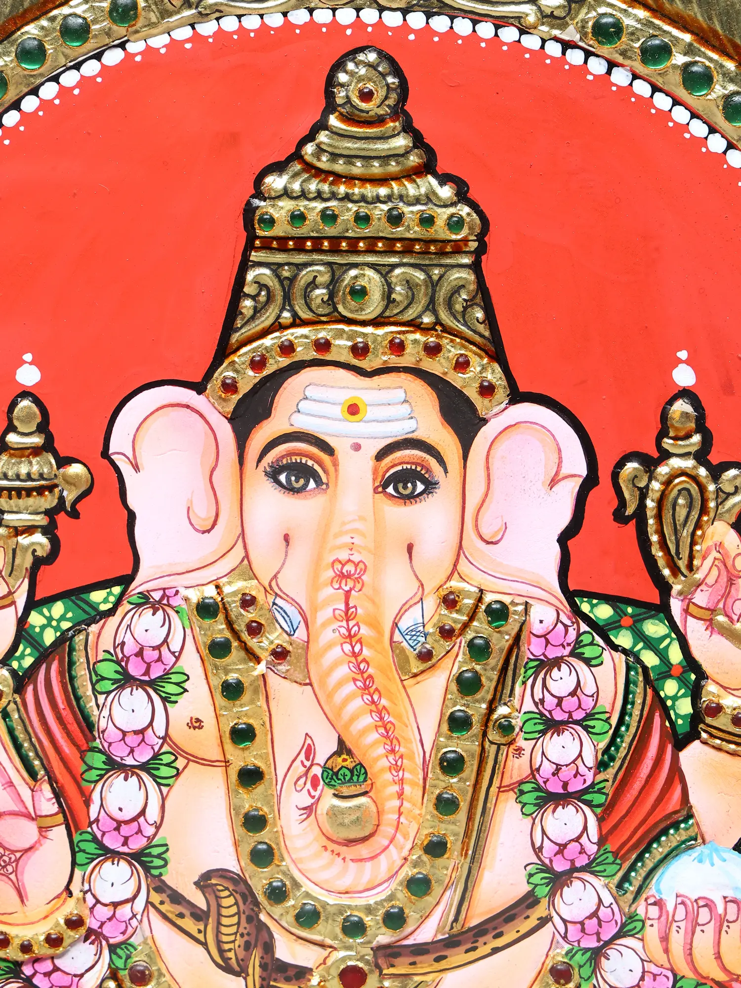 Dancing Lord Ganesha Tanjore Painting | Traditional Colors with 24K Gold