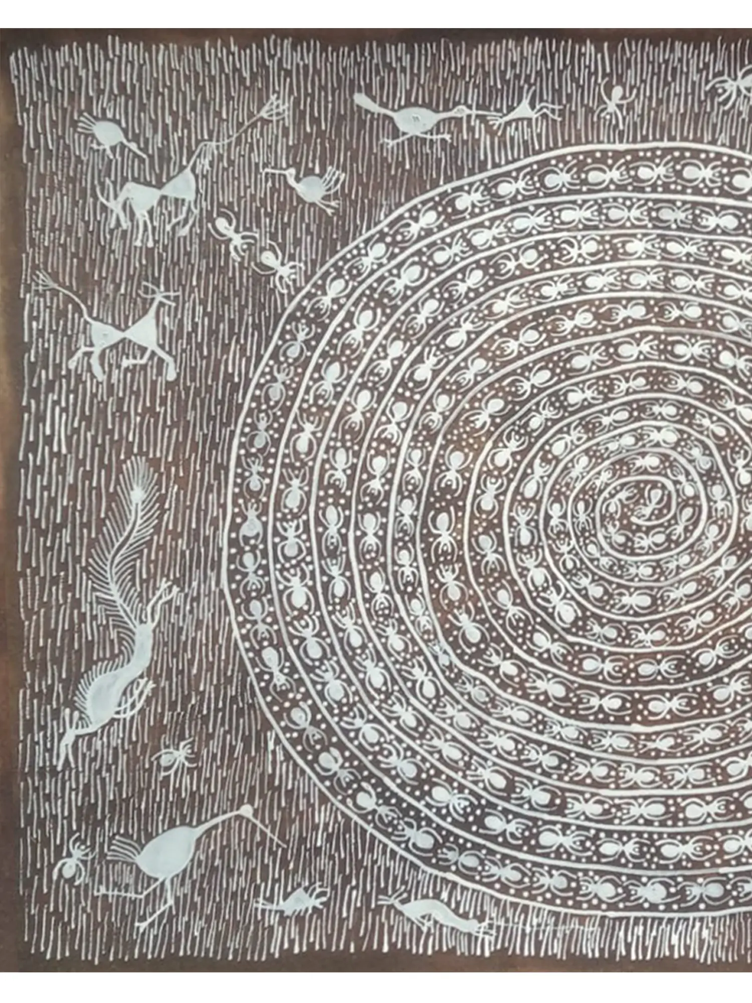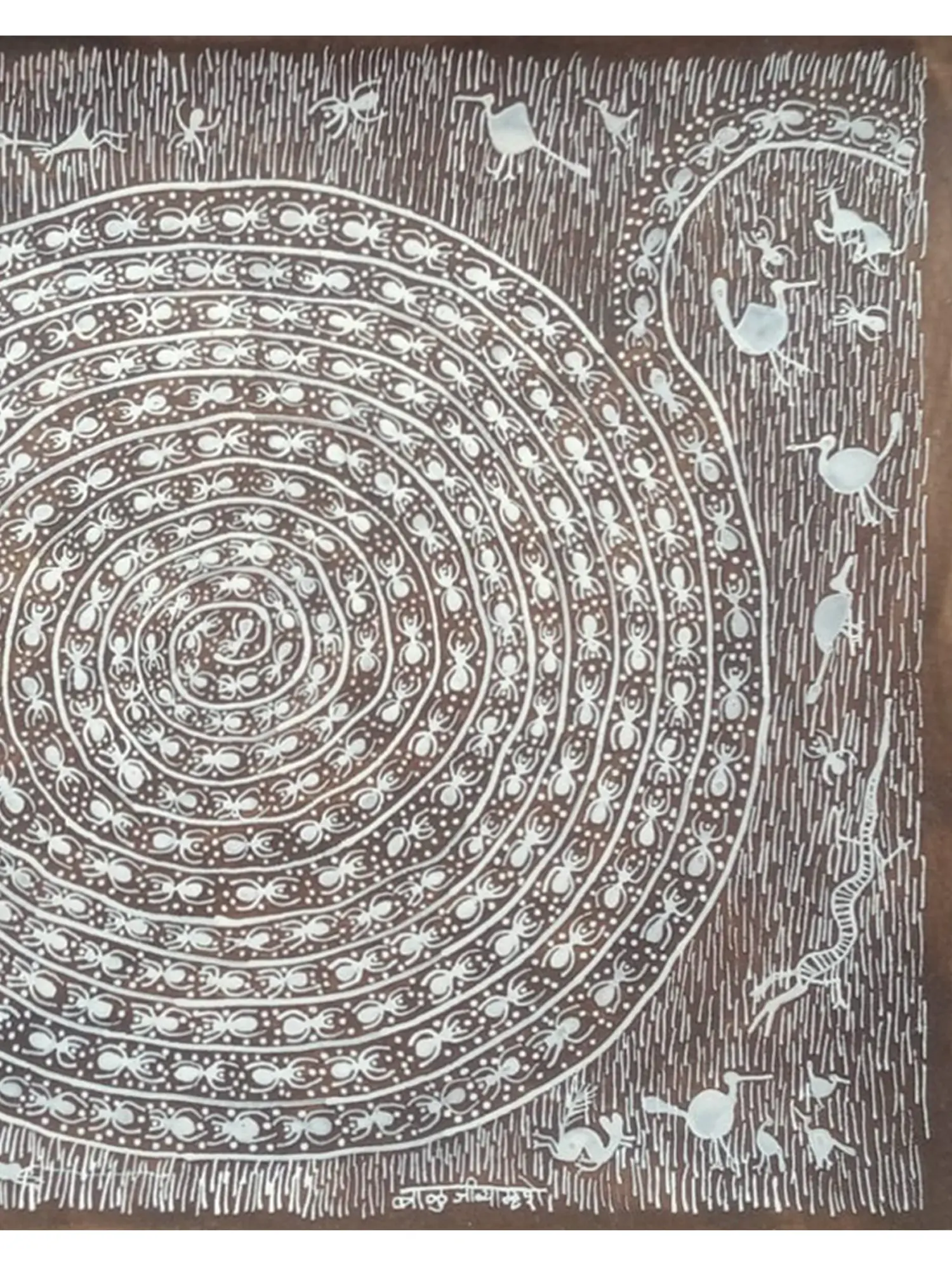 Nature’s Life - Warli Art by Pravin Mhase | Cow Dung and Acrylic on Manjarpat Cloth