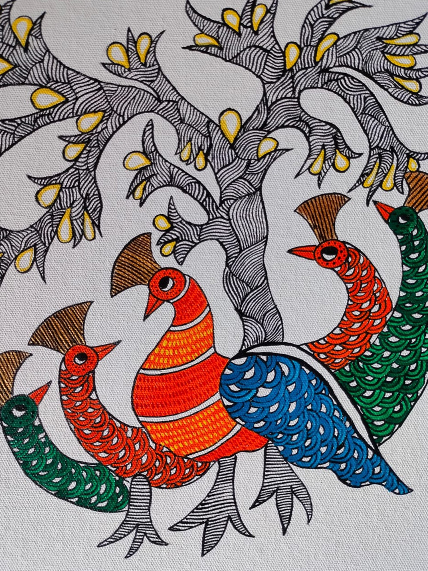 Pair Of Peacock With Tree | Natural Mineral Color On Cloth | By Rizwan Khatri