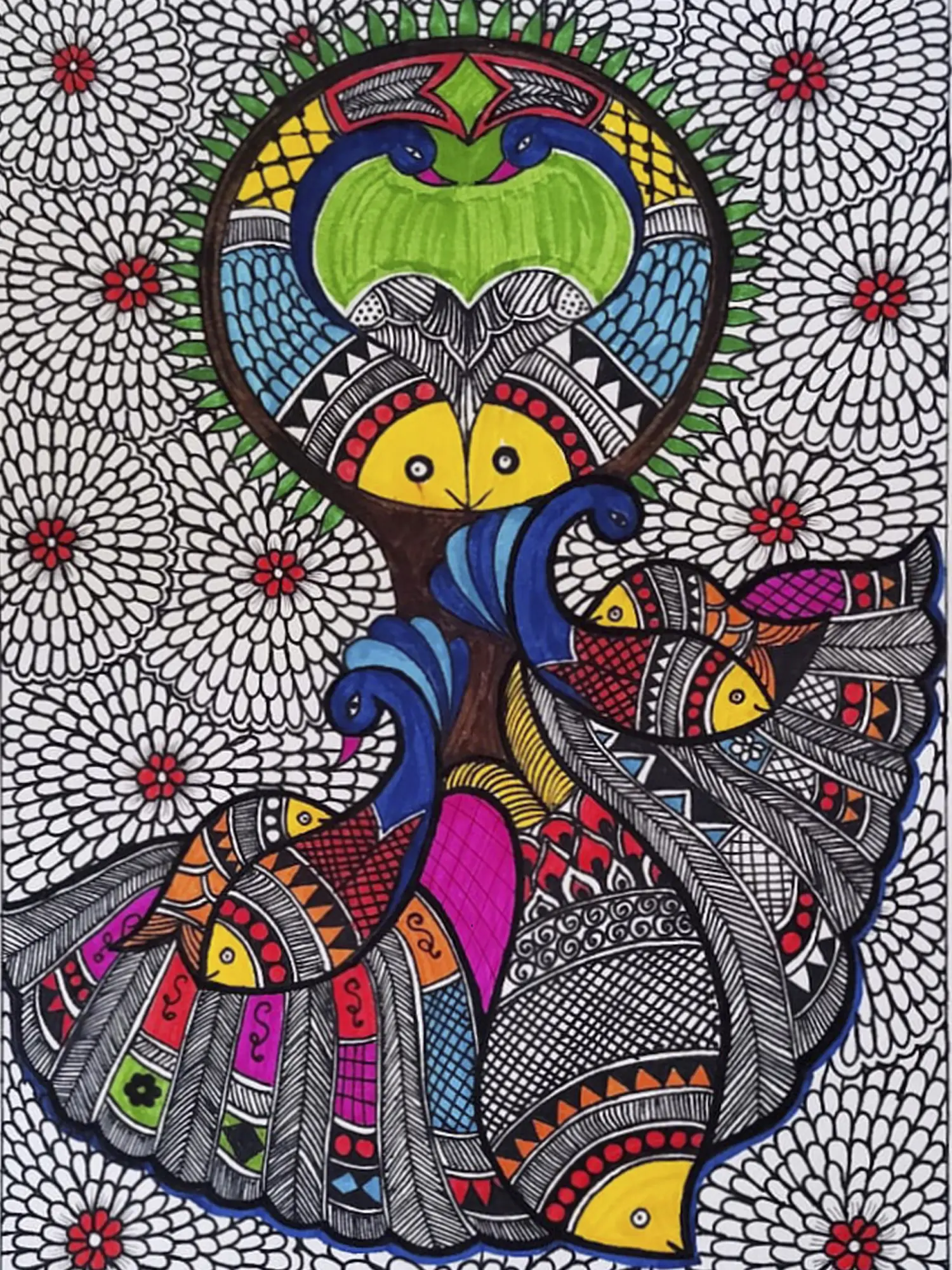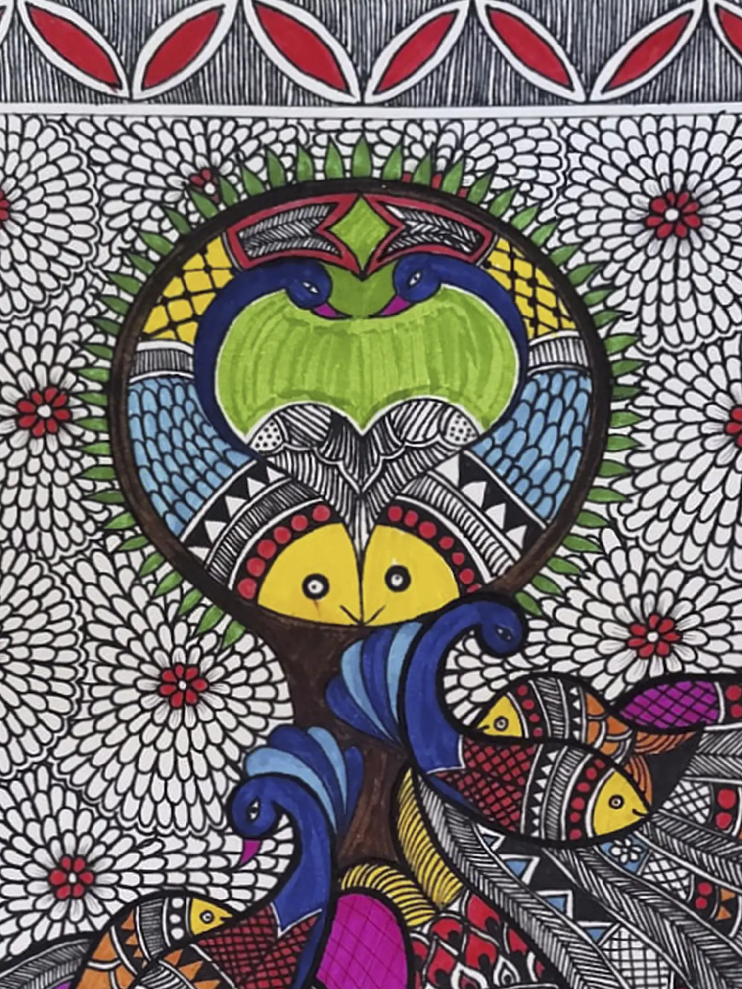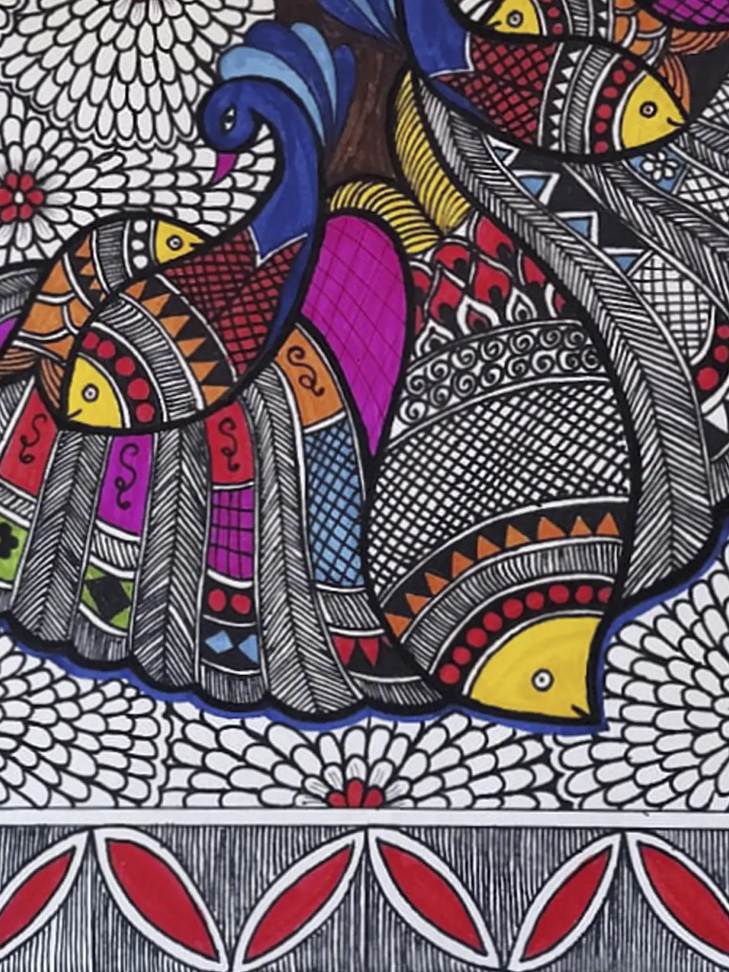 Dive into the enchanting realm of nature's marvels with our Combination of Nature painting. A delicate fusion of fish and peacock motifs, rendered in watercolour, evokes a sense of harmony and interconnectedness. Each stroke celebrates the diversity of life, symbolising grace, and vitality. The vibrant hues breathe life into the canvas, offering a glimpse into the intricacies of the natural world. Let this artwork adorn your space and awaken your appreciation for the wonders of creation.