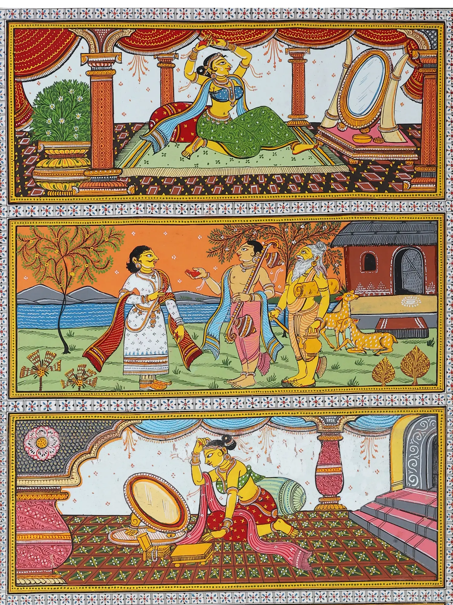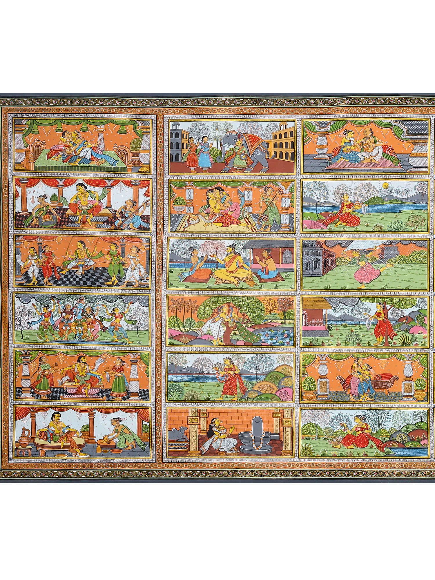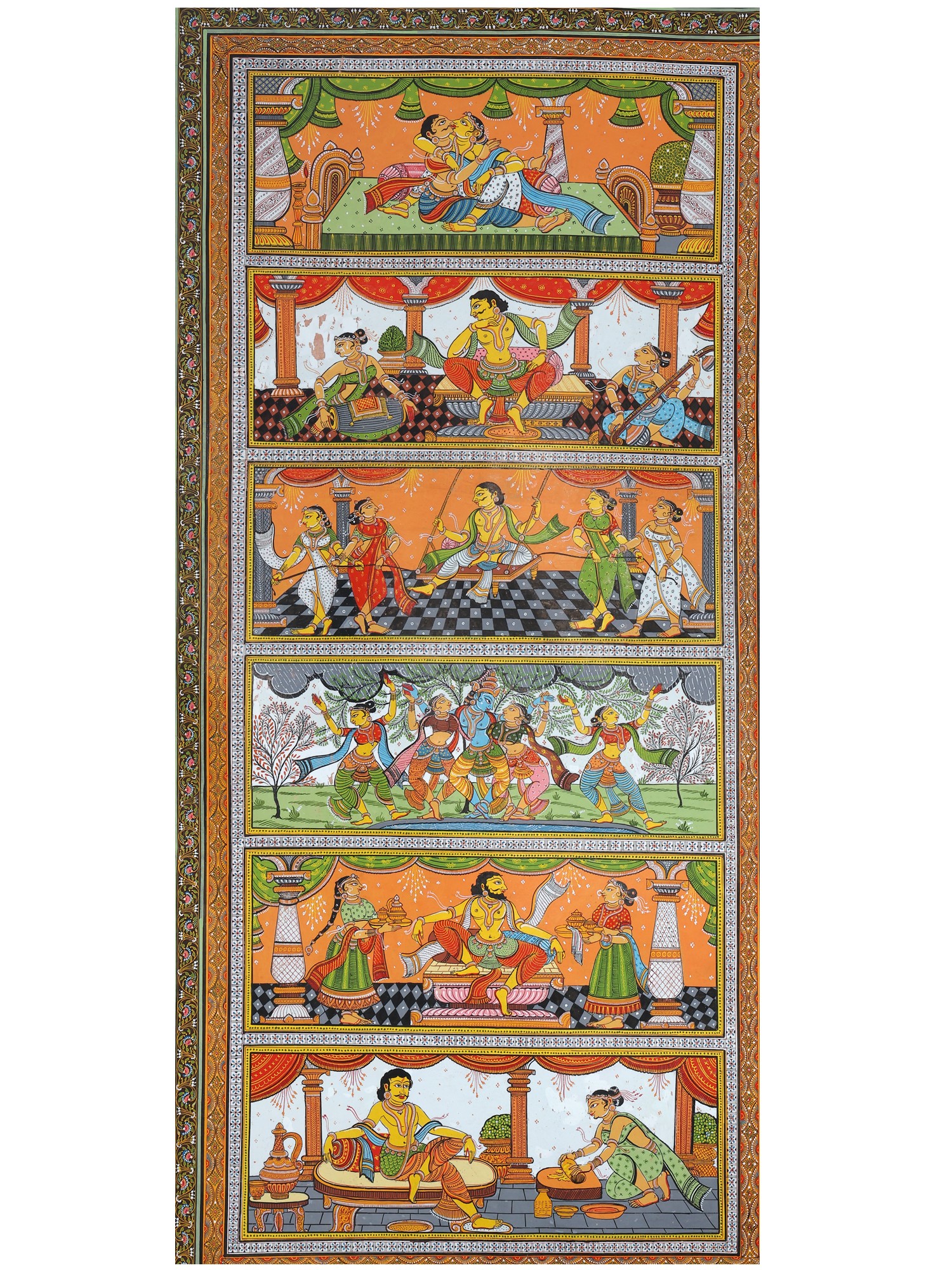 Shri Rama Darbar with Episodes of Ramayana | Superfine Pattachitra Painting from Odisha